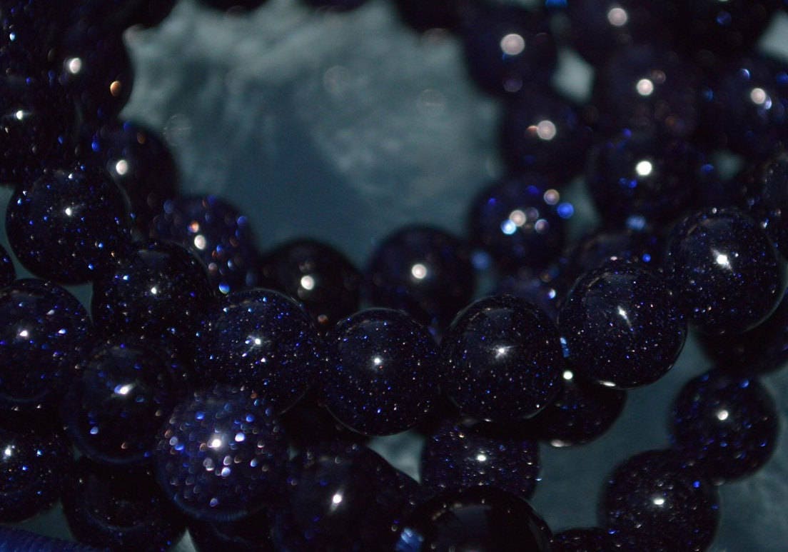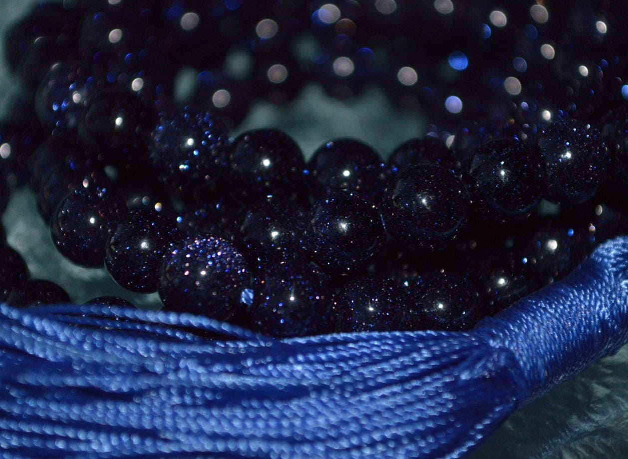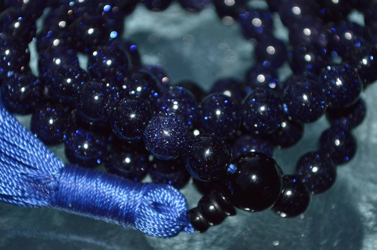 10mm Blue Goldstone Mala Beads Necklace | Throat Chakra | TARA Collection