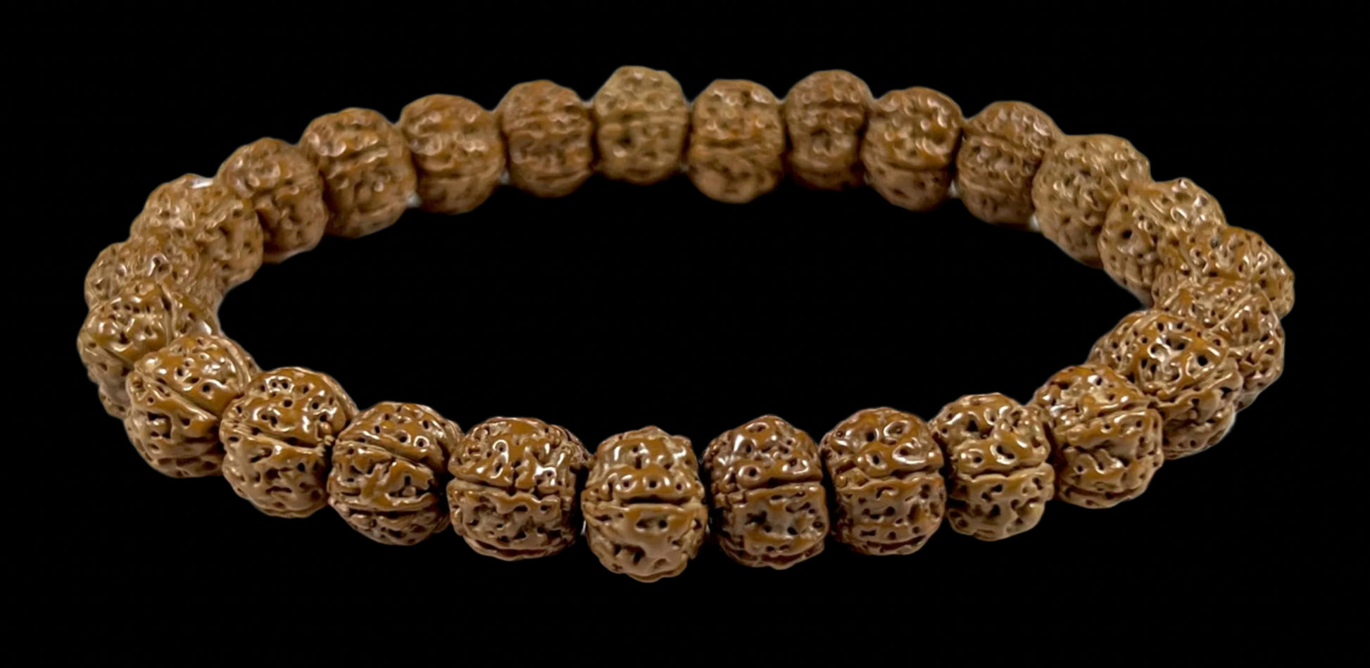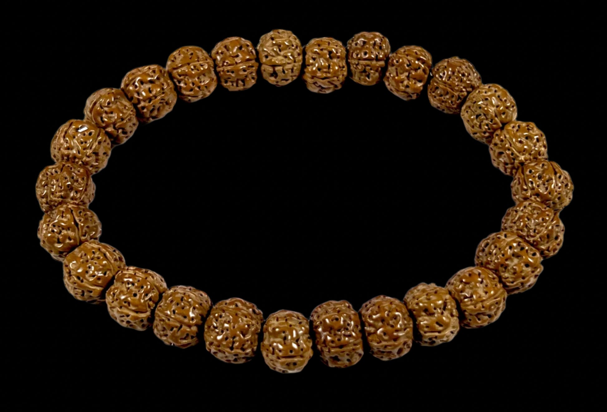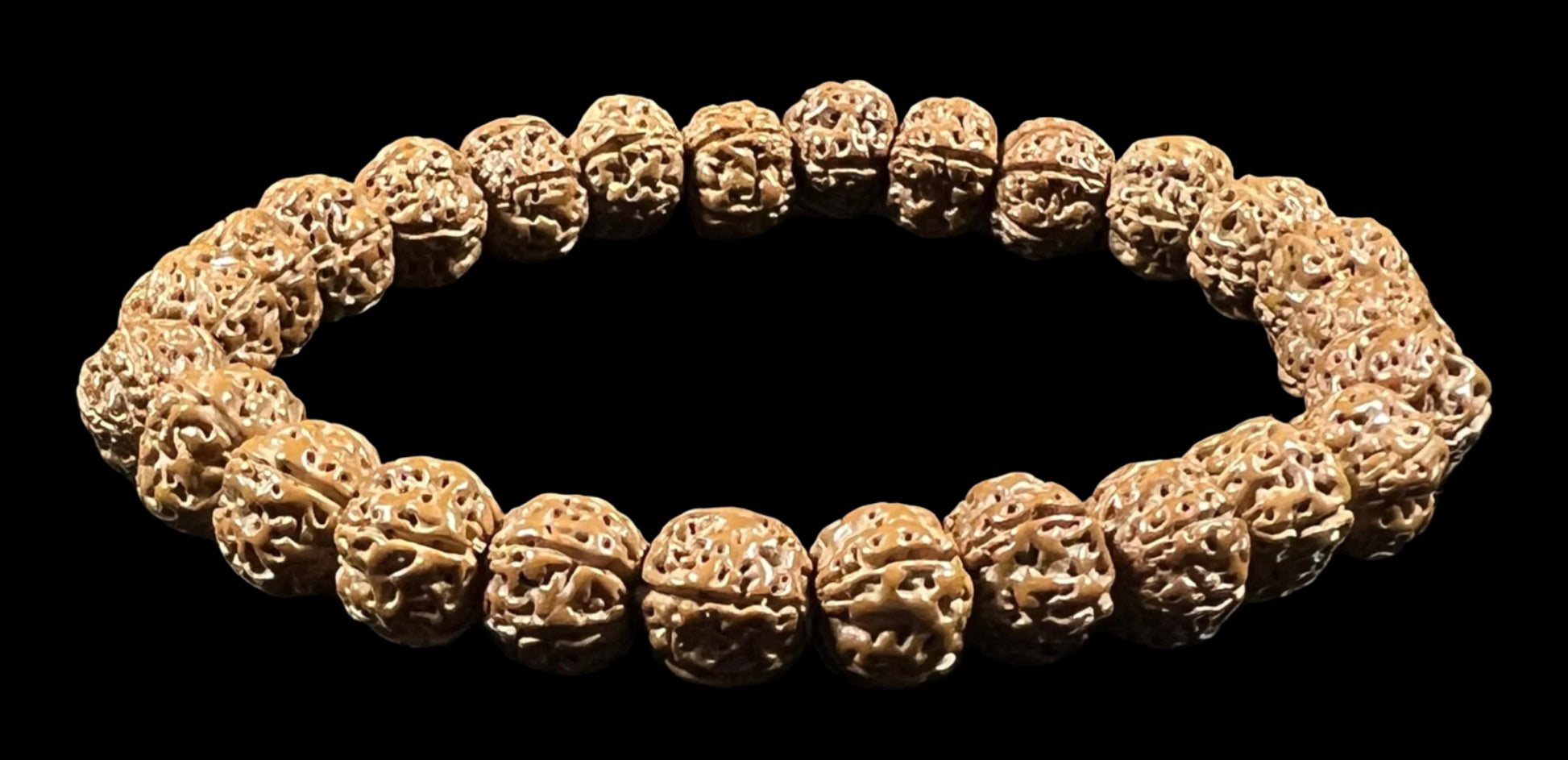 - Handmade in USA. Embrace Spiritual Connection & Deepen Your Practice Deepen your connection to your spiritual self and cultivate a sense of grounded growth with this beautiful, handmade stretch bracelet. Featuring genuine 8mm 5 Mukhi Rudraksha beads alongside AAA grade chikna Rudraksha, this piece offers a unique and meaningful way to promote Root Chakra balance and spiritual well-being (approximately 7.5 inches wrist size).