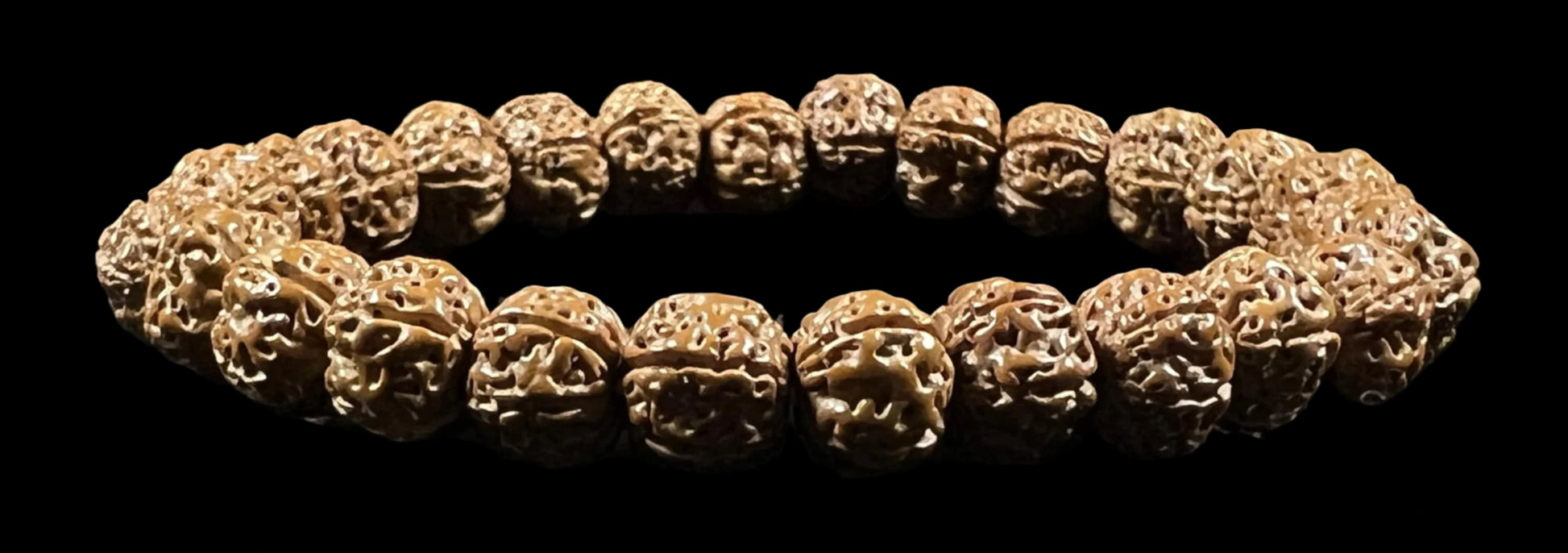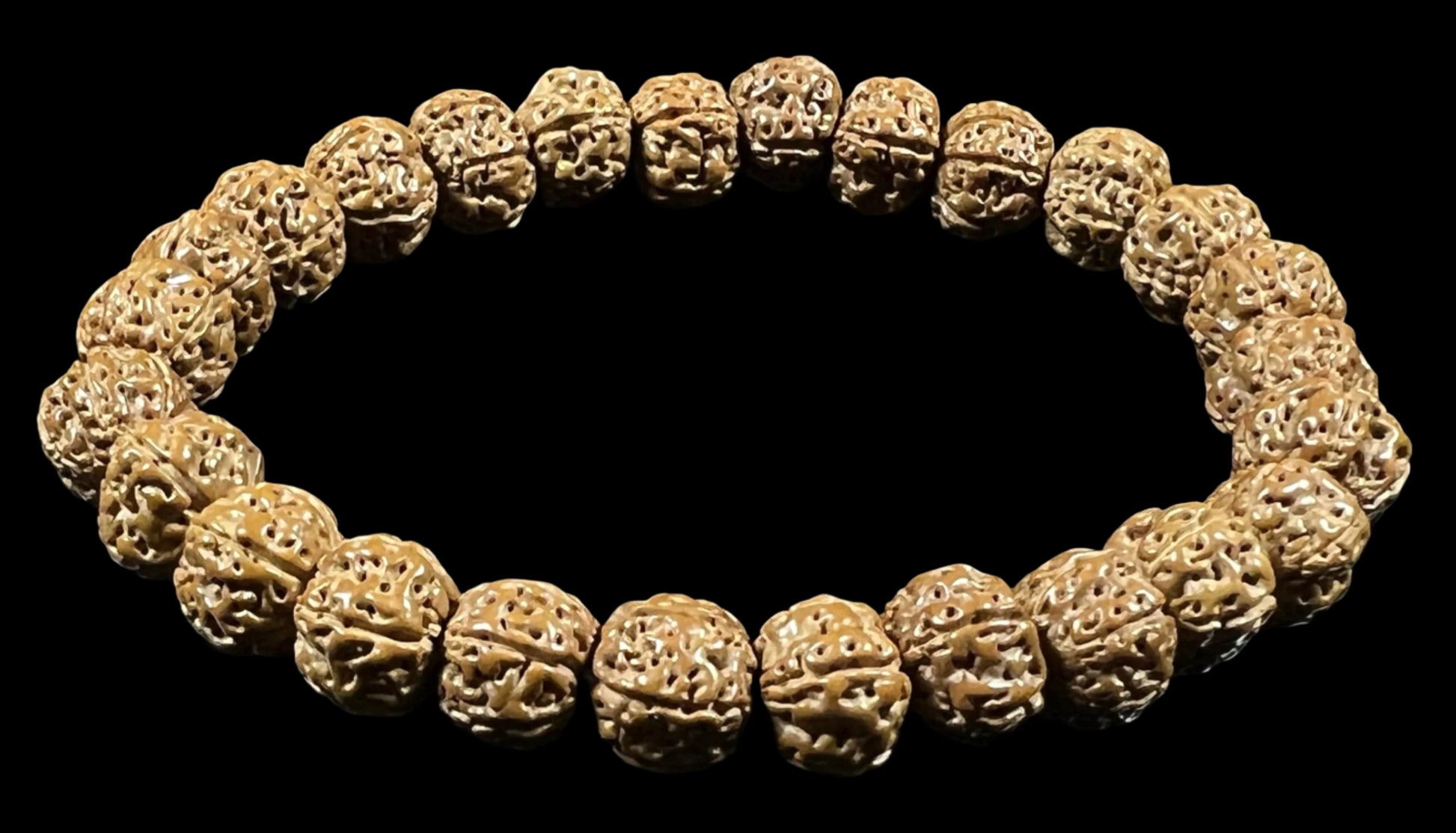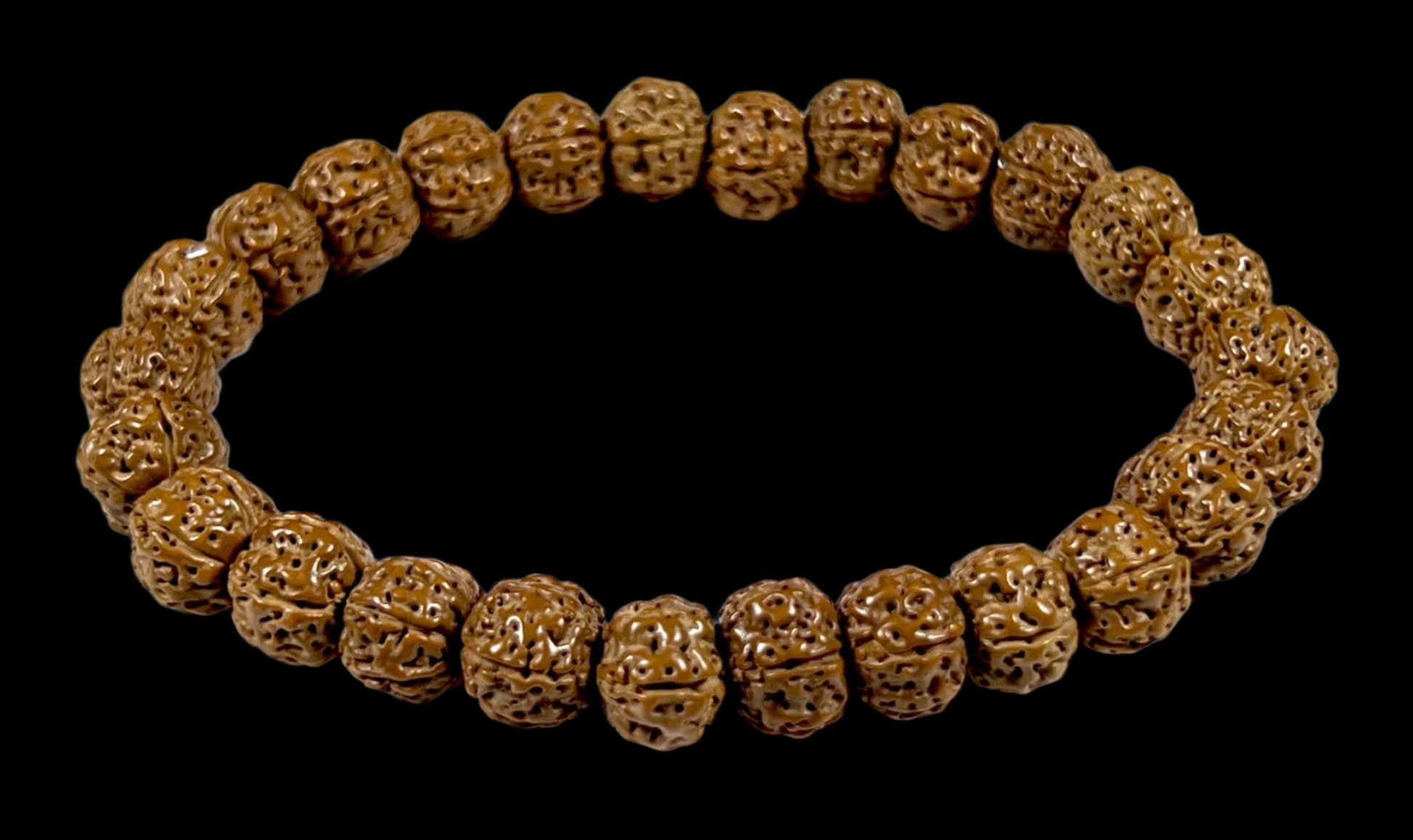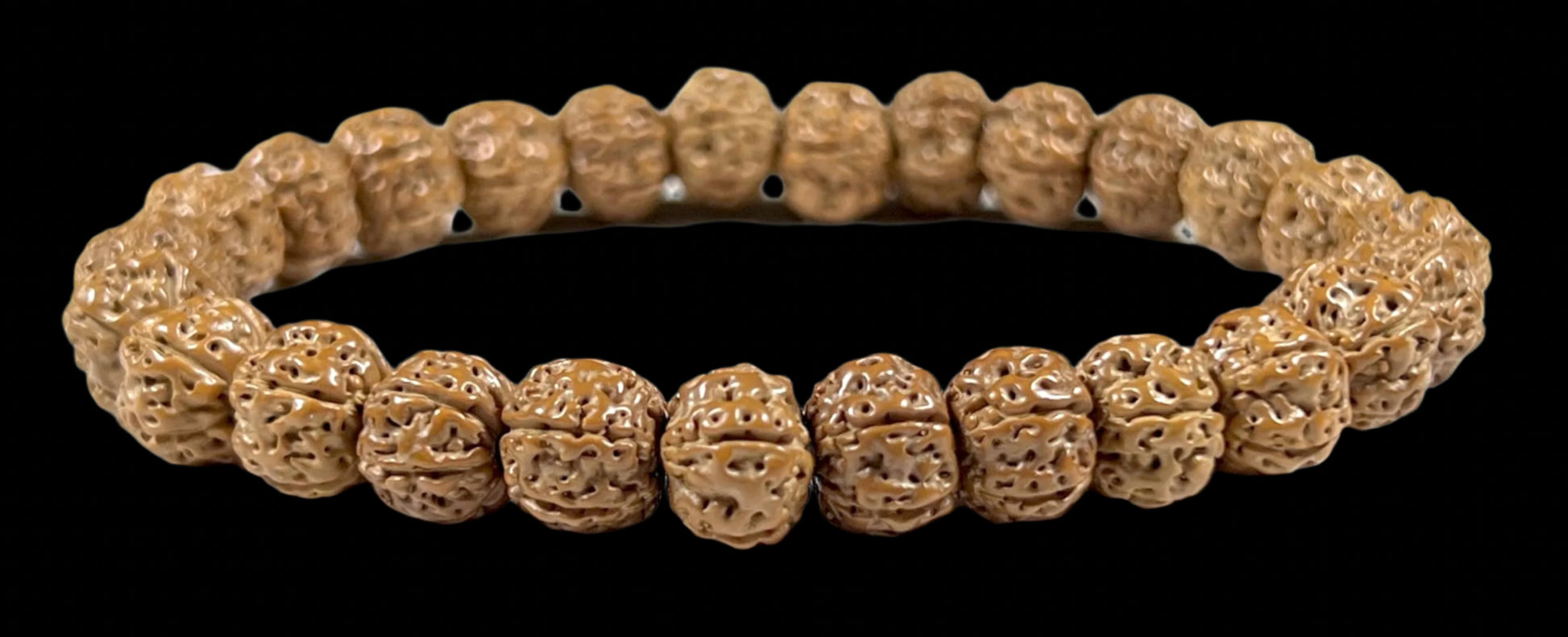 - Handmade in USA. Embrace Spiritual Connection & Deepen Your Practice Deepen your connection to your spiritual self and cultivate a sense of grounded growth with this beautiful, handmade stretch bracelet. Featuring genuine 8mm 5 Mukhi Rudraksha beads alongside AAA grade chikna Rudraksha, this piece offers a unique and meaningful way to promote Root Chakra balance and spiritual well-being (approximately 7.5 inches wrist size).