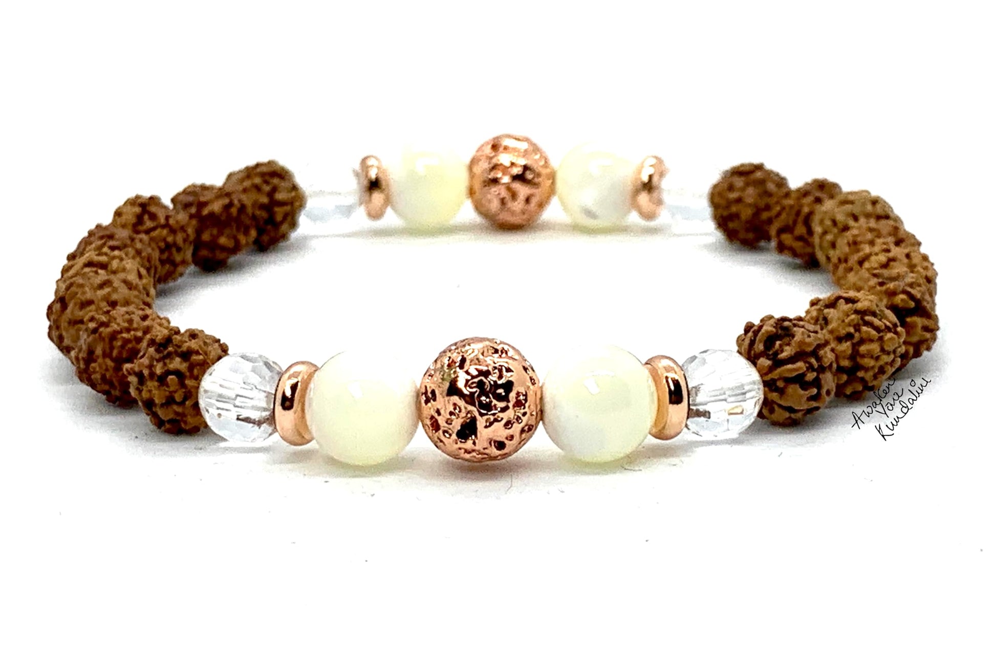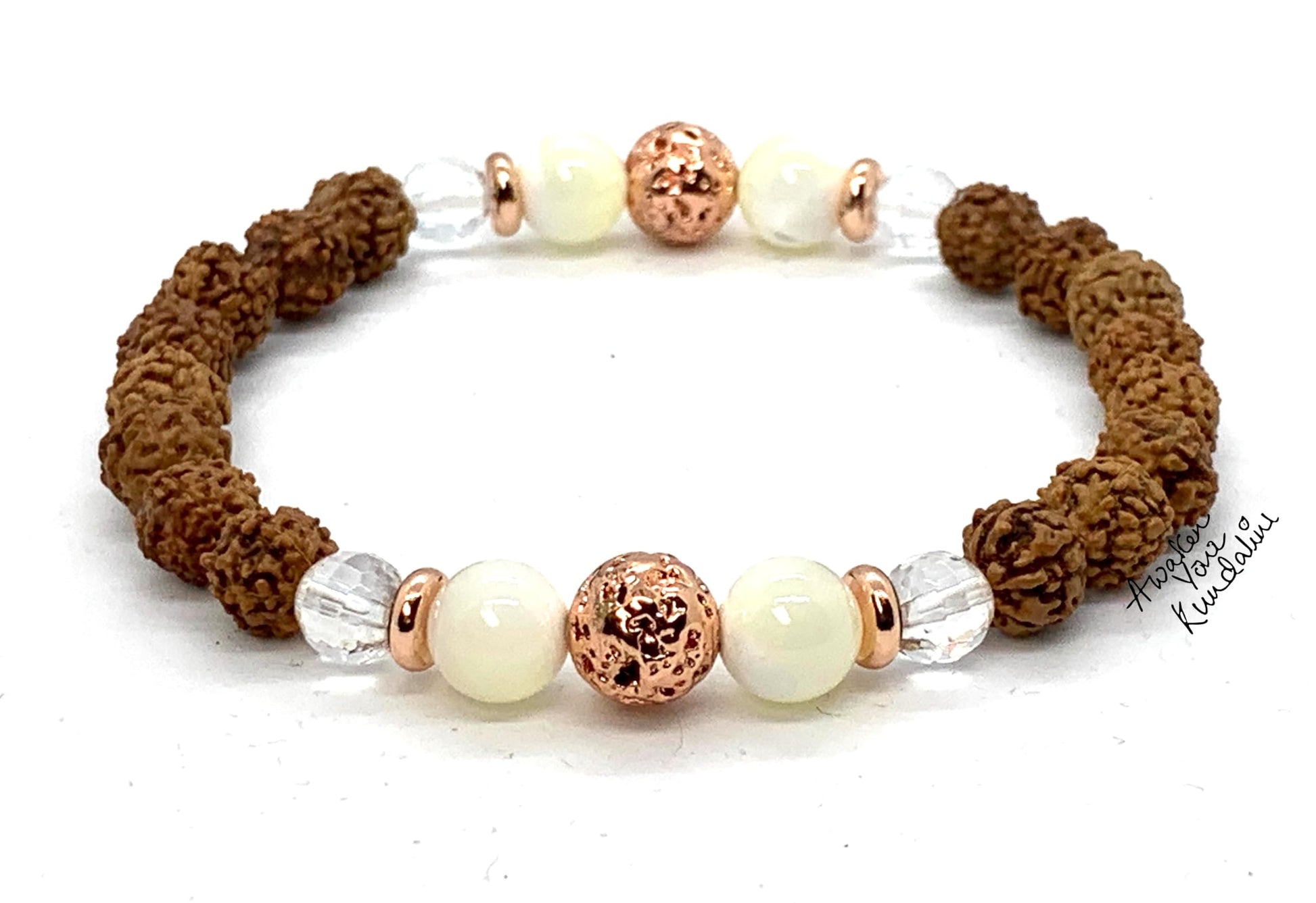 - #5MukhiRudraksha #StretchBracelet #CrystalQuartzJewelry #MotherOfPearlBracelet #LavaRockBeads #AprilBirthstone #AriesJewelry #TaurusJewelry #ChakraBracelet #SpiritualJewelry #SpritualSignificance #MentalClarity #EleganceAndSophistication #Vitality #Strength #StressRelief #HarmonyAndBalance