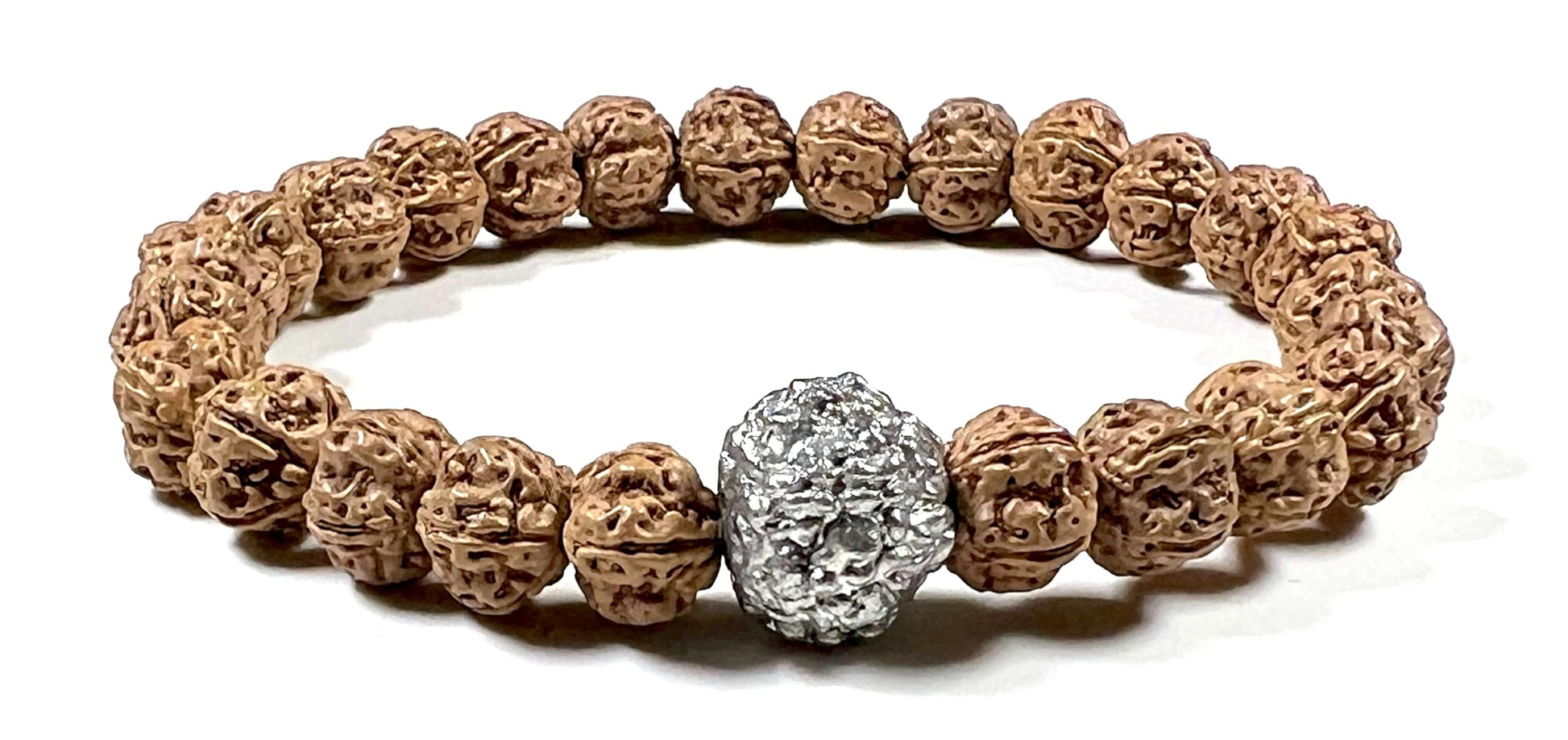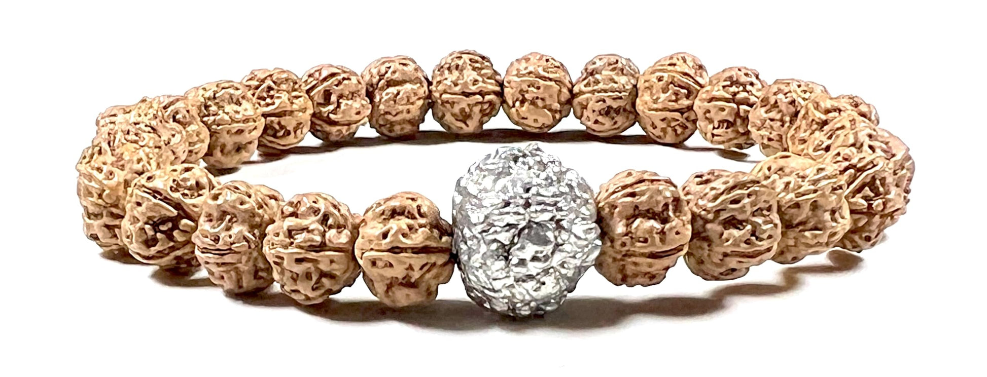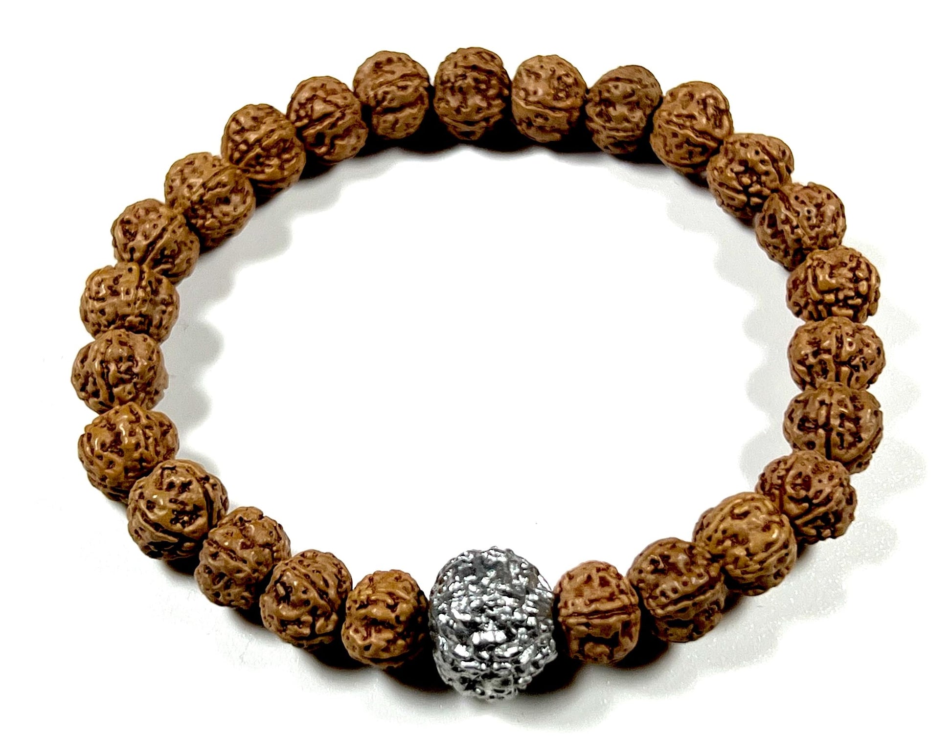 5 Mukhi Chikna Rudraksha with Parad (Mercury) Bead Stretch Bracelet – Leo Birthstone, Mercury Astrological Sign, Heart Chakra