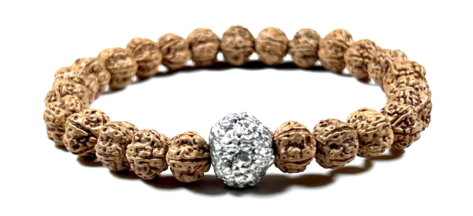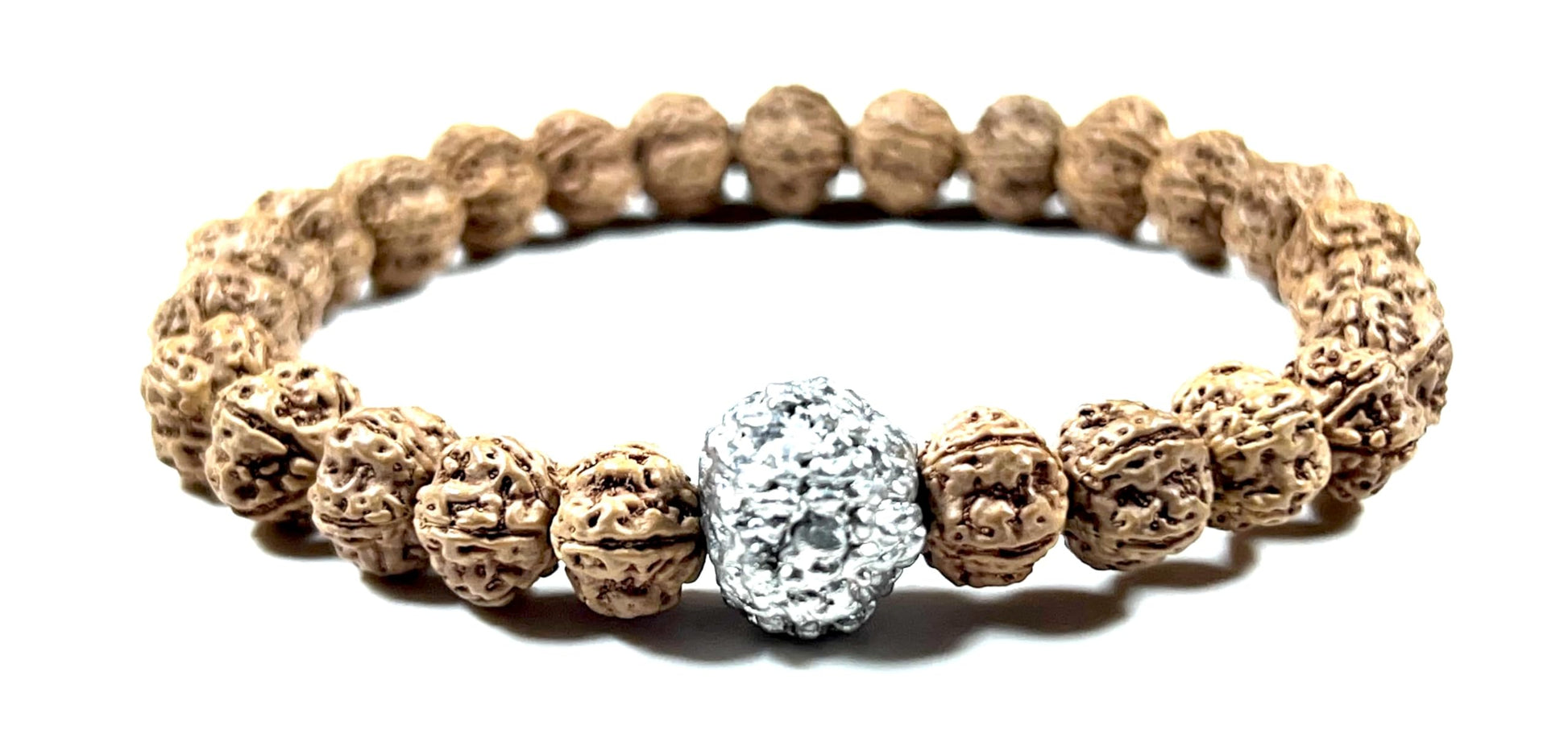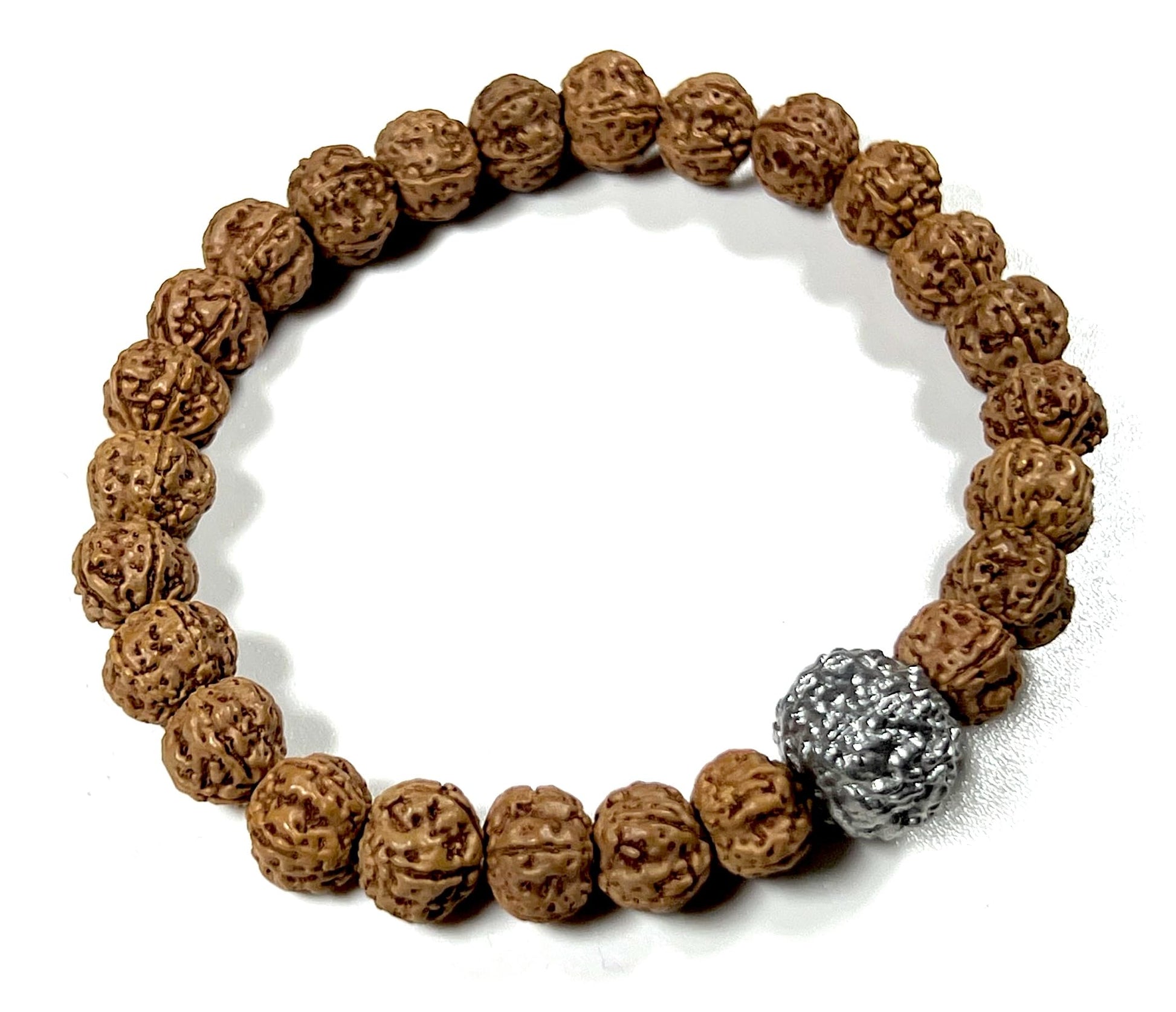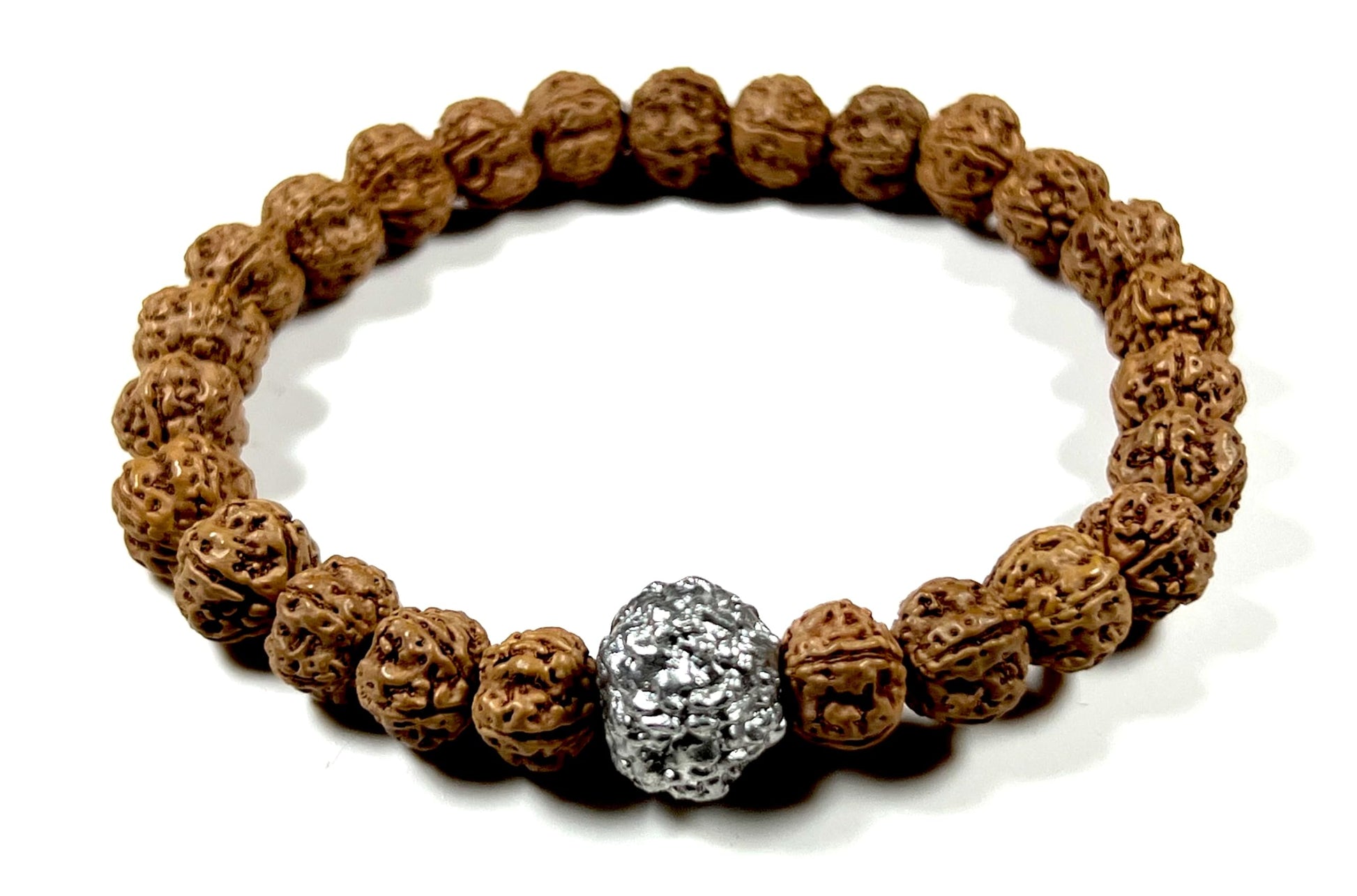 5 Mukhi Chikna Rudraksha with Parad (Mercury) Bead Stretch Bracelet – Leo Birthstone, Mercury Astrological Sign, Heart Chakra