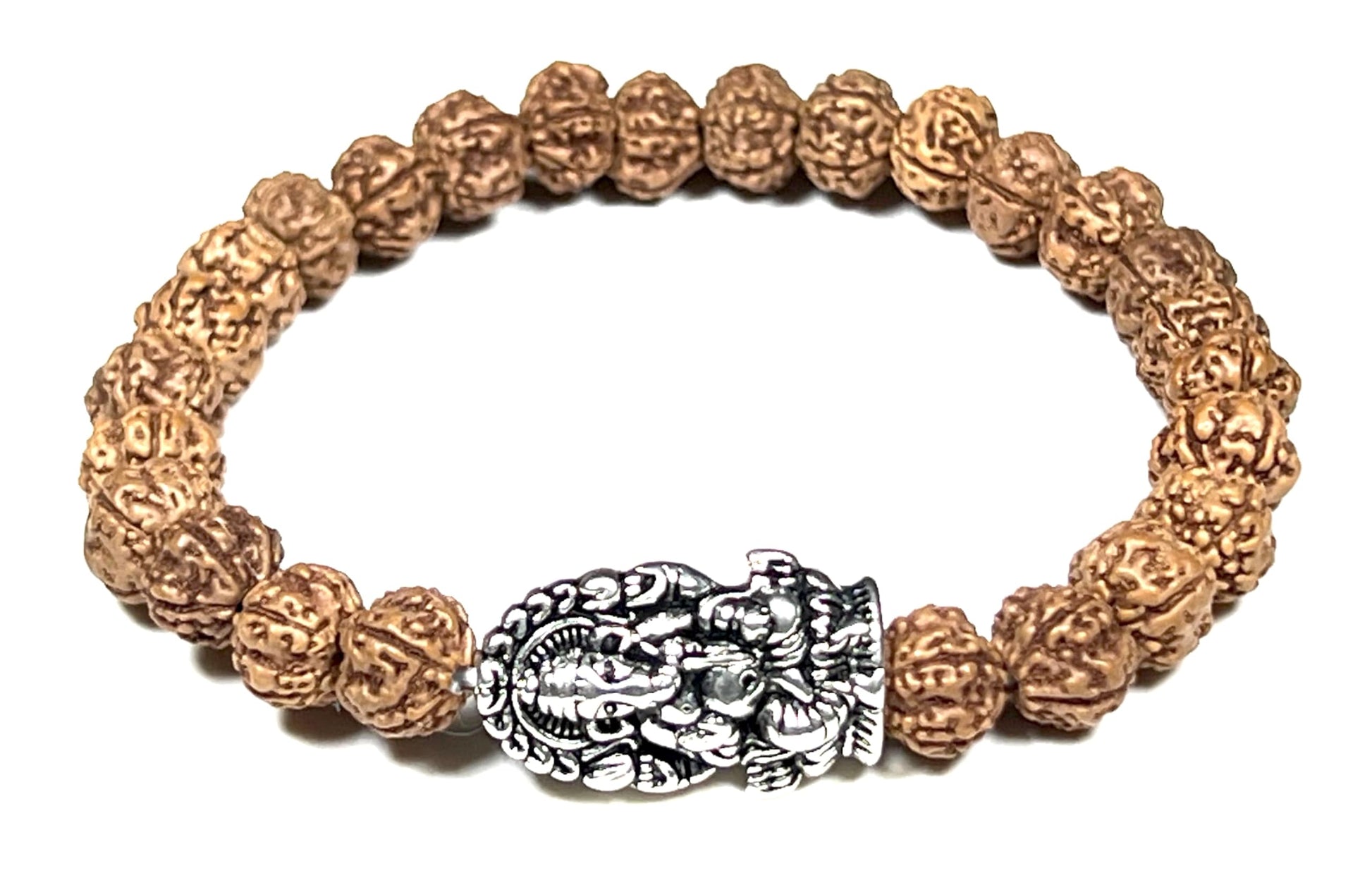 - Handmade in USA.Product Specifications: Gemstone: 5 Mukhi Rudraksha Bead Size: 8mm Material: Stretch Cord Style: Stretch Bracelet avialble in Wrist Size from 6-9 inches. Spacer Accent Bead: Zinc Alloy Lord Ganesha