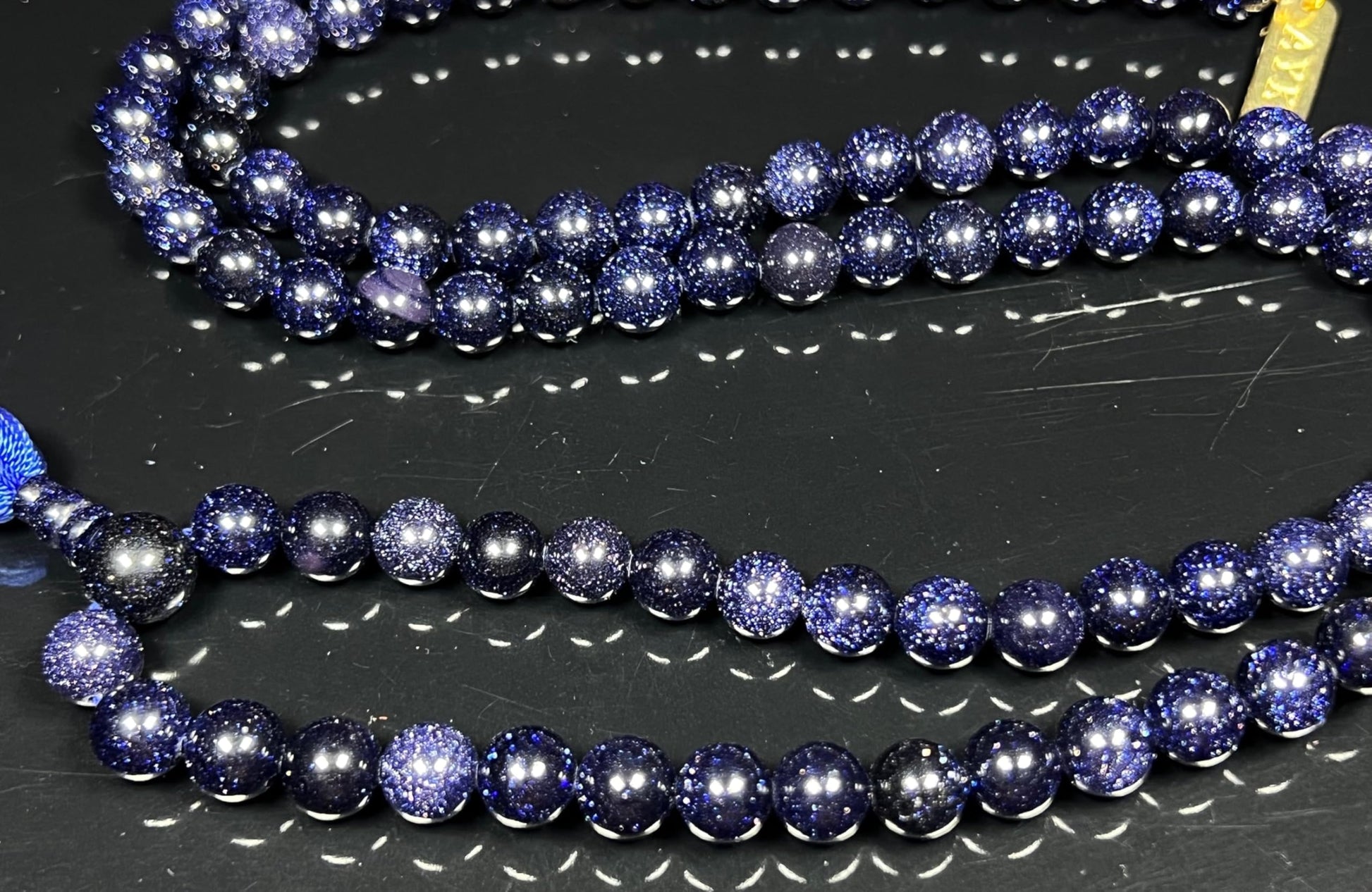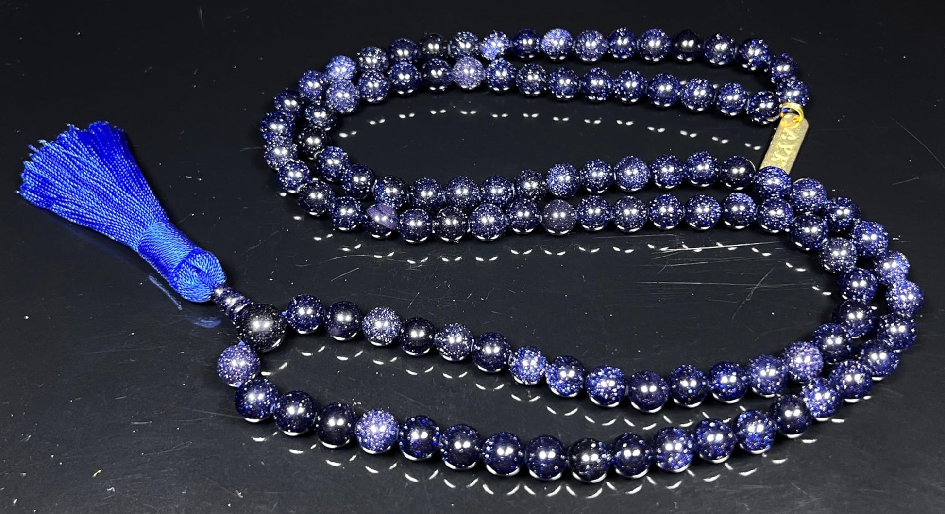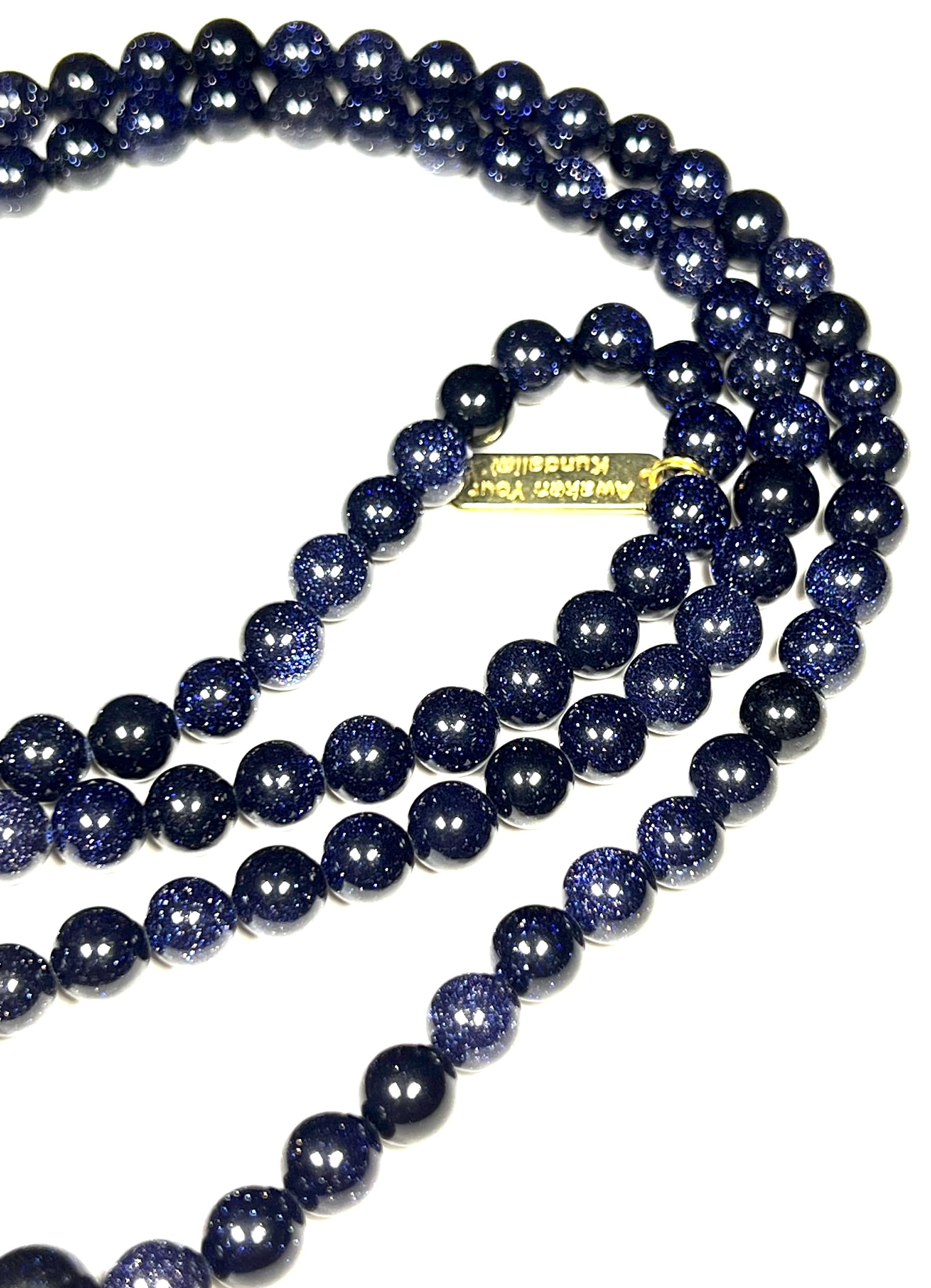 Embrace the cosmic sparkle of the night sky with our 6mm Blue Goldstone Mala Necklace, part of the TARA Collection by Awaken Your Kundalini. “Tara,” meaning star in Sanskrit, symbolizes guidance, divine light, and protection—perfectly reflected in the dazzling midnight shimmer of Blue Goldstone.