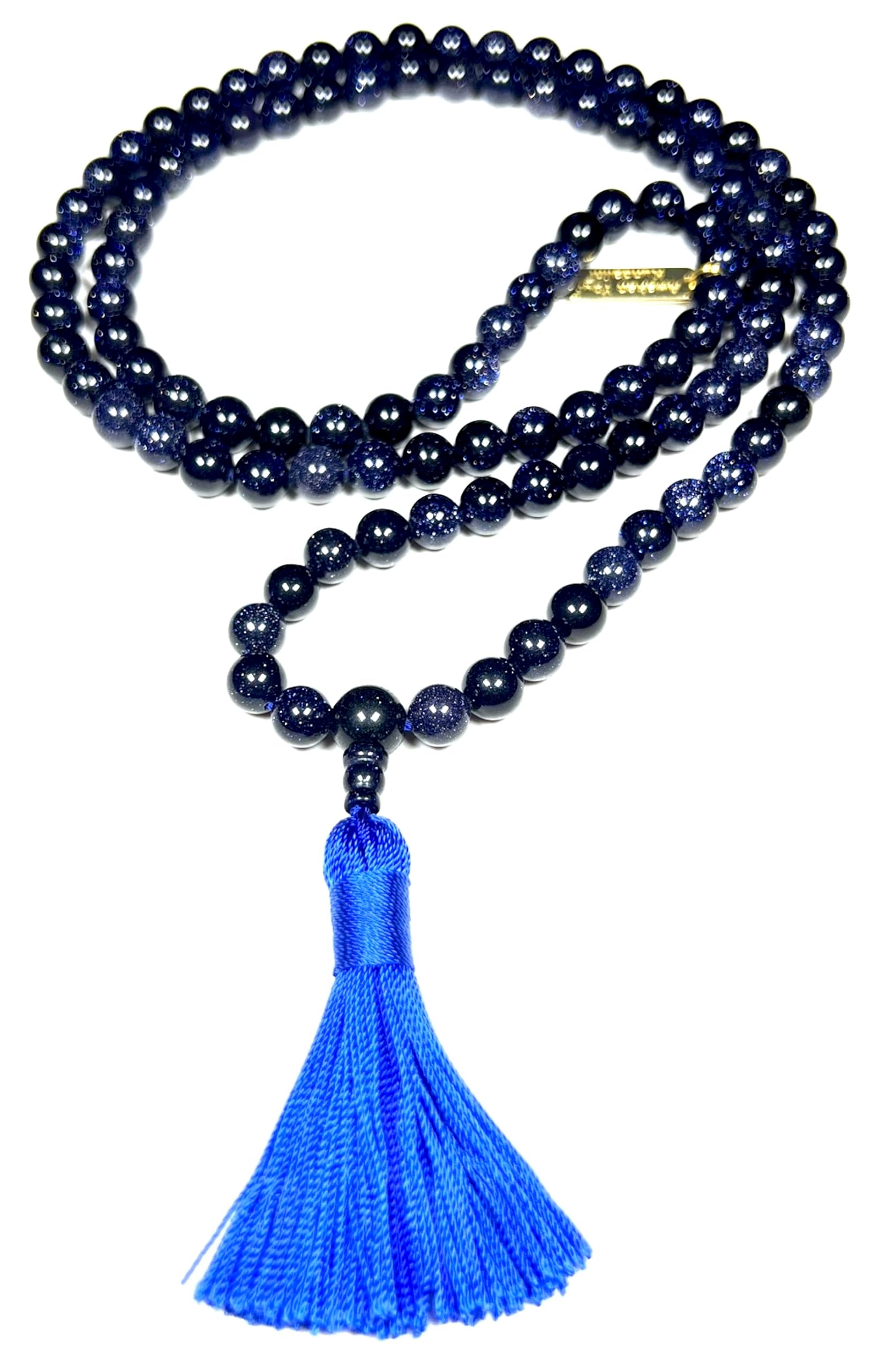 Blue Goldstone Mala Necklace | 108 Beads for Throat Chakra | TARA Collection