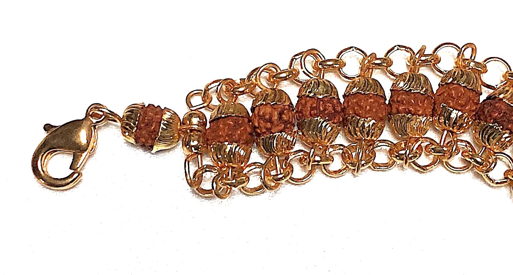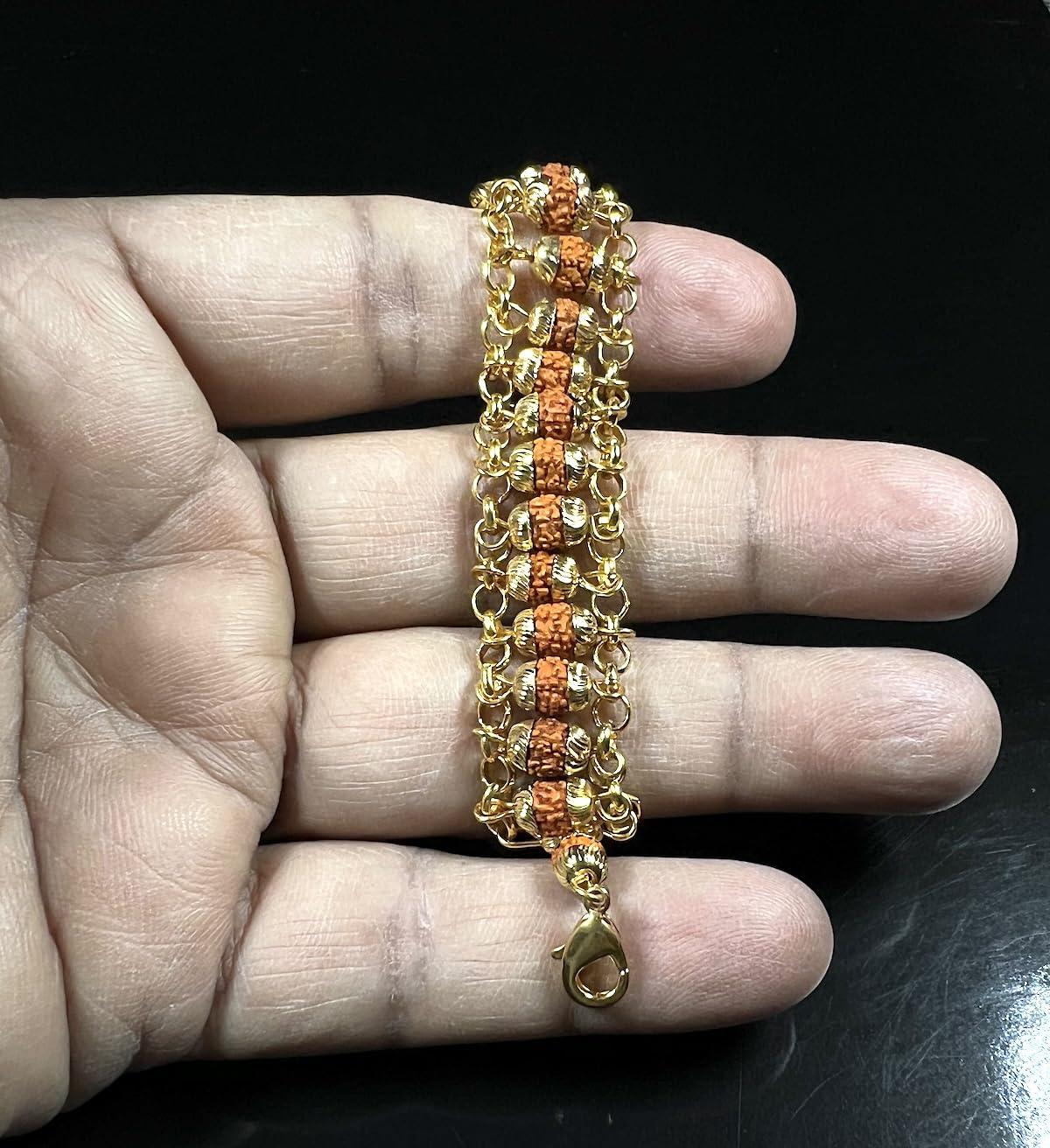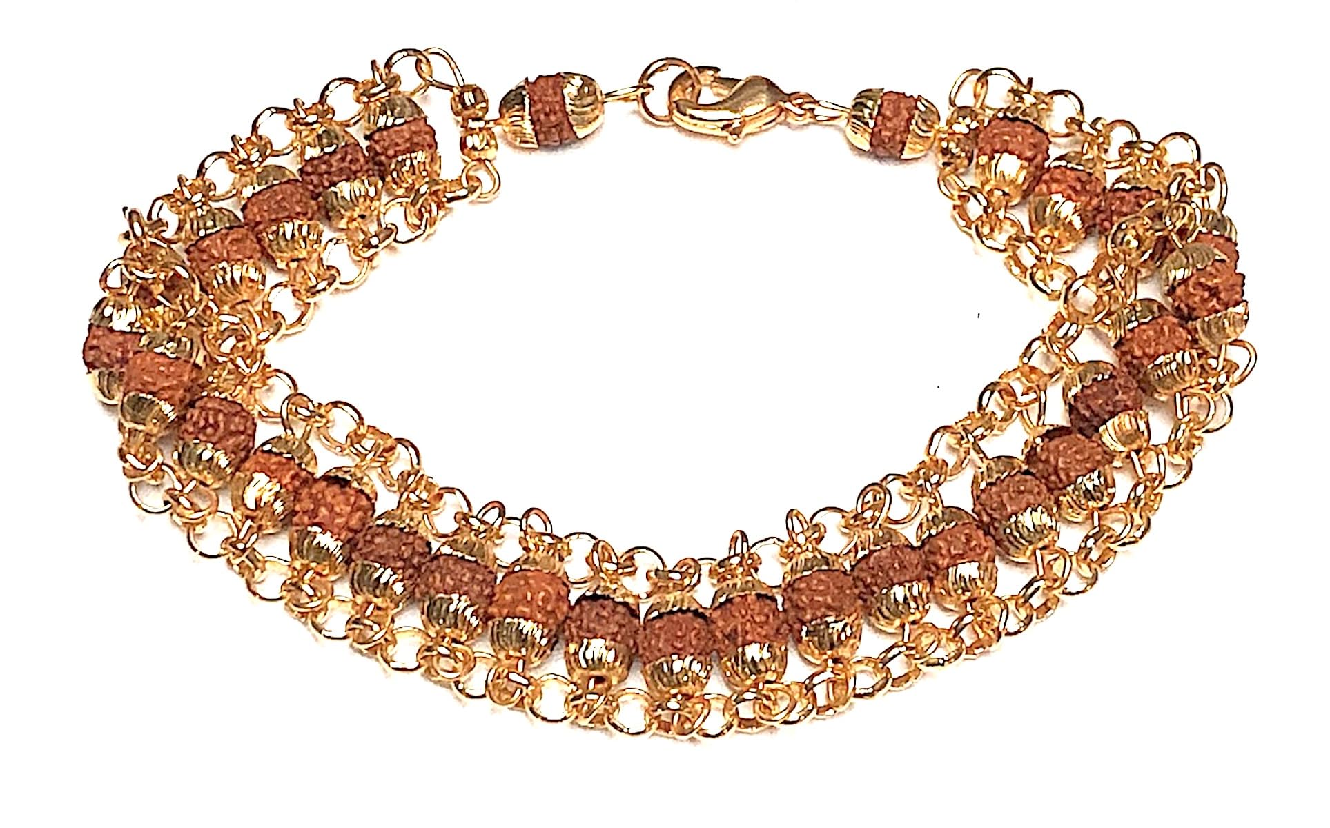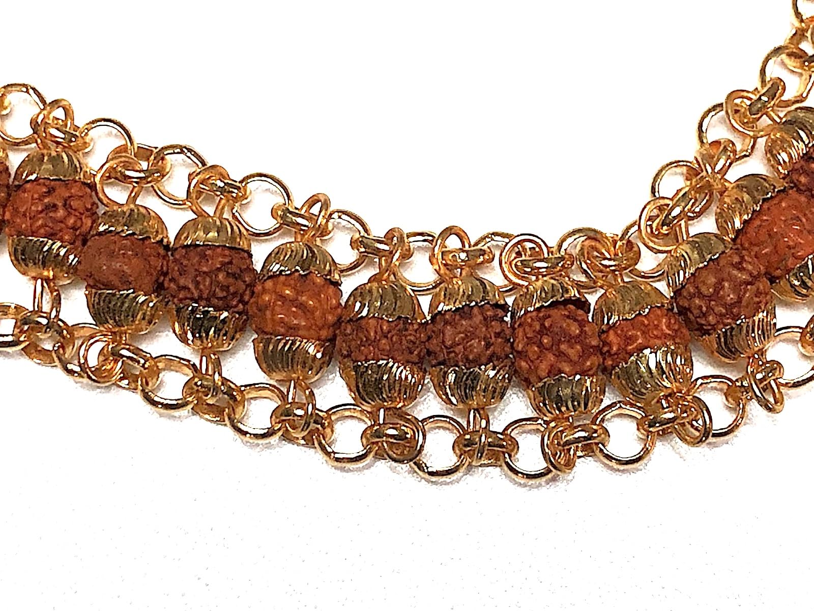 - Embrace spiritual elegance with this beautiful 6mm Rudraksha Bracelet in a golden finish alloy chain. Rudraksha beads have been revered for their deep connection to spiritual energy and tranquility. This bracelet resonates with the Crown Chakra, promoting awareness, wisdom, and inner peace.