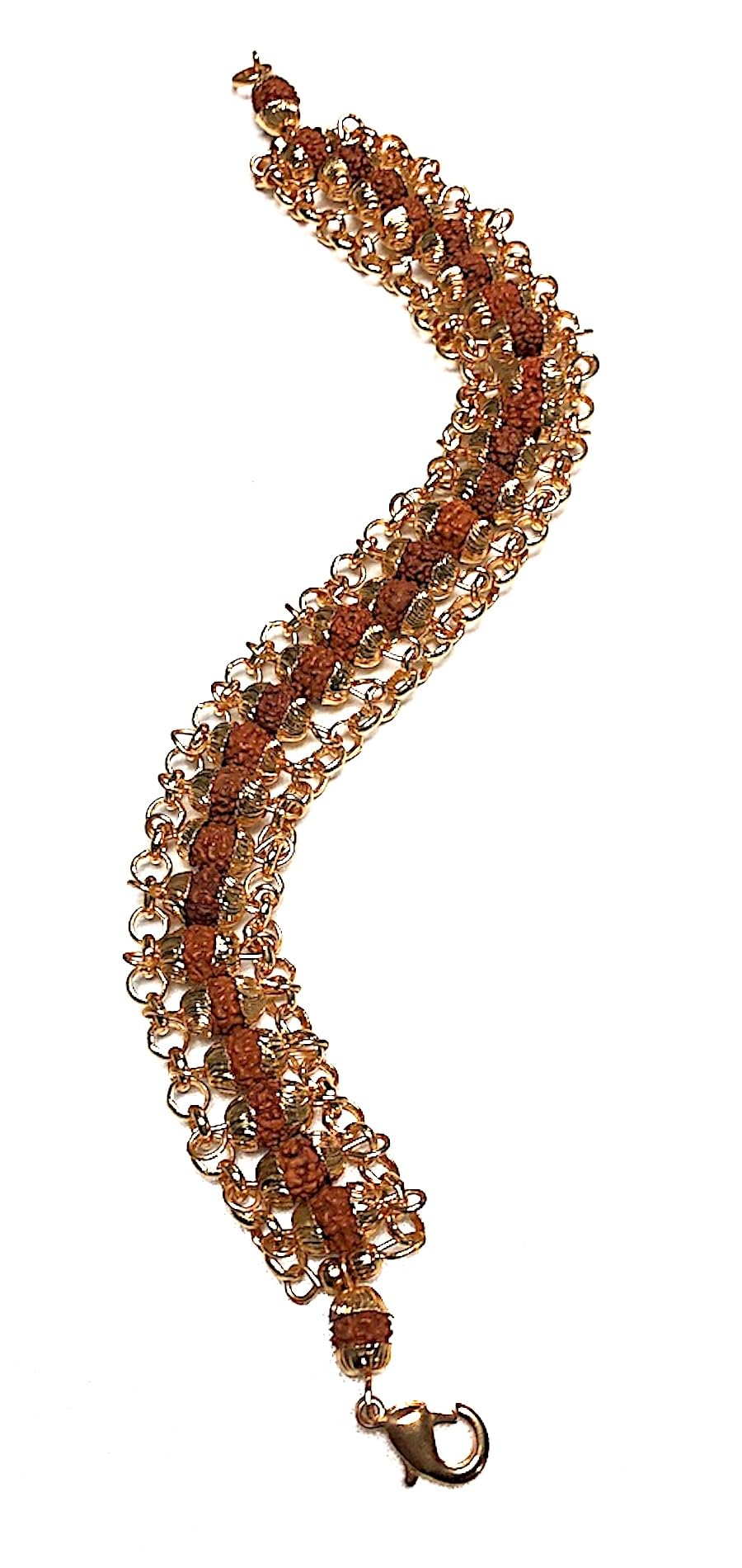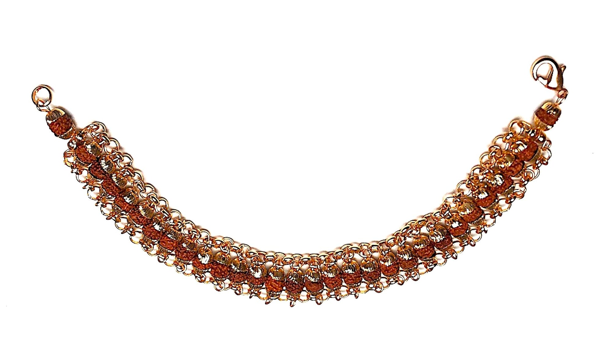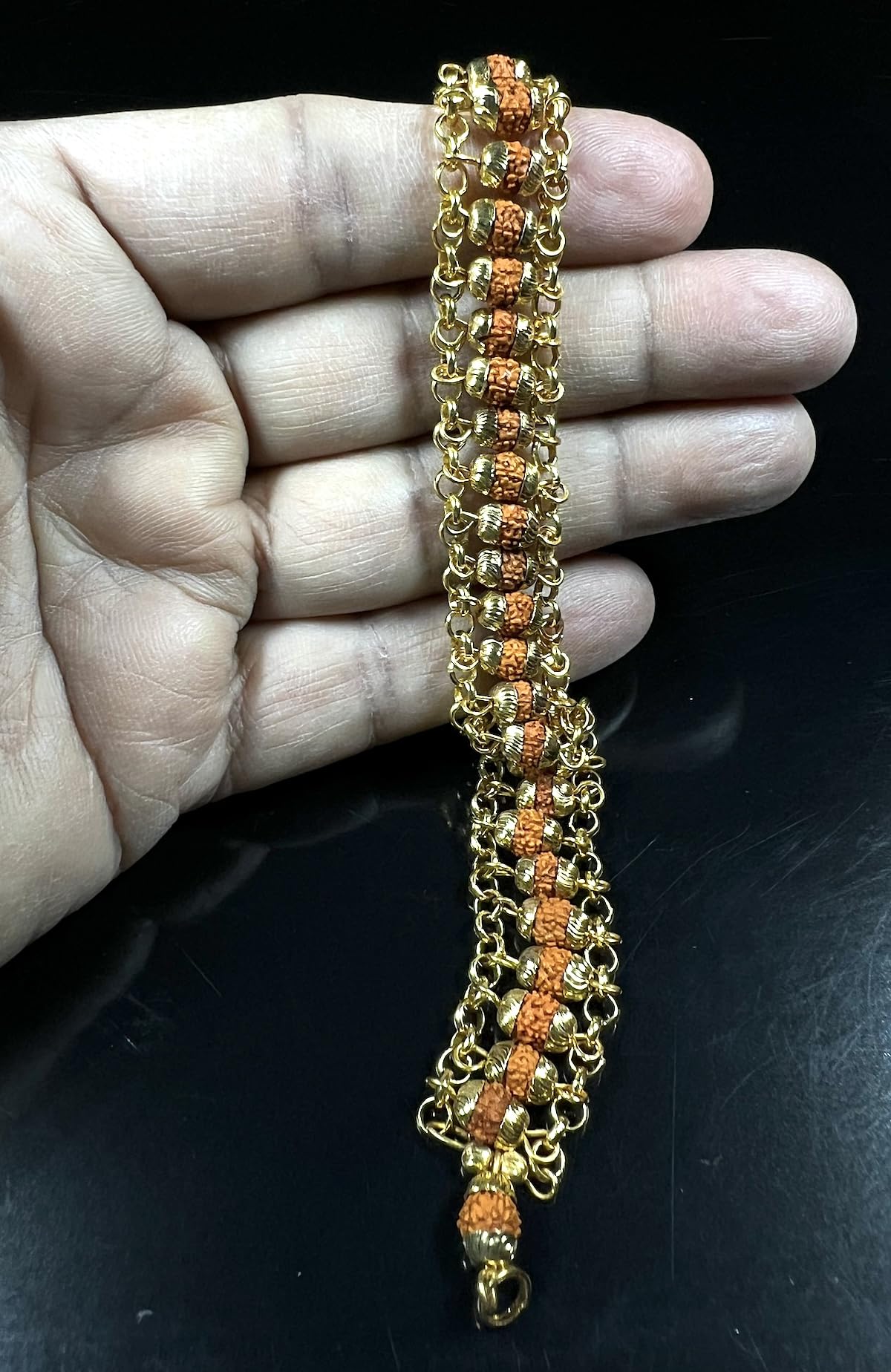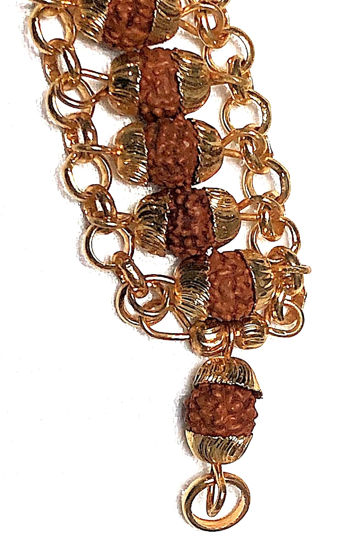 - Embrace spiritual elegance with this beautiful 6mm Rudraksha Bracelet in a golden finish alloy chain. Rudraksha beads have been revered for their deep connection to spiritual energy and tranquility. This bracelet resonates with the Crown Chakra, promoting awareness, wisdom, and inner peace.