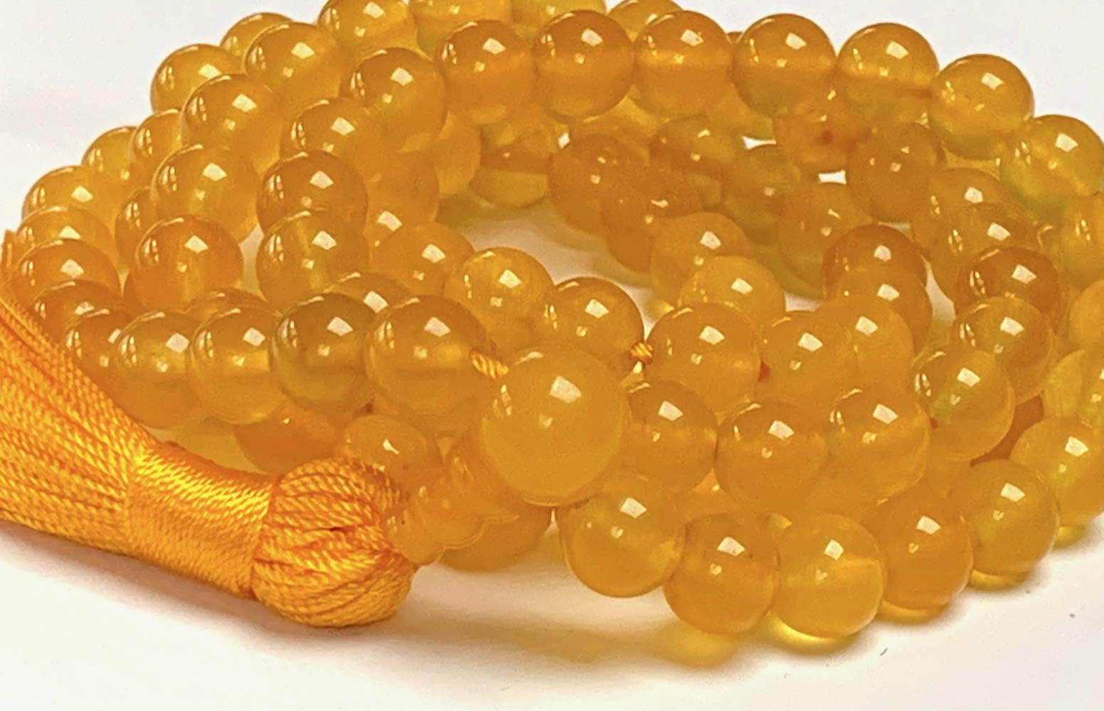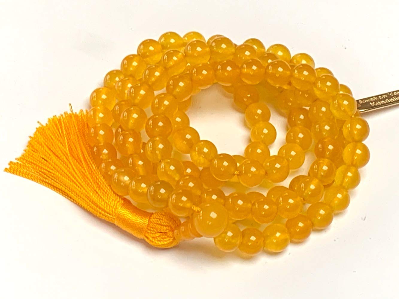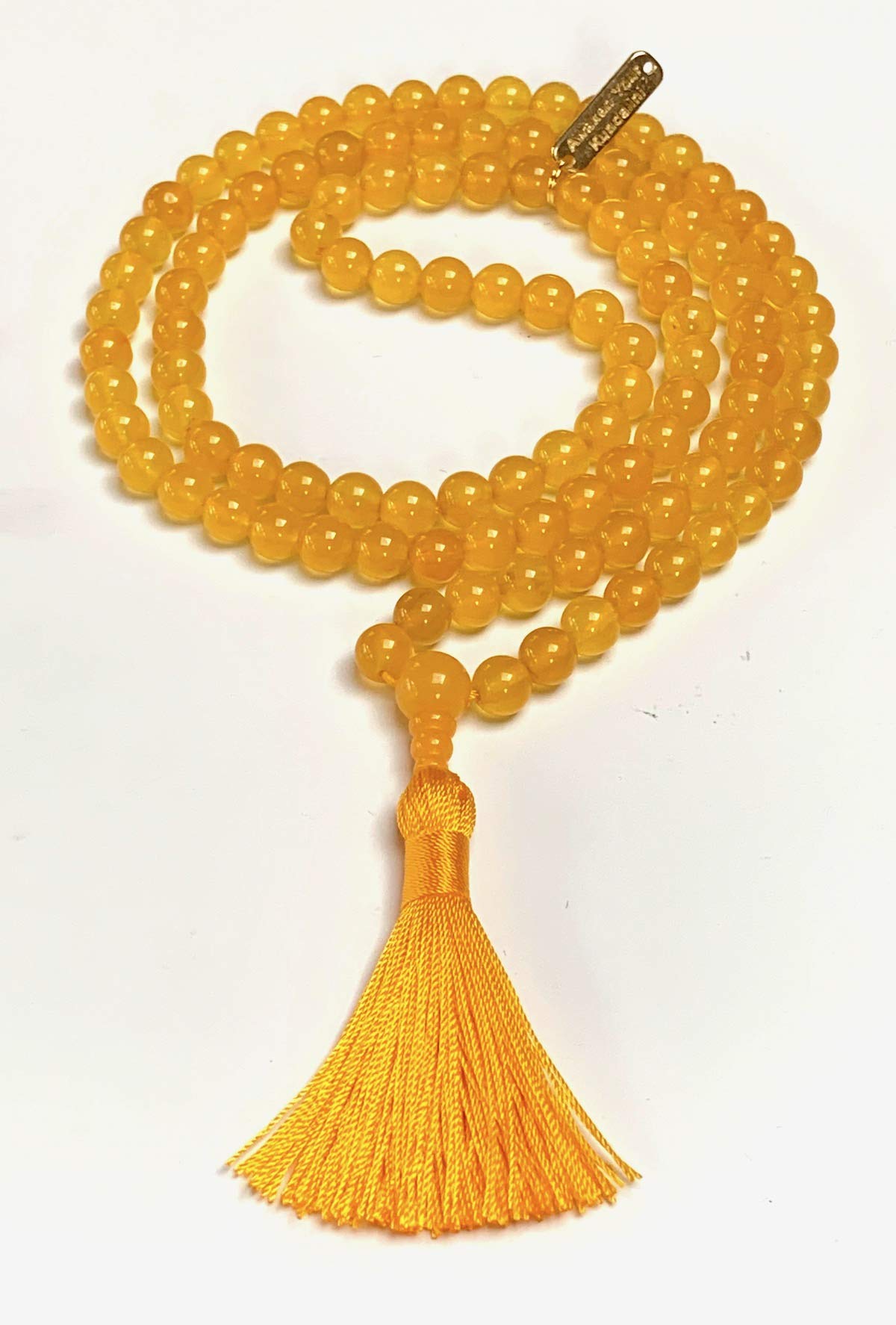 Awaken Your Kundalini Crystals Mala Beads Necklace Reiki Healing Stones Blessed & Energized Handmade 108 Buddhist Prayer Beads - Comes w/Velvet Pouch (Yellow Agate or Onyx, 8 mm)