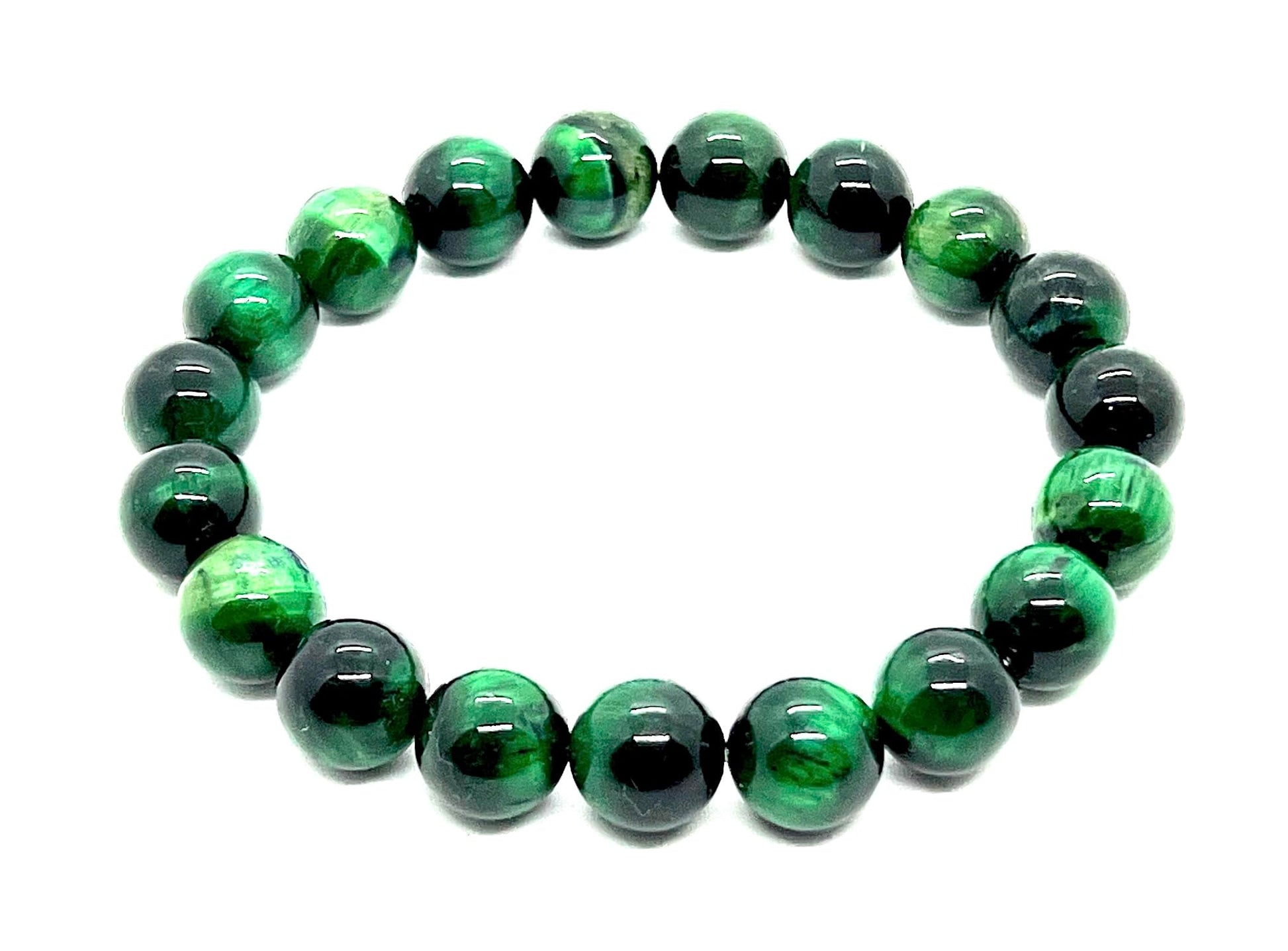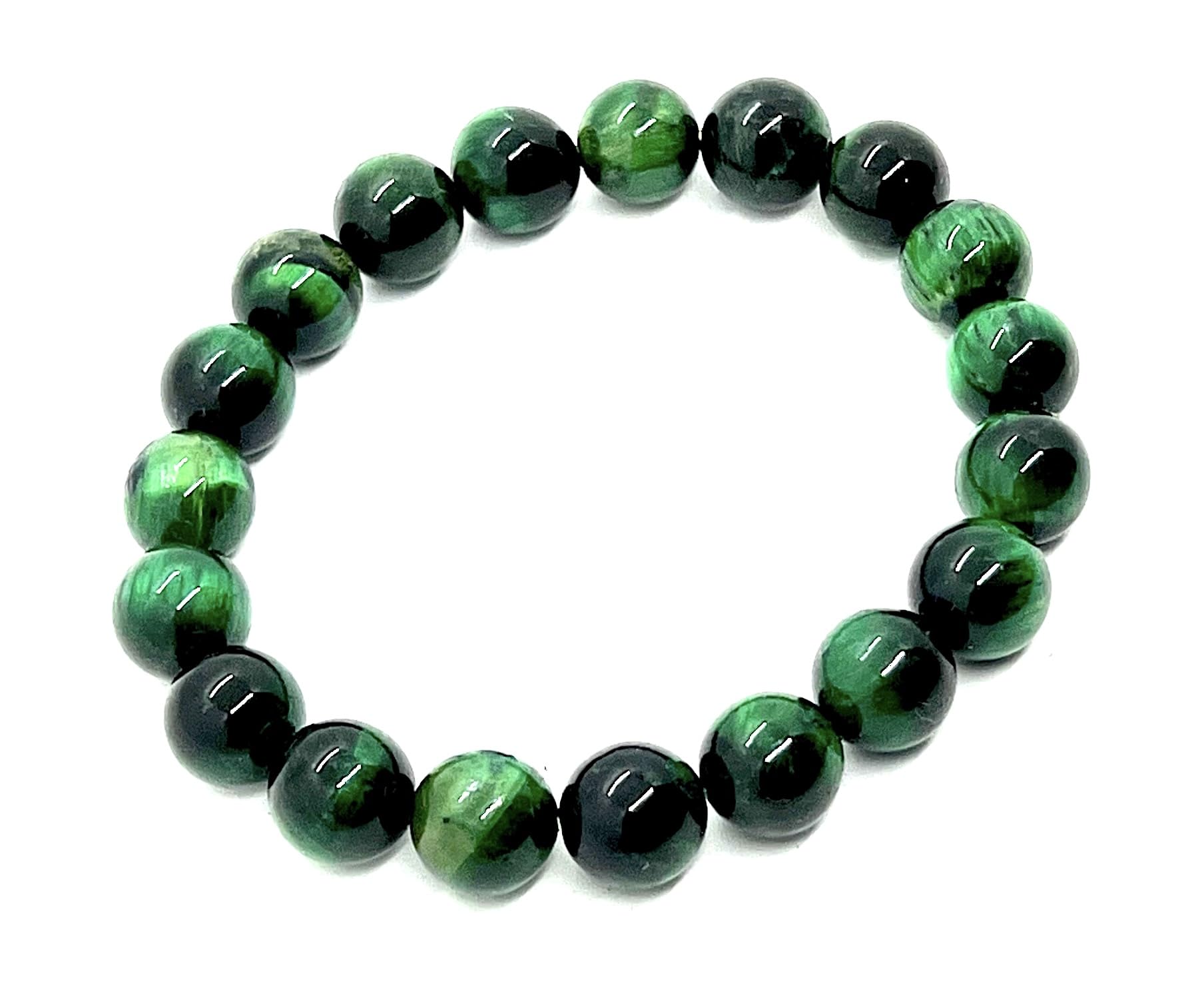- Key Features: Vibrant Green Tiger's Eye: This bracelet is crafted from striking 10mm Green Tiger's Eye beads, known for their mesmerizing color and natural luster. Perfect Fit: With a 7.5-inch wrist size, this stretch bracelet offers a comfortable and flexible fit, making it ideal for daily wear.