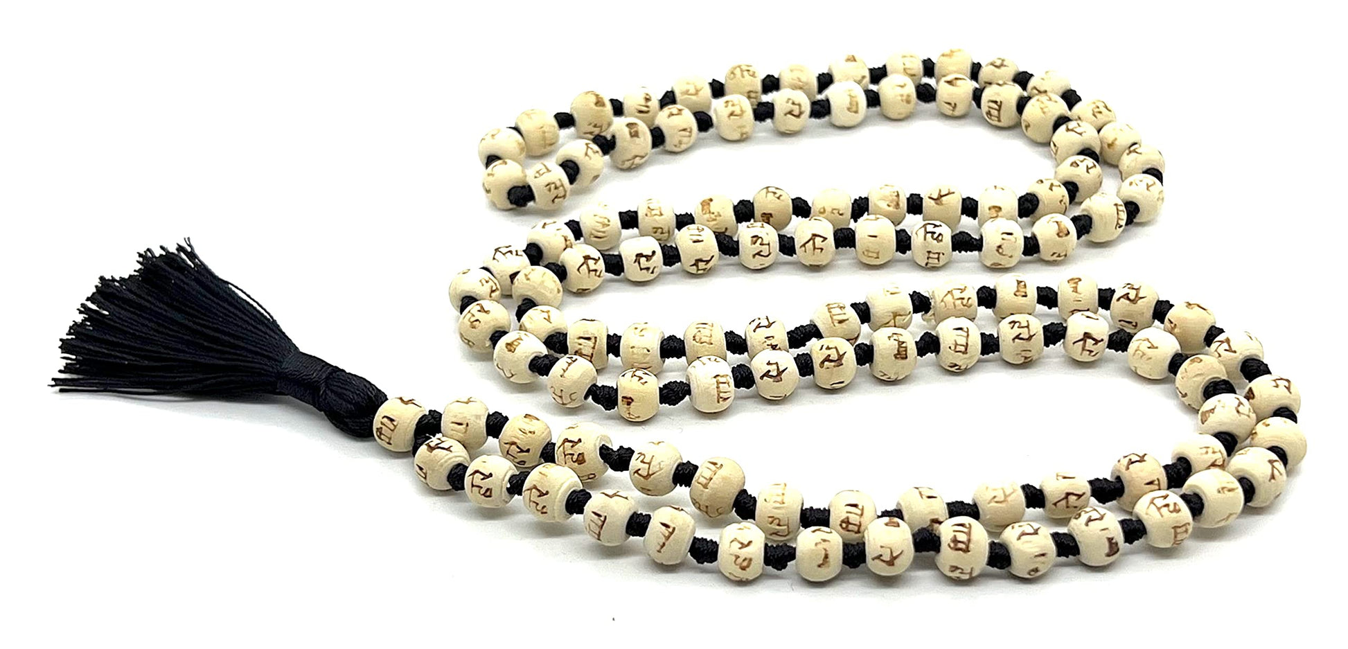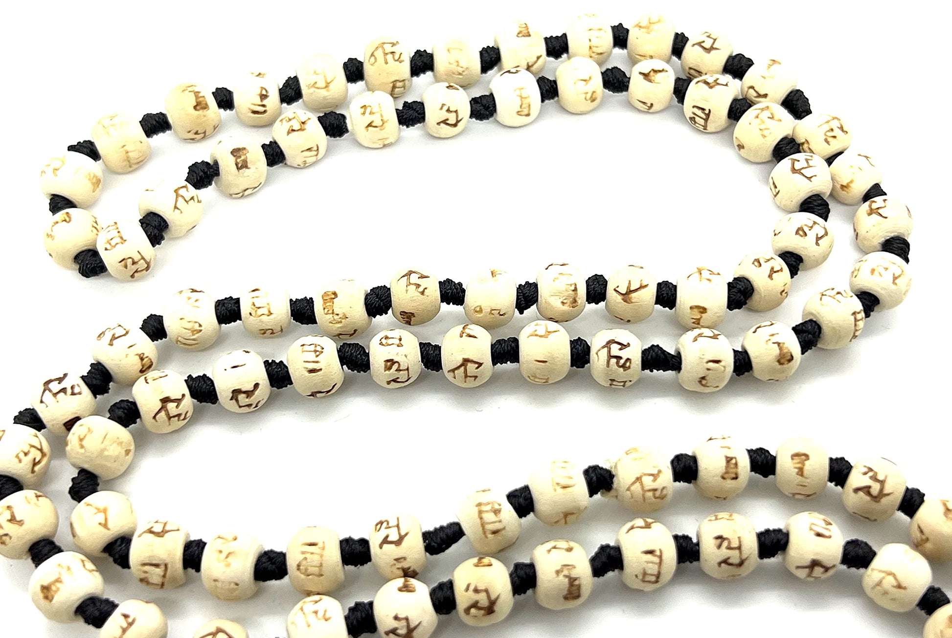 - Style and Significance. Our Hand Knotted 8mm Tulsi Mala Necklace is a fusion of tradition and style. The "Ram" engraving on each bead, paired with the vibrant black string, makes this mala stand out as both a spiritual tool and a statement piece. Ideal for meditation, prayer, or daily wear, it is a testament to spiritual elegance.