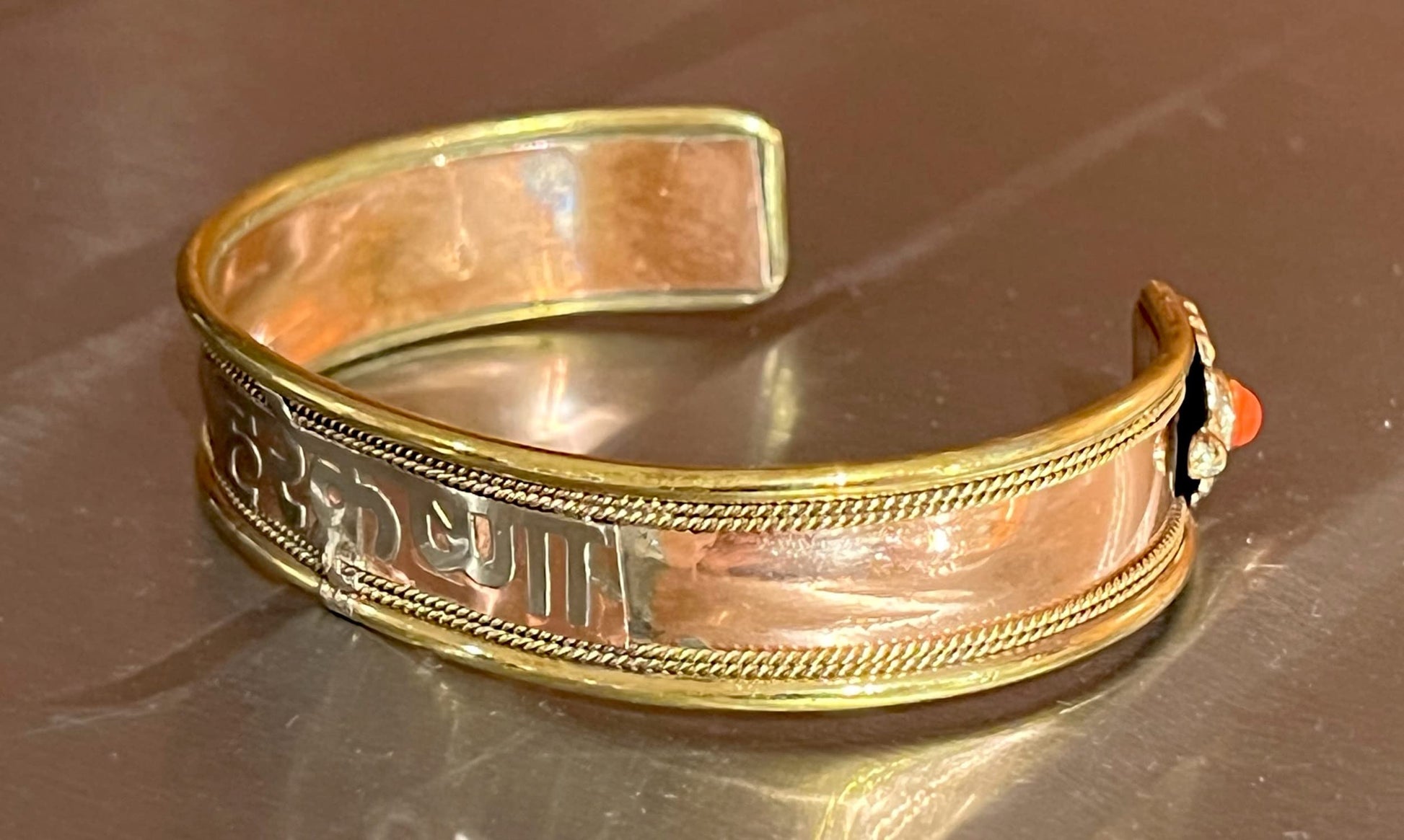 - Root Chakra Connection: The copper metal resonates with the Root Chakra, the base of the chakra system, promoting feelings of stability, security, and groundedness. Stylish & Symbolic: This beautiful bangle is more than just an accessory; it's a powerful symbol of your faith and a reminder to cultivate inner strength through tradition and positive mantras.