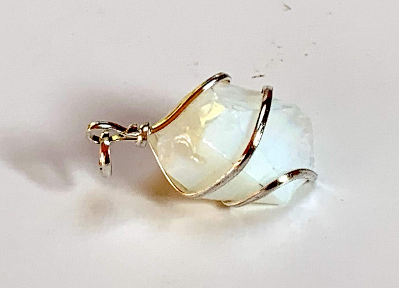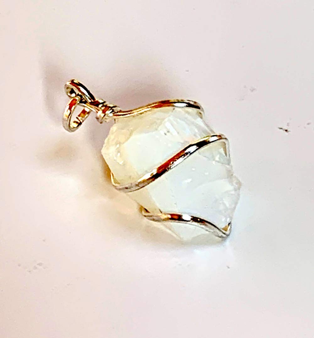 AWAKEN YOUR KUNDALINI Libra Birthstone Pendant - Raw Opal Opalite Crystal Wrapped in Zinc Alloy Wire (#UORWZP)