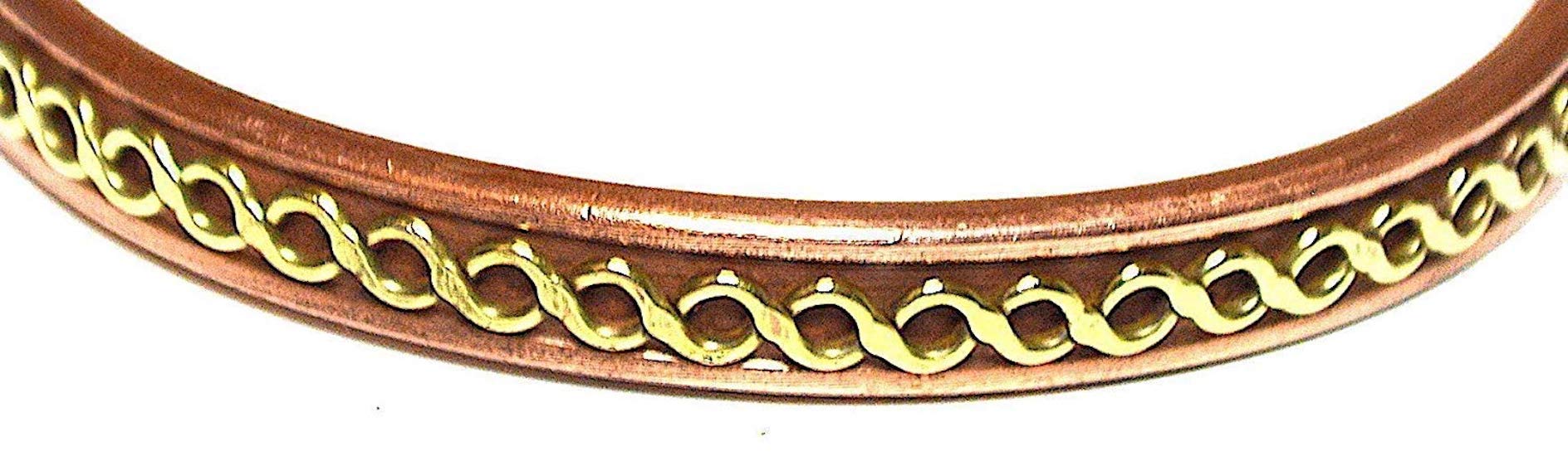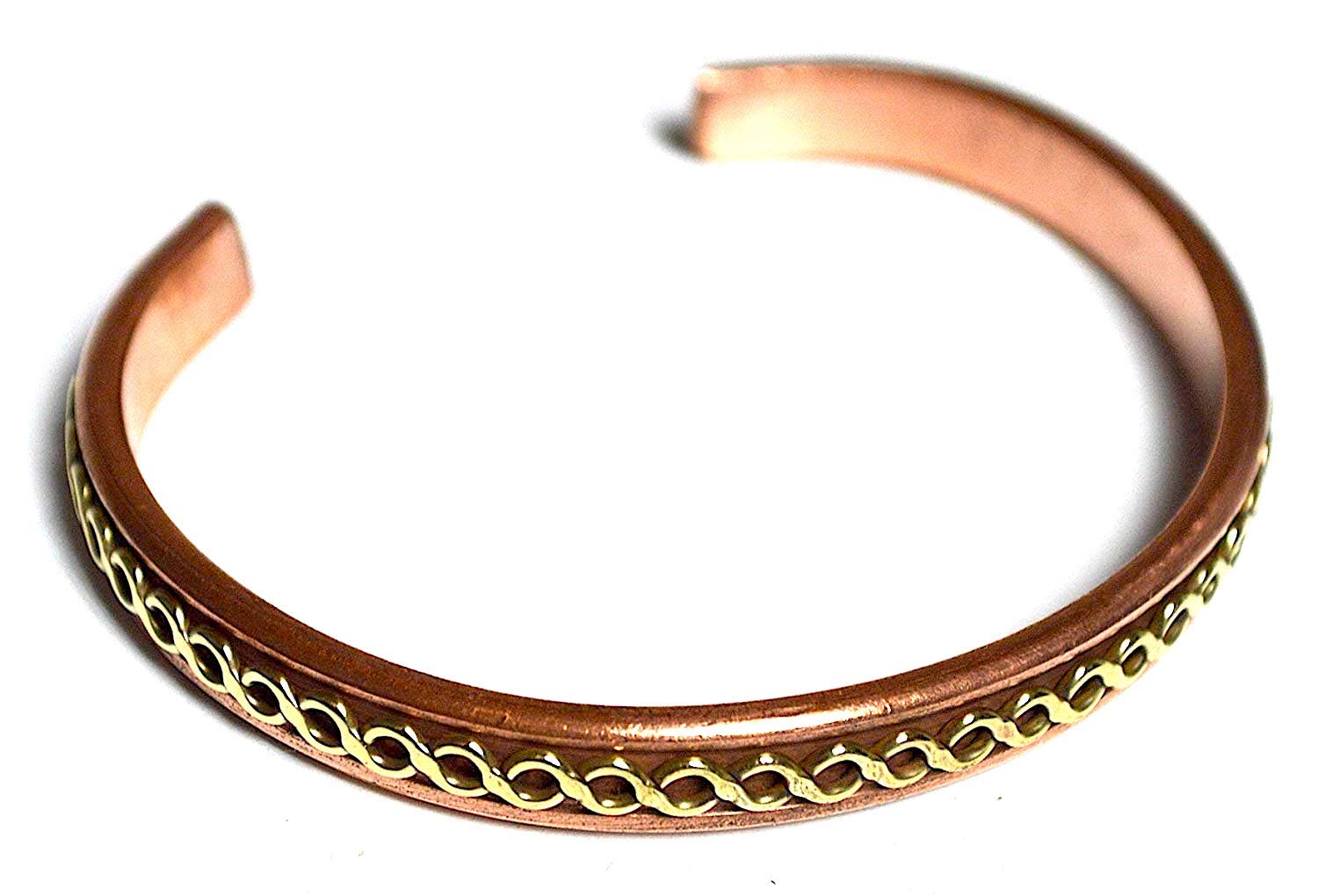 - Embrace Timeless Elegance with Our Handmade Copper Brass Cuff Bangle Bracelet! This exquisite bracelet is meticulously handcrafted using Astadhatu, a traditional mix of 8 metals, featuring a stunning golden tone finish. Designed for durability and style, this 8mm thick cuff bangle adds a touch of sophistication to any outfit. Perfect for those born under the Taurus sun sign and those influenced by the Virgo astrological sign, this bracelet is associated with the Root Chakra, promoting ground