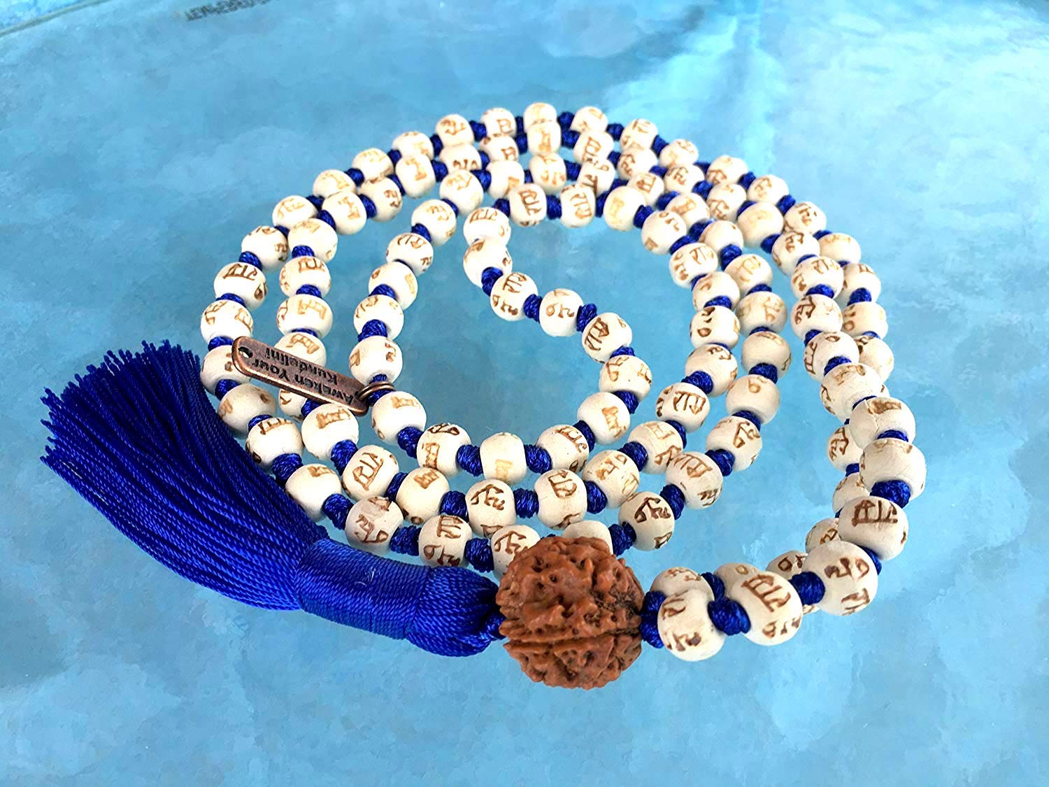 - Hand Knotted in USA. Product Specifications: Material: 8mm Tulsi beads, 5 Mukhi Rudraksha as Guru or Meru Bead Length: Standard mala length with 108 beads Chakras: Heart Chakra (Tulsi) and Sacral Chakra (Rudraksha) Packaging: Securely packaged to ensure safe delivery