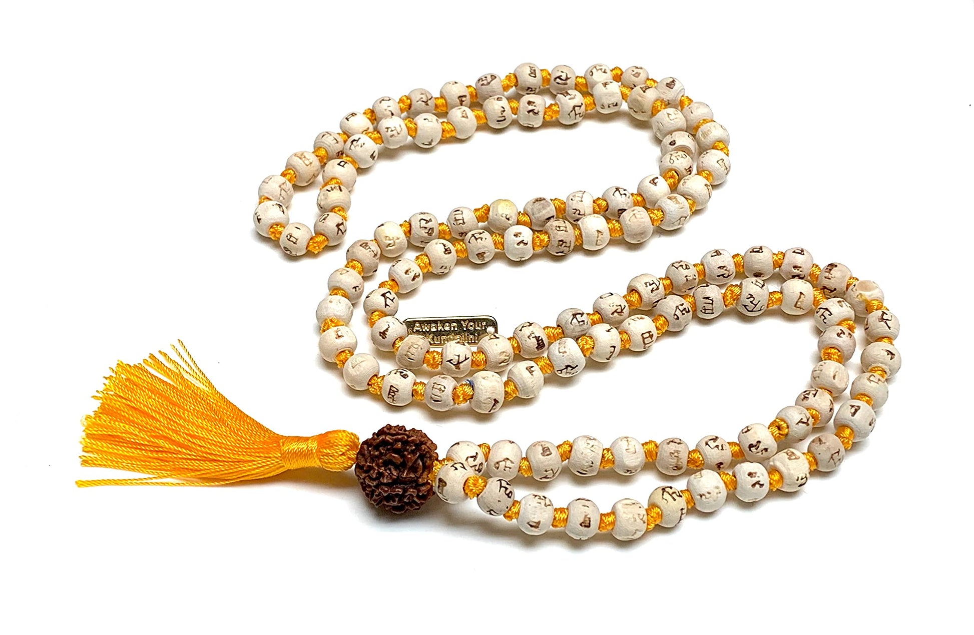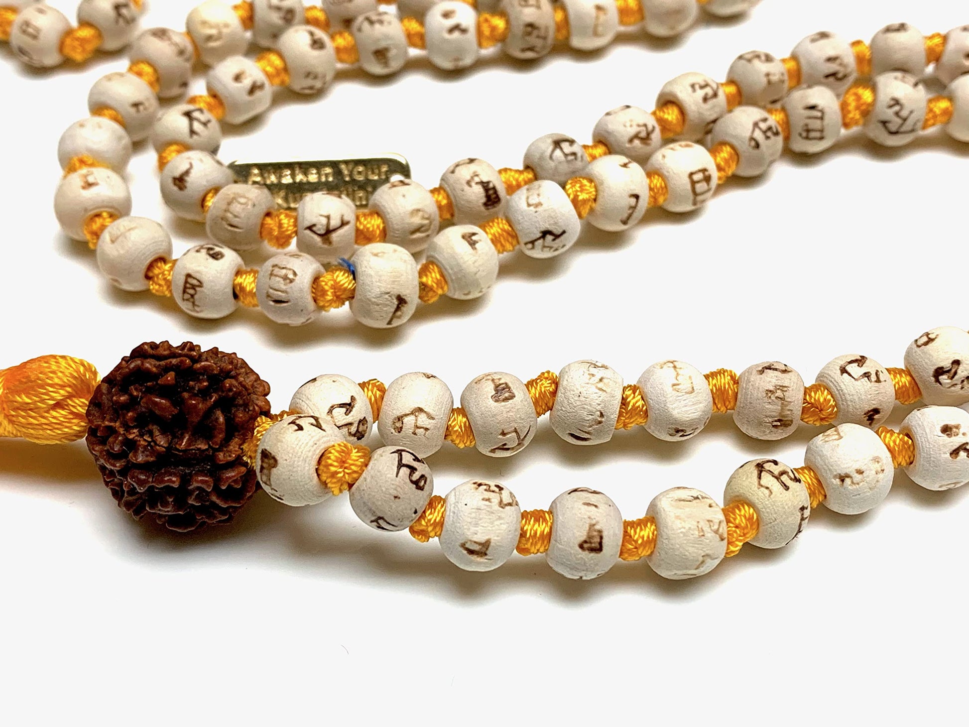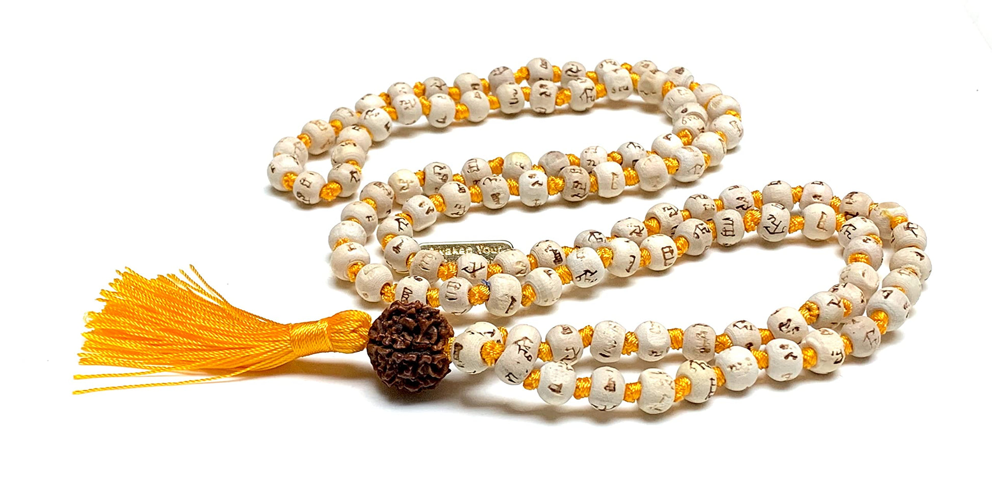 - Hand Knotted in USA. Product Specifications: Material: 8mm Tulsi beads, 5 Mukhi Rudraksha as Guru or Meru Bead Length: Standard mala length with 108 beads Chakras: Heart Chakra (Tulsi) and Sacral Chakra (Rudraksha) Packaging: Securely packaged to ensure safe delivery