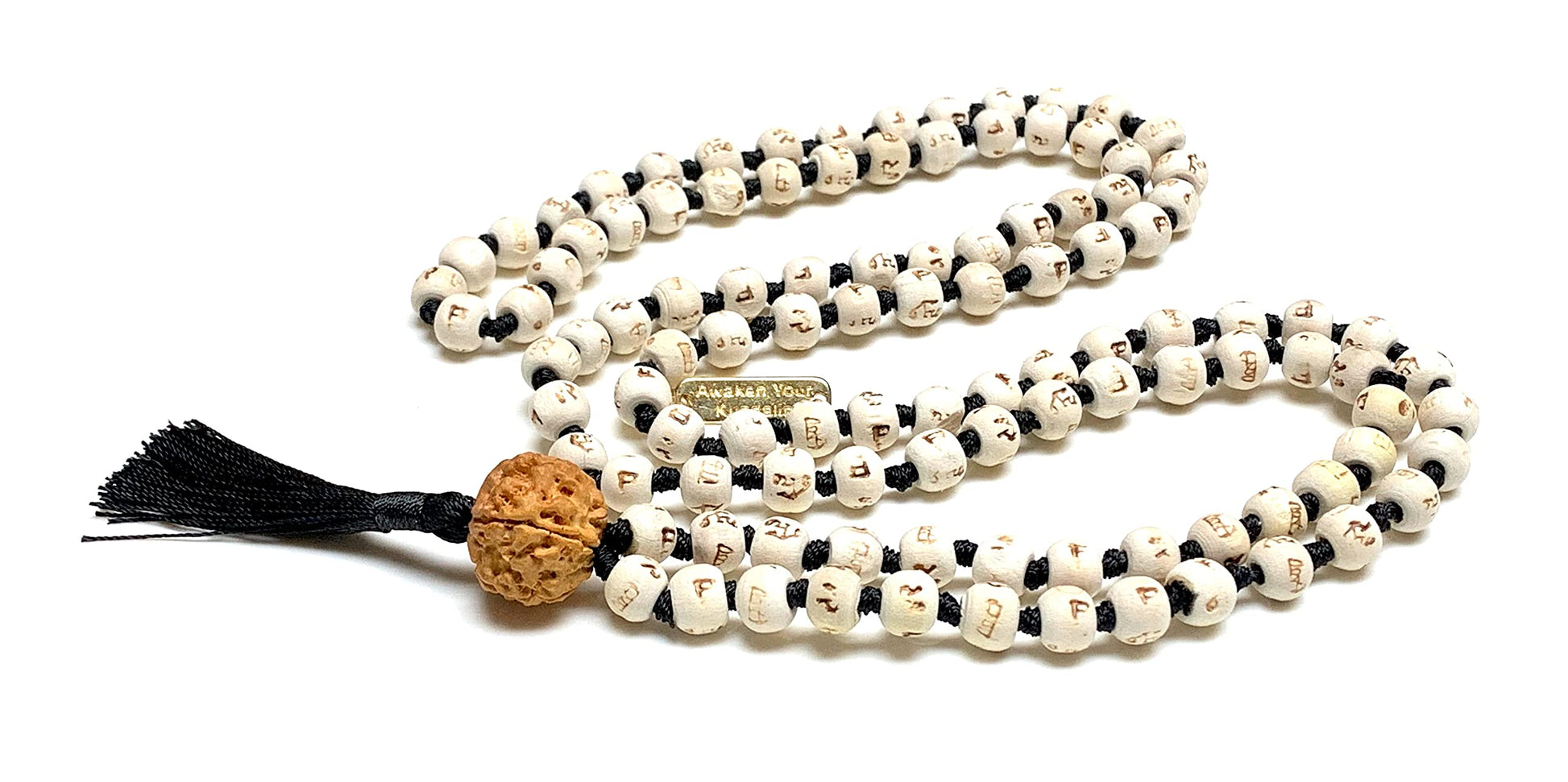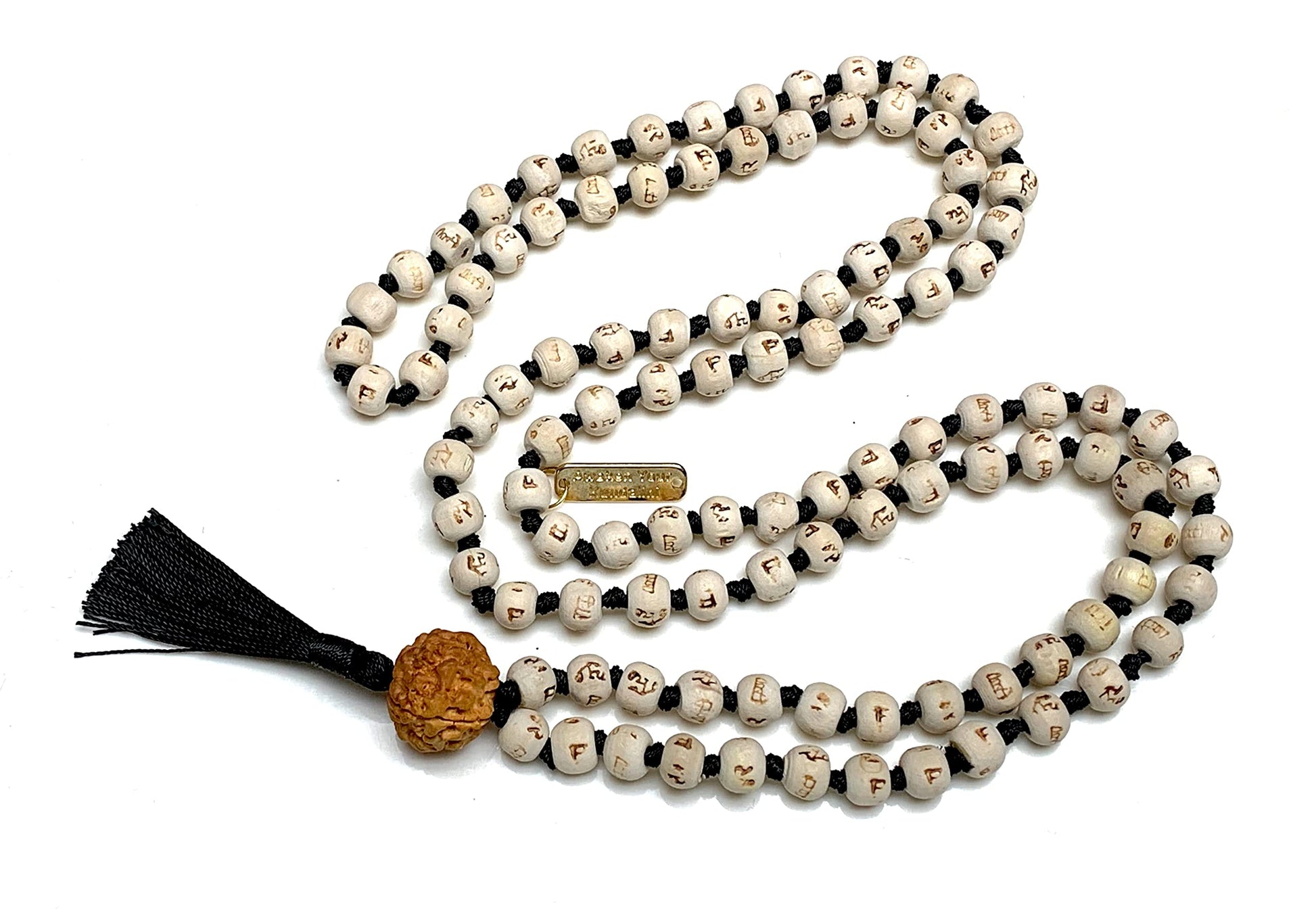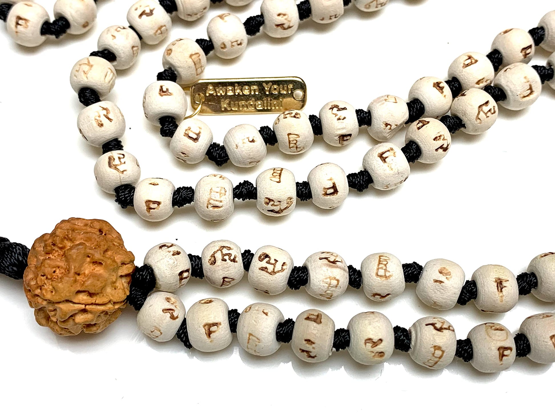 AWAKEN YOUR KUNDALINI Spiritual Harmony Tulsi Mala Necklace with 5 Mukhi Rudraksha - Cancerian Birthstone - Heart & Sacral Chakra Balance