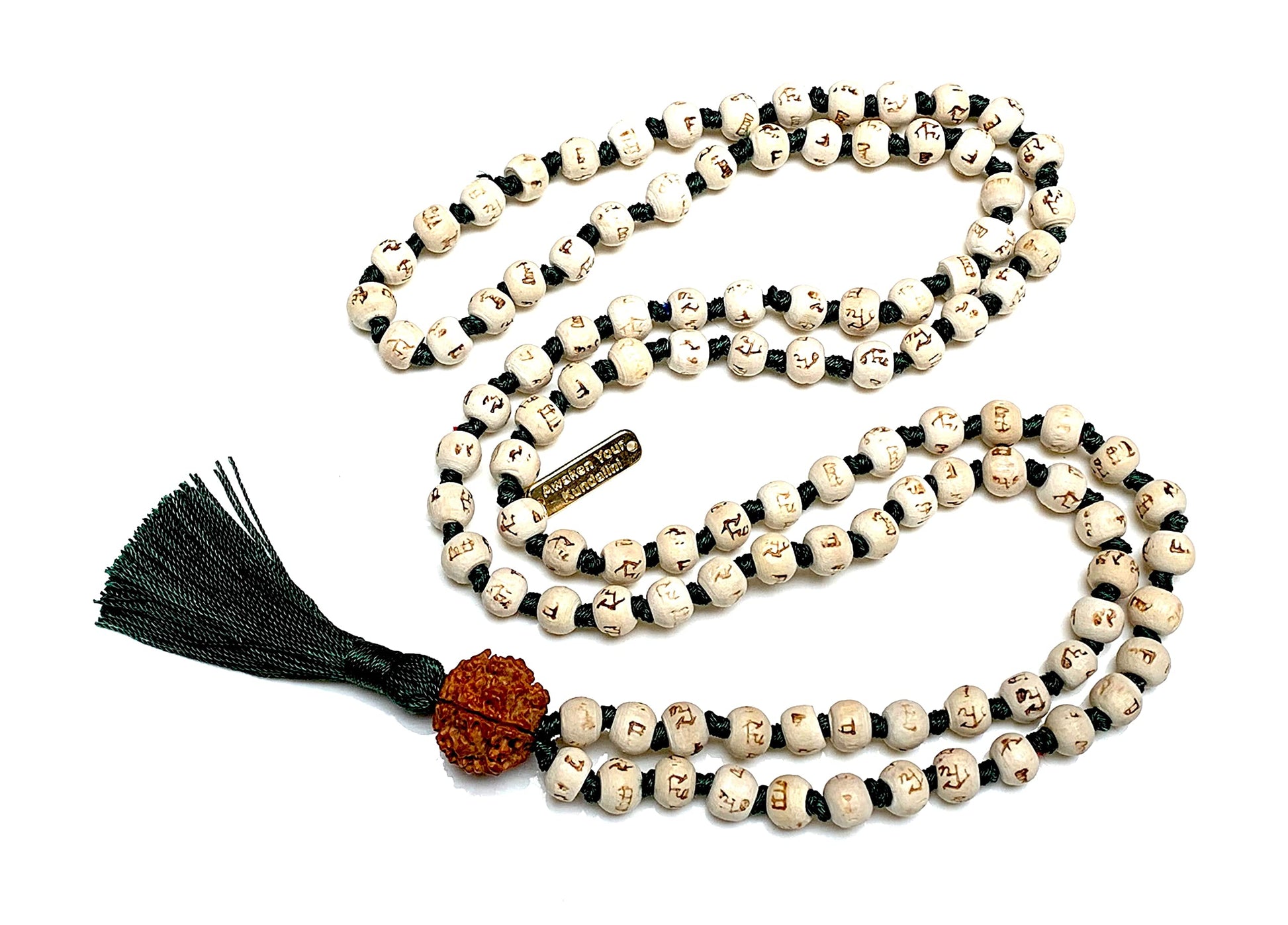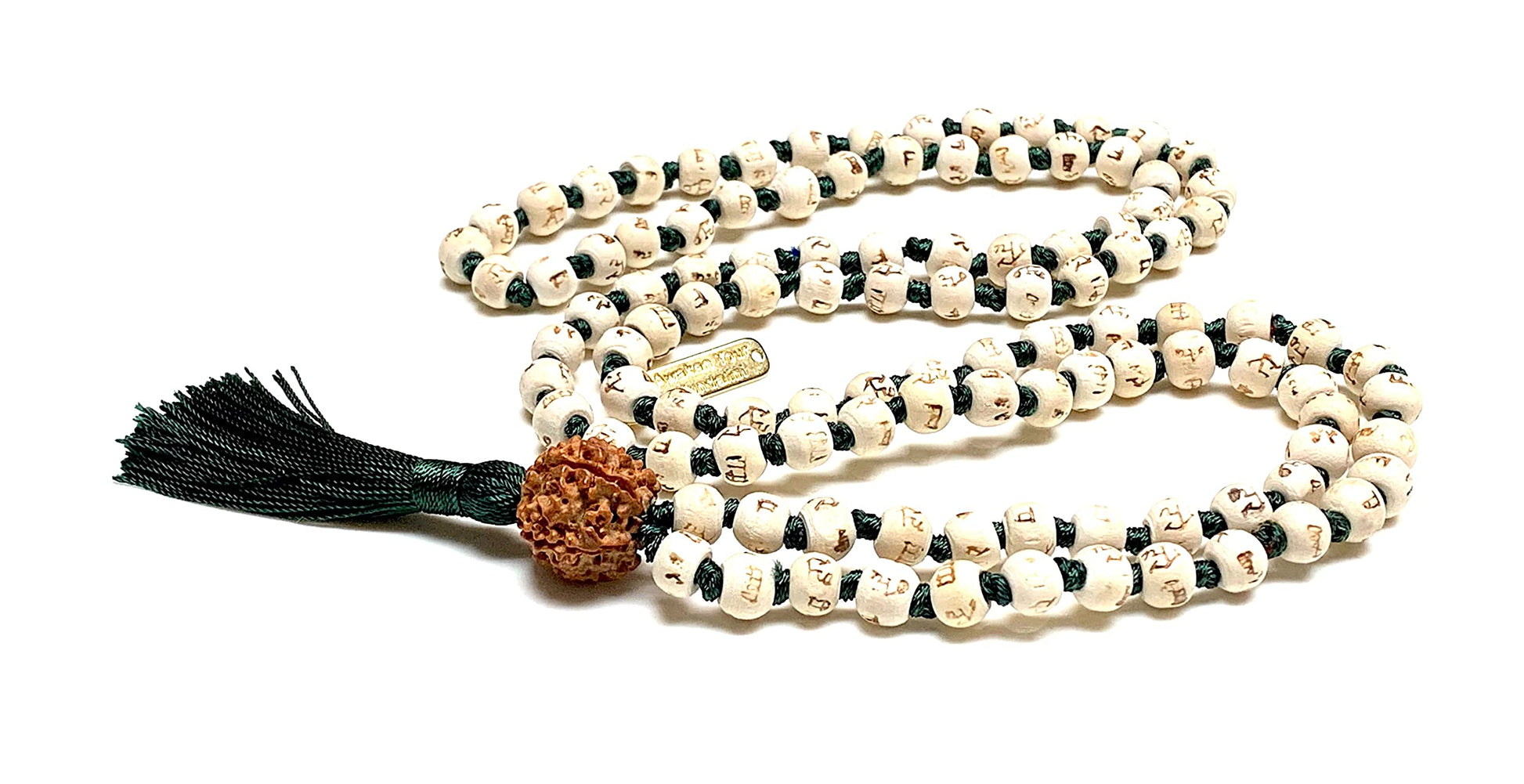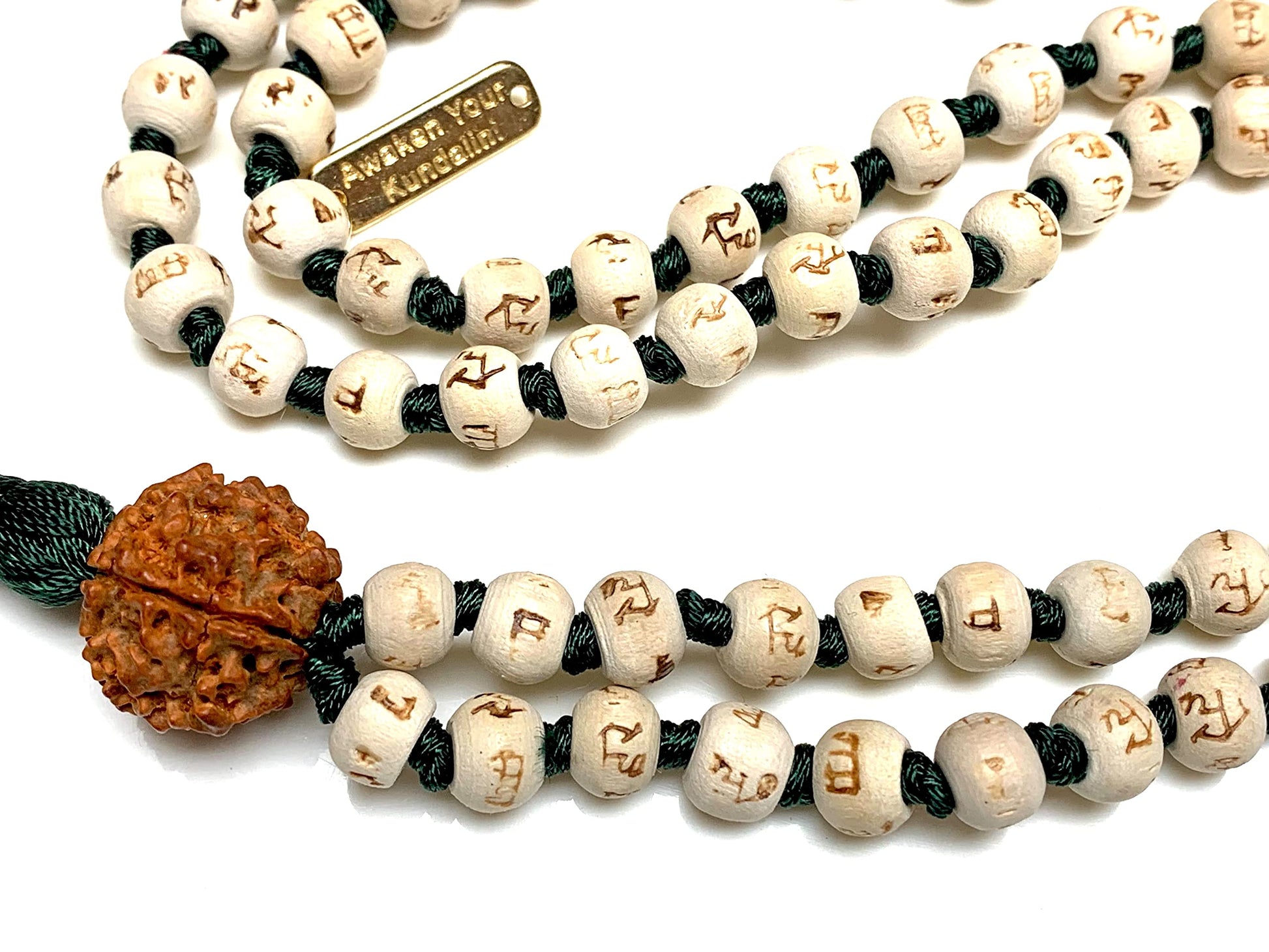 - Hand Knotted in USA. Product Specifications: Material: 8mm Tulsi beads, 5 Mukhi Rudraksha as Guru or Meru Bead Length: Standard mala length with 108 beads Chakras: Heart Chakra (Tulsi) and Sacral Chakra (Rudraksha) Packaging: Securely packaged to ensure safe delivery