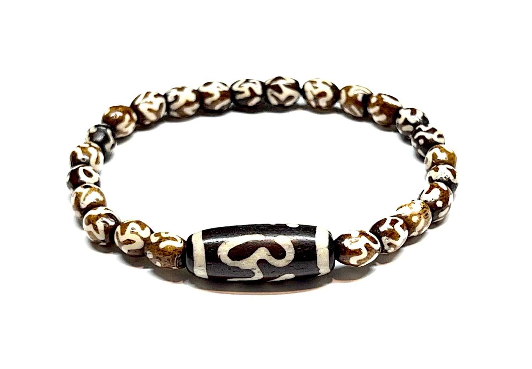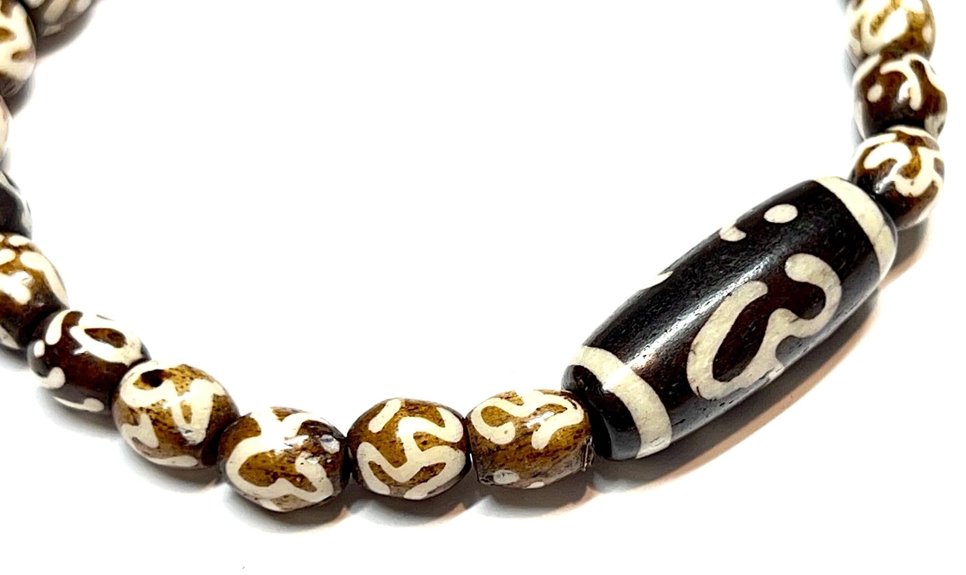 Tibetan Yak Bone Om Healing Bracelet - Chakra Alignment & Balancing (Style-5 Wrist size 6.5"-7.5"; Bead size 6-14 mm)