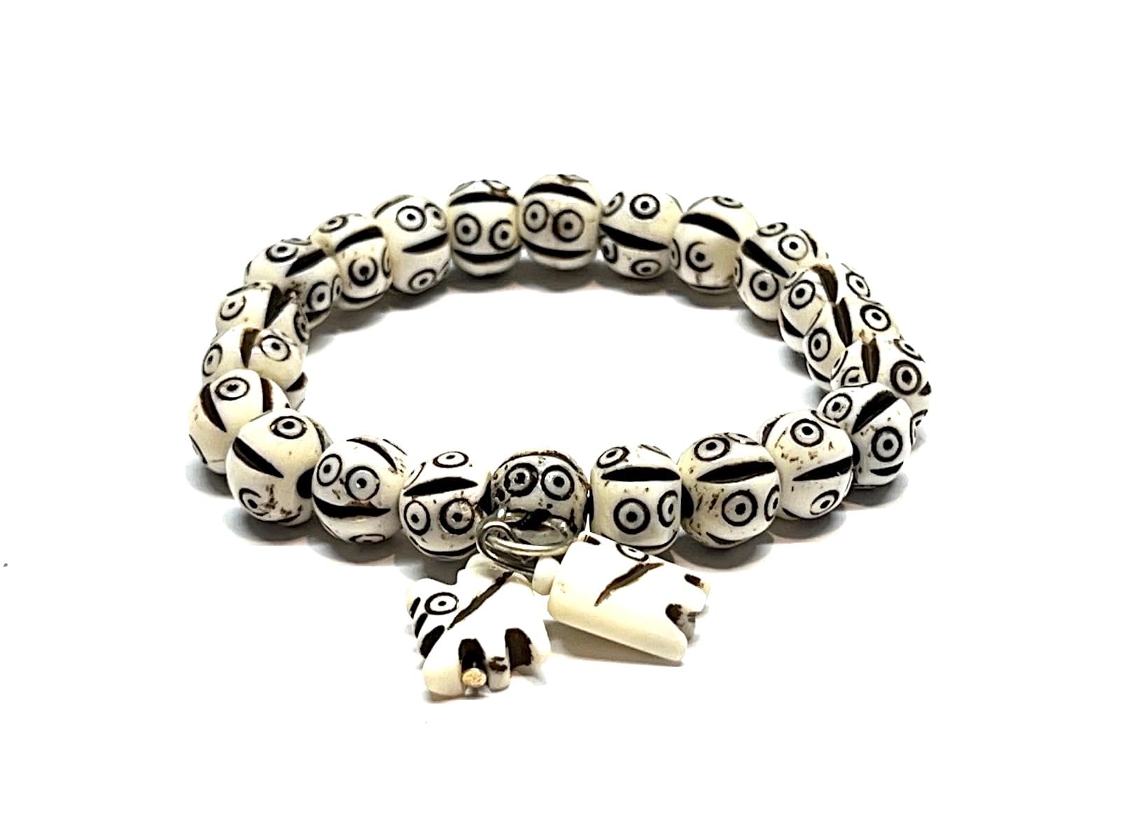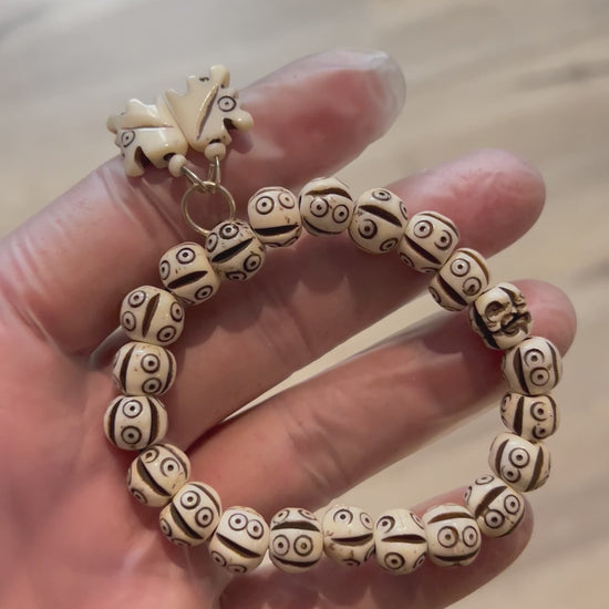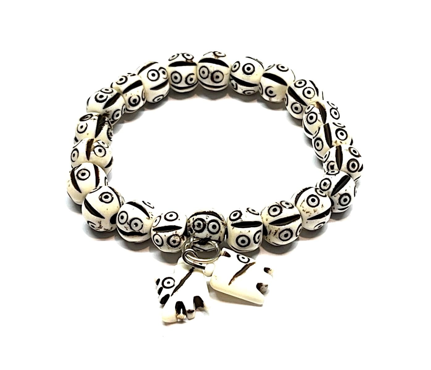 - Handmade in India. Imagine the feeling of serenity washing over you as you wear this bracelet. The cool, smooth beads gently caress your skin, promoting a sense of peace and well-being. This isn't just a bracelet, it's a symbol of harmony! Genuine Yak Bone: Experience the cultural significance and natural beauty of this unique material. Handmade Quality: Each bead is meticulously crafted for a one-of-a-kind piece. "Om" Symbol: A powerful mantra representing the universe and inner peace.