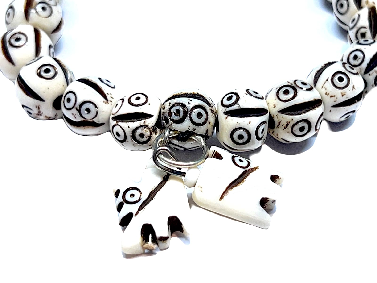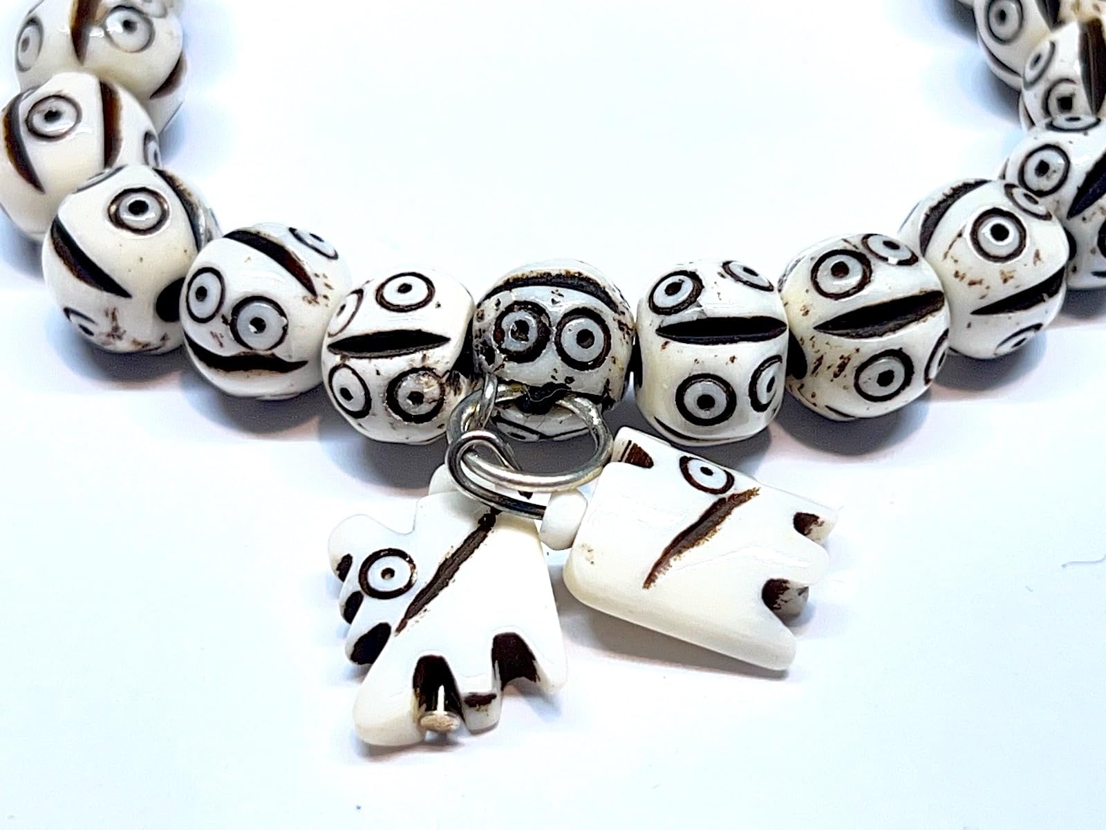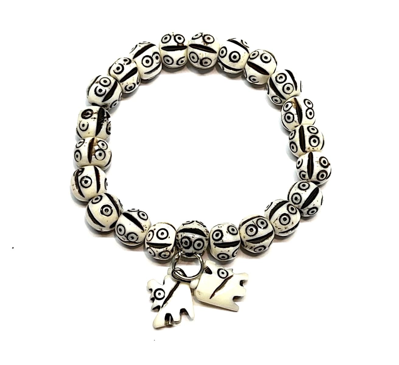 - Handmade in India. Imagine the feeling of serenity washing over you as you wear this bracelet. The cool, smooth beads gently caress your skin, promoting a sense of peace and well-being. This isn't just a bracelet, it's a symbol of harmony! Genuine Yak Bone: Experience the cultural significance and natural beauty of this unique material. Handmade Quality: Each bead is meticulously crafted for a one-of-a-kind piece. "Om" Symbol: A powerful mantra representing the universe and inner peace.