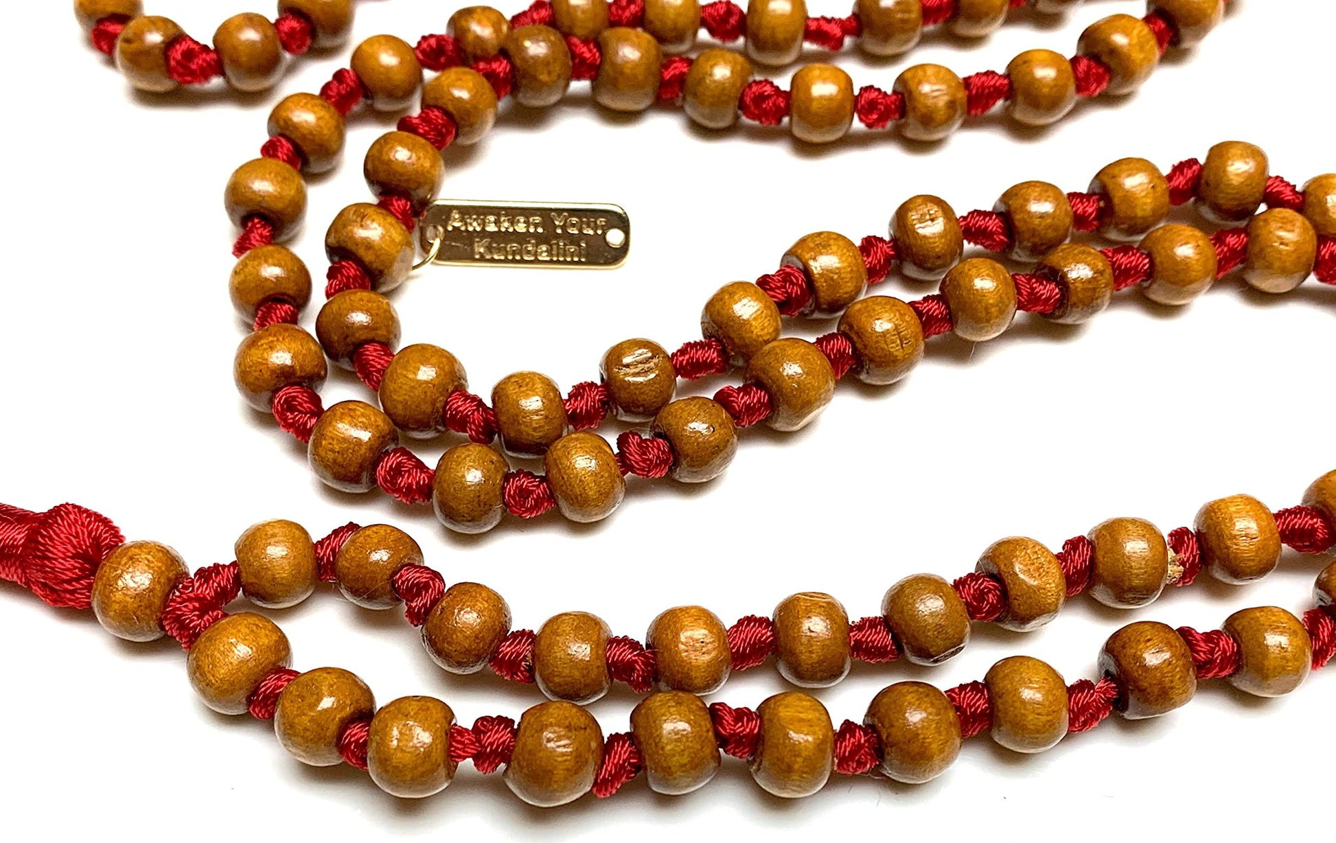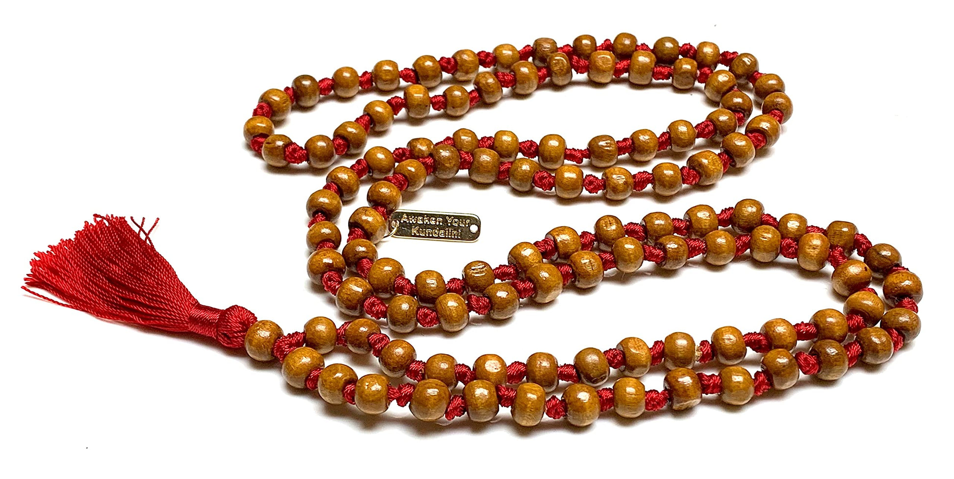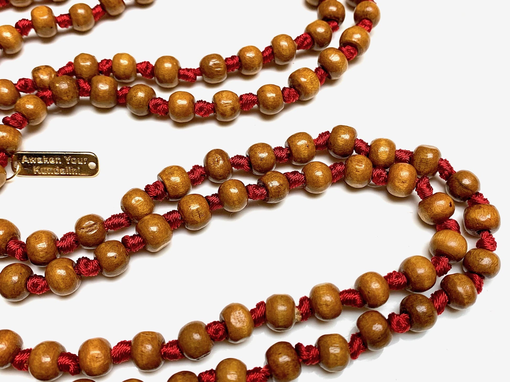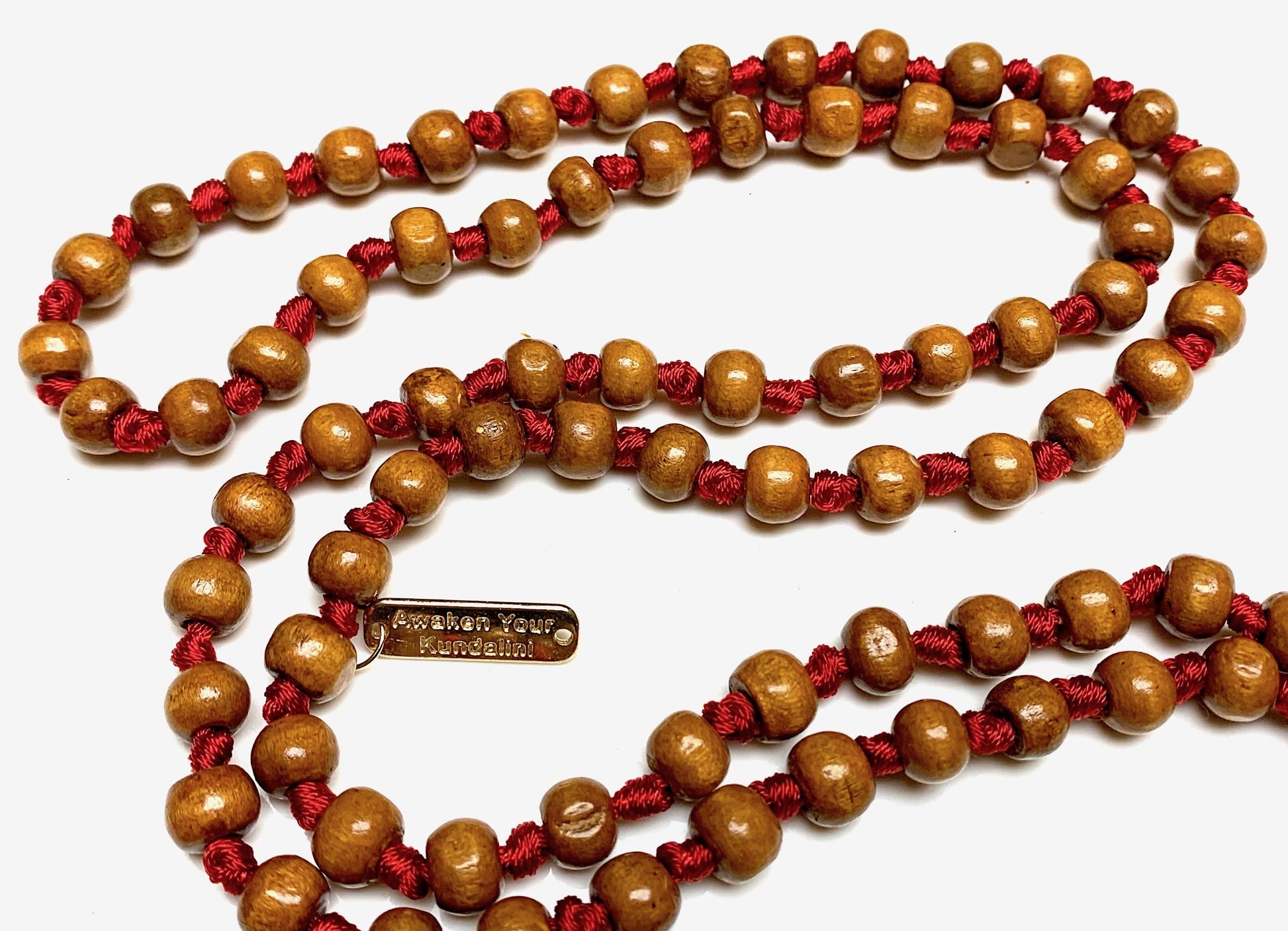 Awaken Your Kundalini Tulsi mala beads necklace hand knotted mala holy basil beads 8 mm 108 Buddhist prayer beads 7 Chakra mala colors - w/Velvet mala pouch (FIRST ROOT CHAKRA)