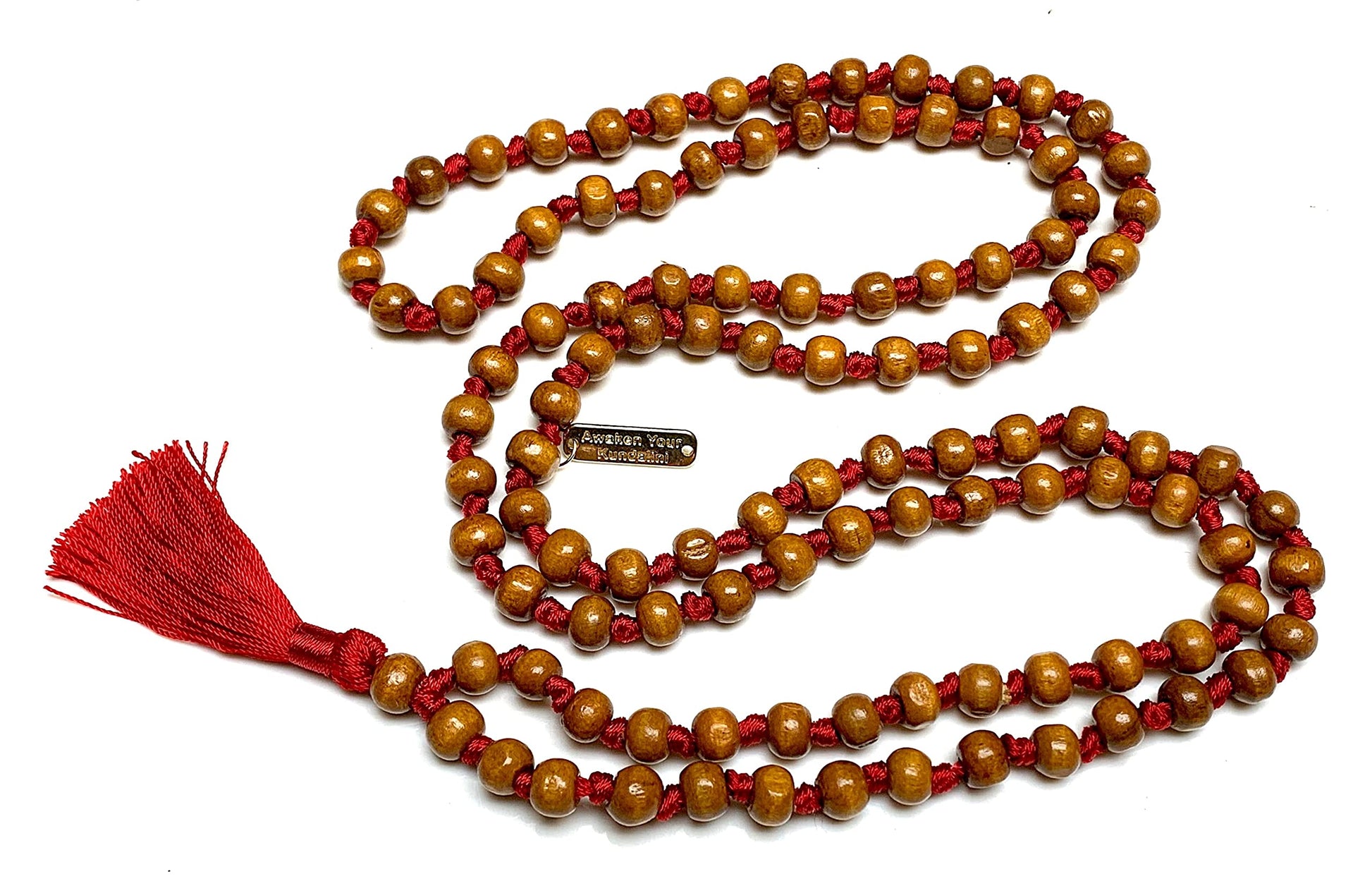 - Experience the elegance and spiritual significance of our Hand Knotted Tulsi Mala Necklace. Crafted with precision and care, this beautiful necklace features 108 8mm beads made from genuine Tulsi wood. Known for its sacred and calming properties, Tulsi is revered in various traditions and adds a touch of tranquility to your daily wear.