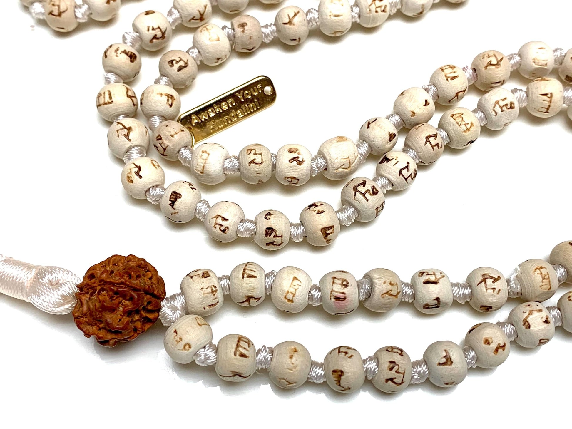 AWAKEN YOUR KUNDALINI Tulsi Rudraksha Mala Necklace - 8mm 108 Prayer Beads Rosary - Spiritual Harmony - White String