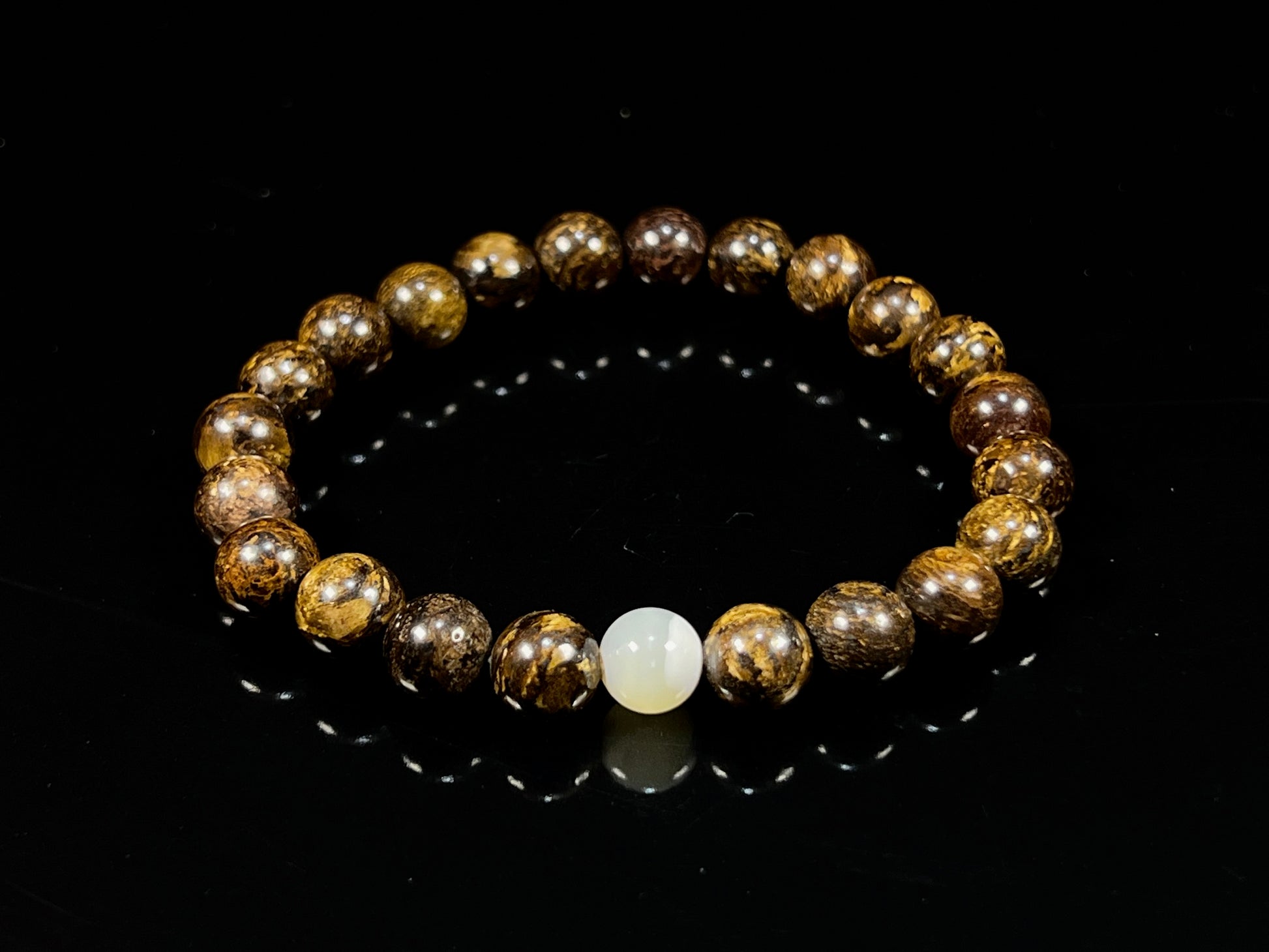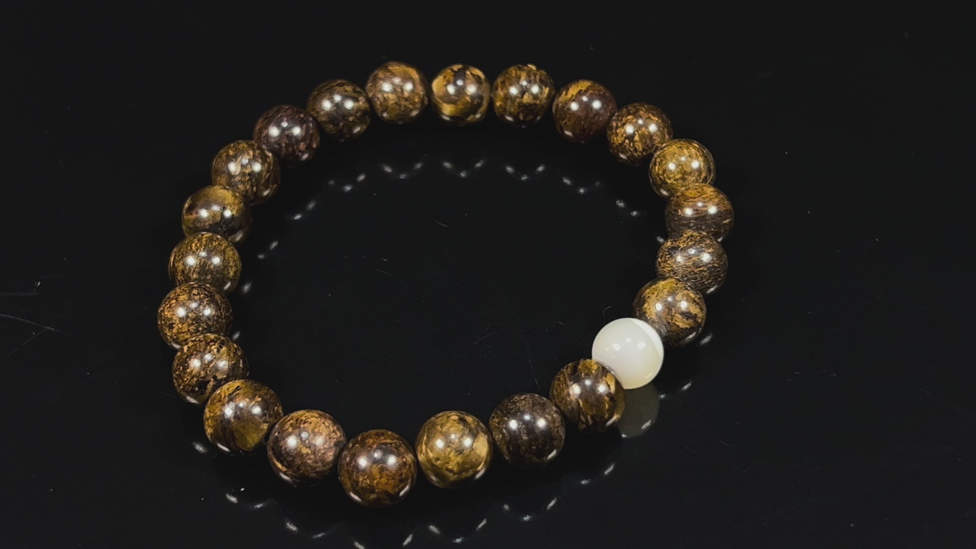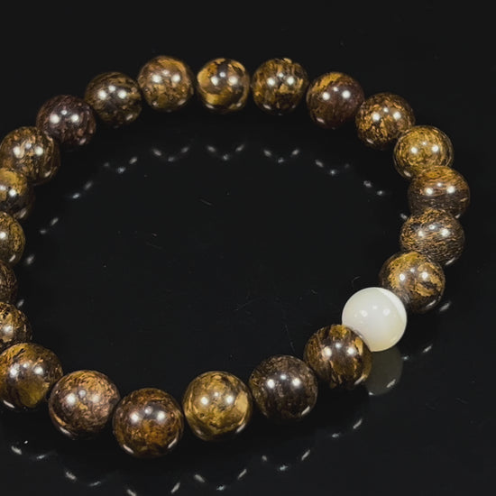 - Balance & Duality: Bronzite and mother of pearl come together in this bracelet, representing the perfect harmony of strength and compassion, determination and intuition. Comfortable & Stylish: The polished 8mm beads create a beautiful and eye-catching piece, perfect for everyday wear or stacking with other bracelets. The comfortable stretch design ensures a perfect fit for most wrists.