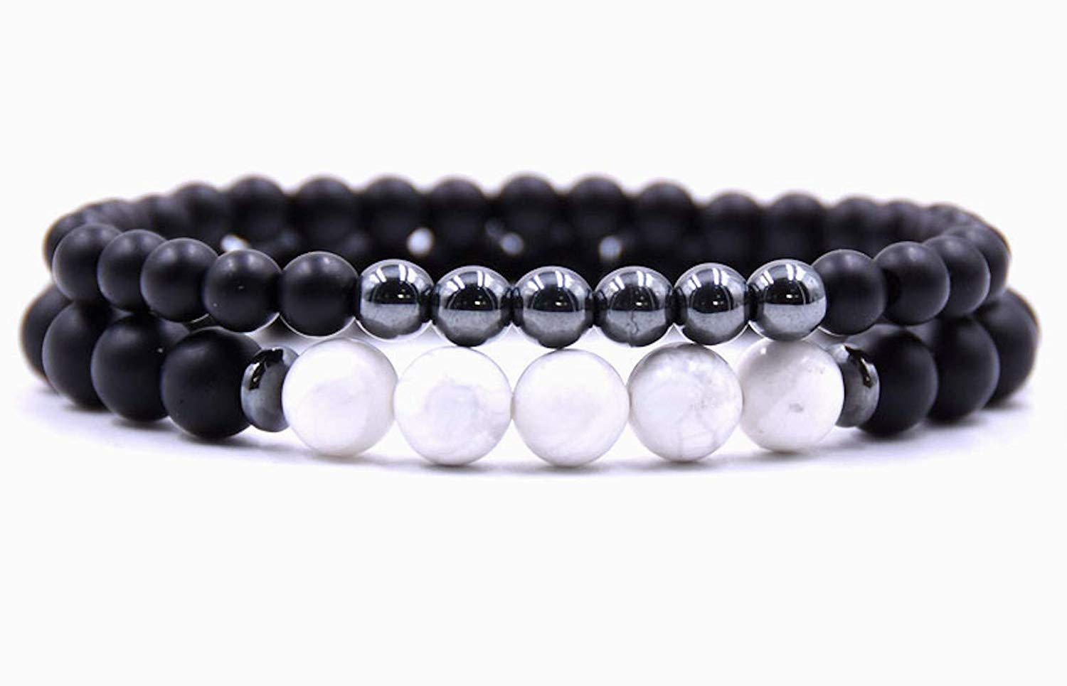 - Key Features: Versatile Design: This 2-piece stretch bracelet set is crafted with a combination of Black Agate, Onyx, Abrazine, Hematite, and Howlite beads, creating a balanced and stylish accessory for any occasion. Dual Bead Sizes: The set features 6mm and 8mm beads, offering a subtle contrast that adds depth and dimension to your wristwear. Comfortable Fit: Designed for a wrist size of approximately 7.25 inches, the bracelets offer a snug yet comfortable fit, perfect for daily wear.