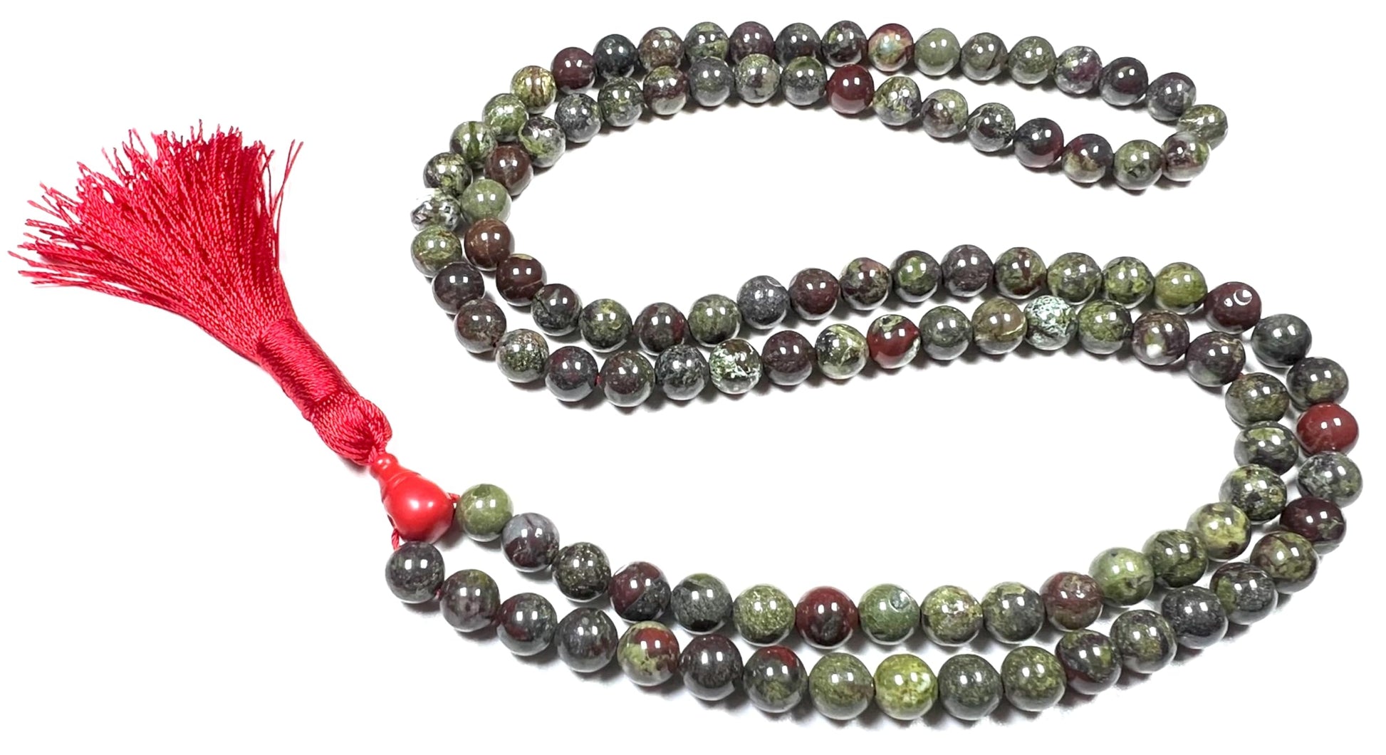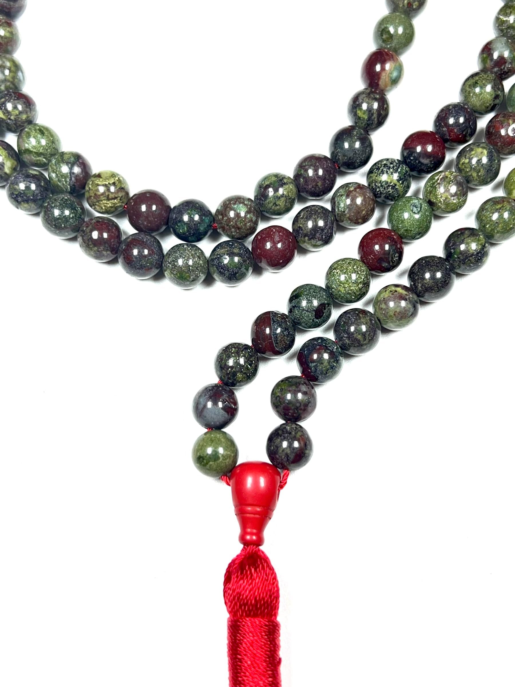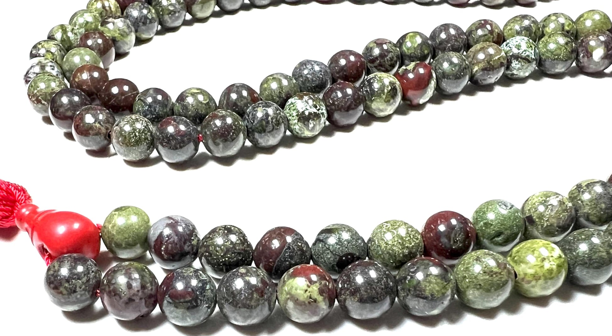 Bloodstone Jasper Mala Beads Necklace | 8mm | 108 Beads | Warrior’s Mala | Aries Birthstone & Root Chakra