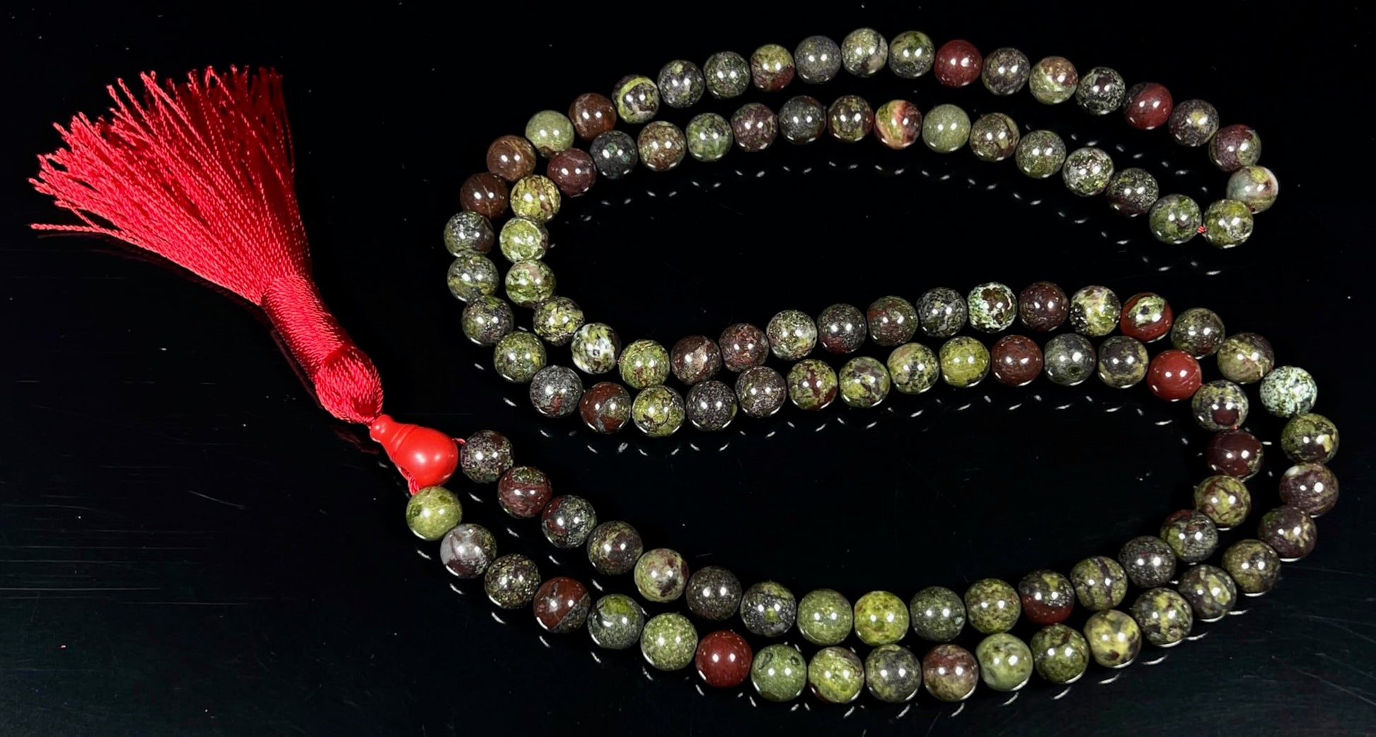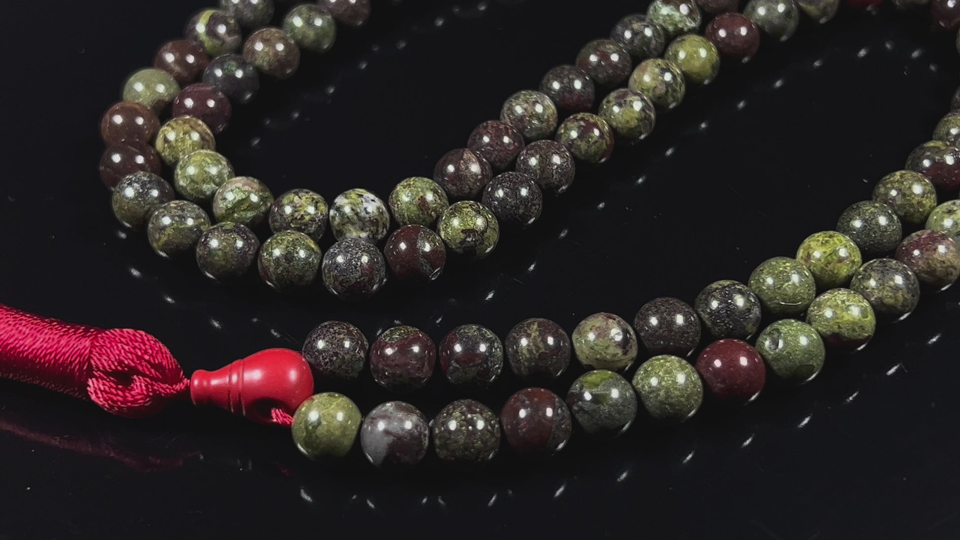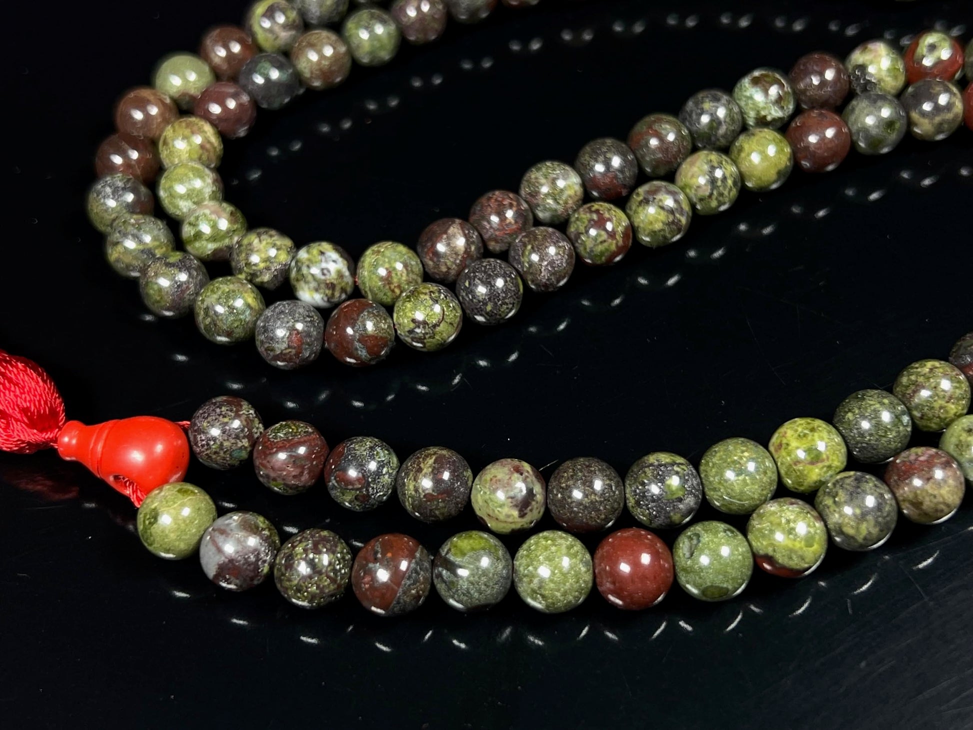 Bloodstone Jasper Mala Beads Necklace | 8mm | 108 Beads | Warrior’s Mala | Aries Birthstone & Root Chakra