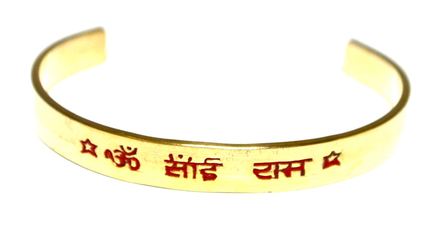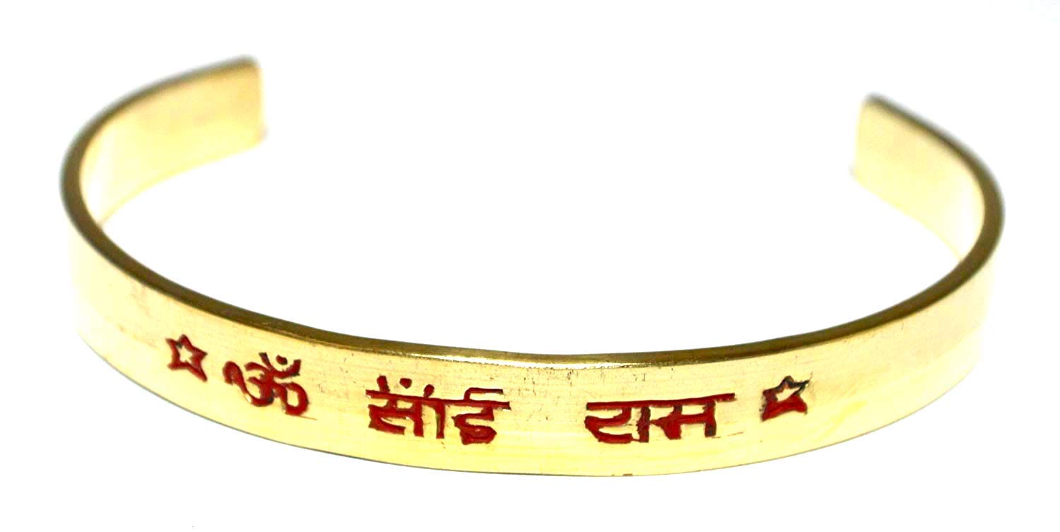 - Handmade in India. Expertly crafted from high-quality brass, ensuring durability and a classic appearance that endures. Om Sai Ram Inscription: The intricately engraved mantra adds a touch of spirituality and cultural heritage, perfect for those who appreciate meaningful jewelry. Adjustable Fit: Designed with an adjustable band to provide a comfortable and secure fit for any wrist size.