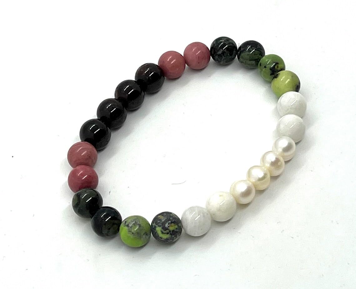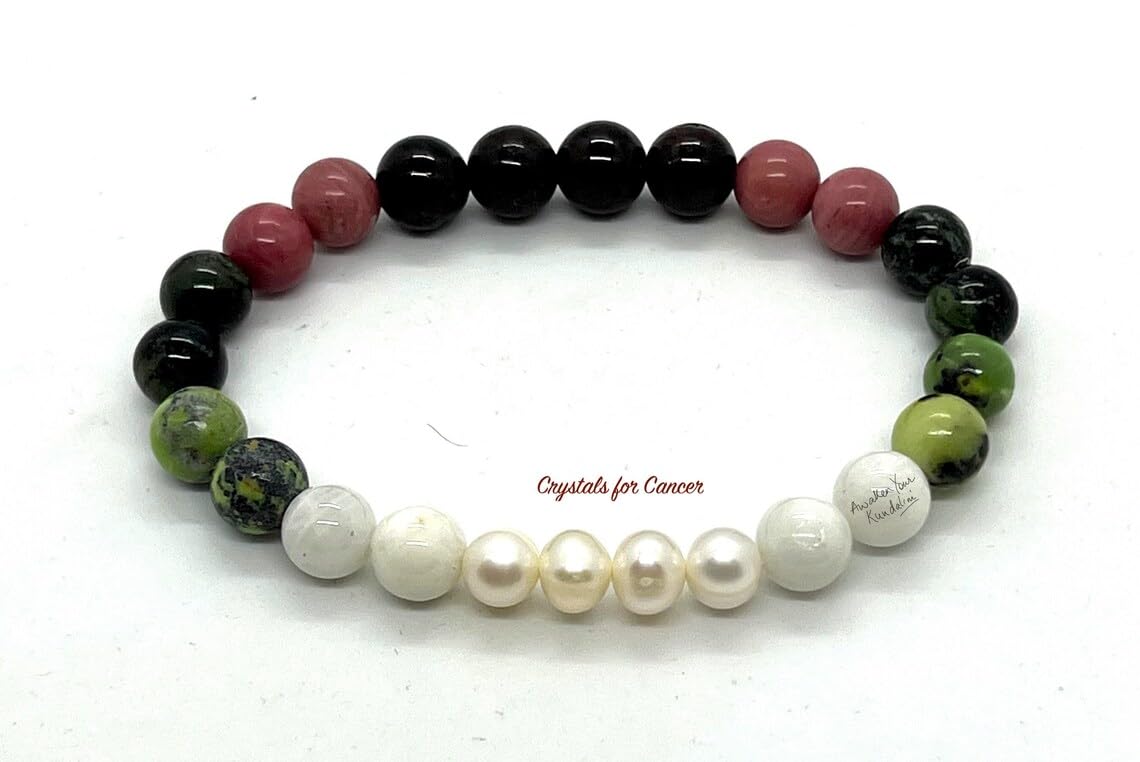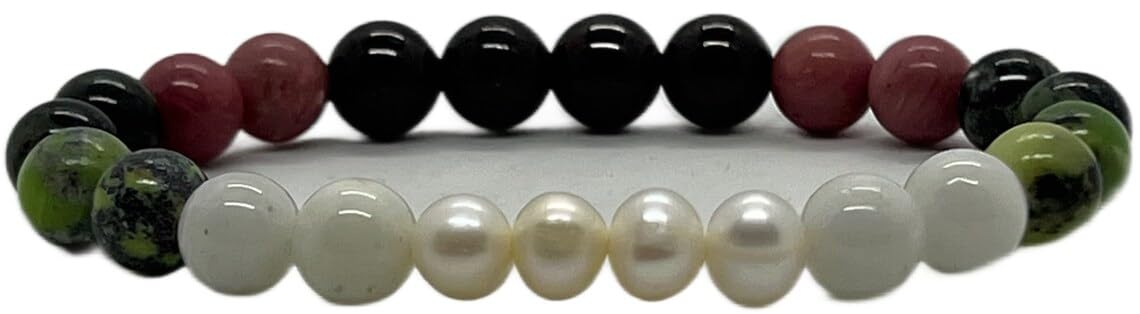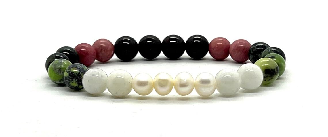 - The Perfect Gift: A thoughtful present for a Cancer friend or loved one seeking emotional balance, or embarking on a new chapter in life. Product Specifications: Gemstones: Pearl, Moonstone, Chrysophase, Red Jasper, Rhodonite, Black Onyx Bead Size: 8mm Wrist Size: Approximately 7.5 inches Material: Stretch Cord Style: Stretch Bracelet