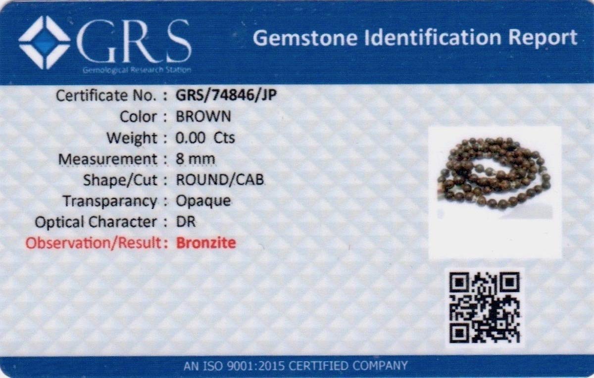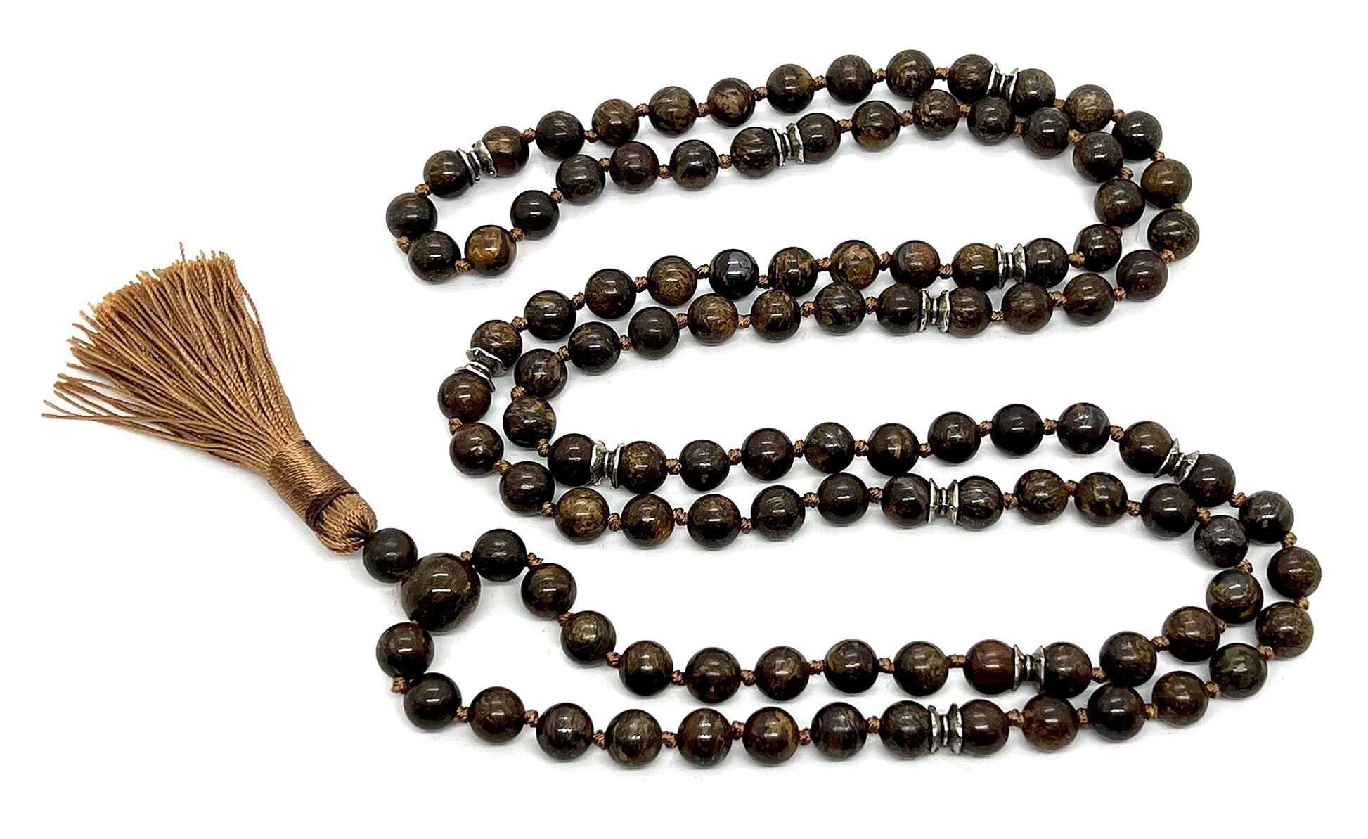 - GEMSTONE BEADS IN MALA - Main Gemstone: BRONZITE ; Associated Chakra: Fourth Chakra, Heart chakra, anahata chakra; Area of consciousness: astral body; Physical organ association: thymus gland (immune system), and the heart, blood, circulatory system, immune system, and the endocrine system. ; Governs: love, compassion, and unconditional acceptance of others; Related Zodiac Sun sign or Astrology sign: Leo Birthstone. Spacers : Zinc alloy.