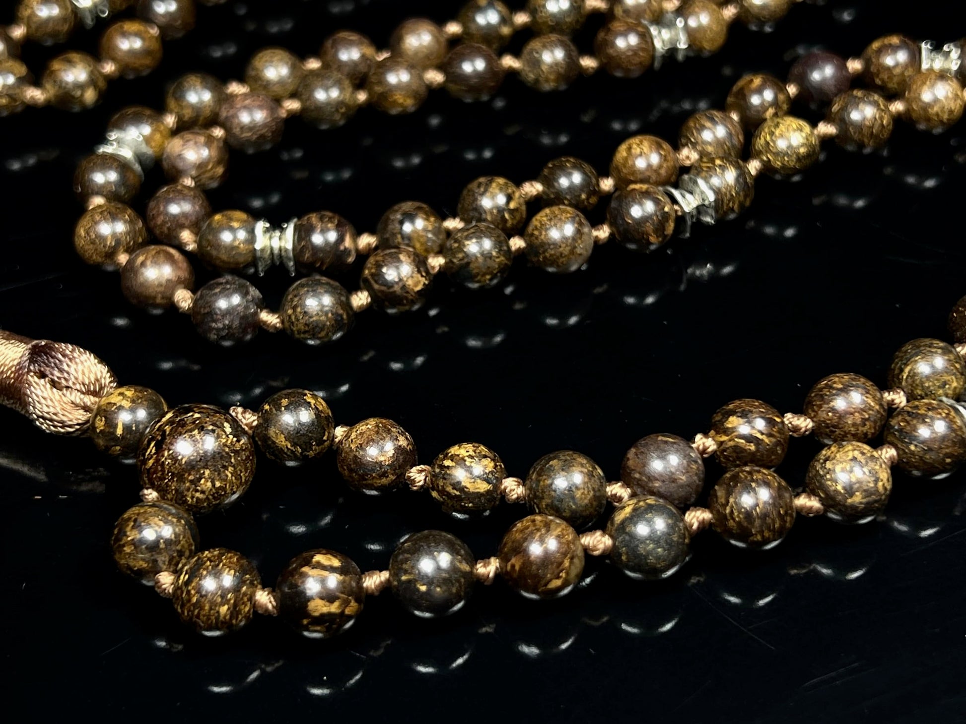 Certified Energized Mala Beads Necklace with COA - Chakra Mala - Japa Mala - 8mm 108 Buddhist Prayer Beads - Meditation Mala - Tassel Necklace – Zodiac/Sun Sign stones (Bronzite)