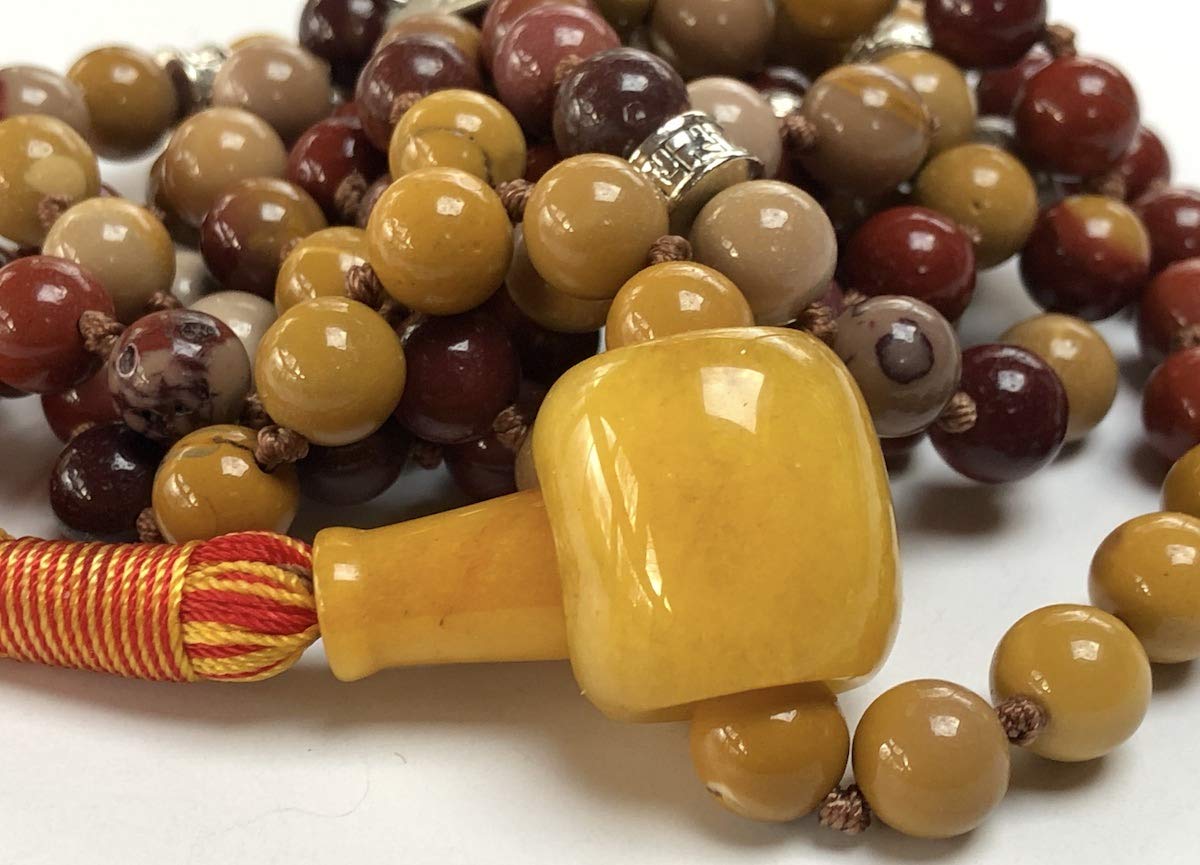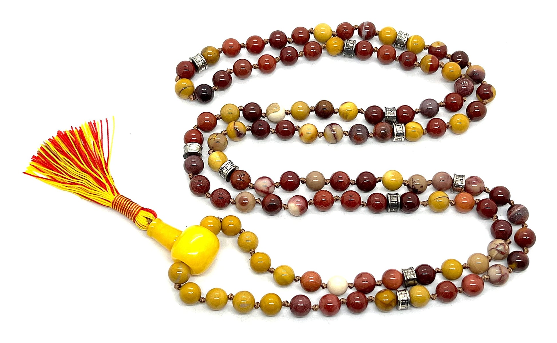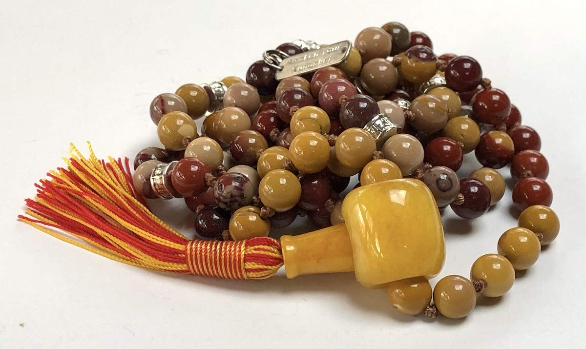 - Authentic Gemstones: We use only genuine Mookaite beads, known for their rich colors and powerful healing energies. Beads Size 8mm; Mala Length: Approx 44-46 Inches.