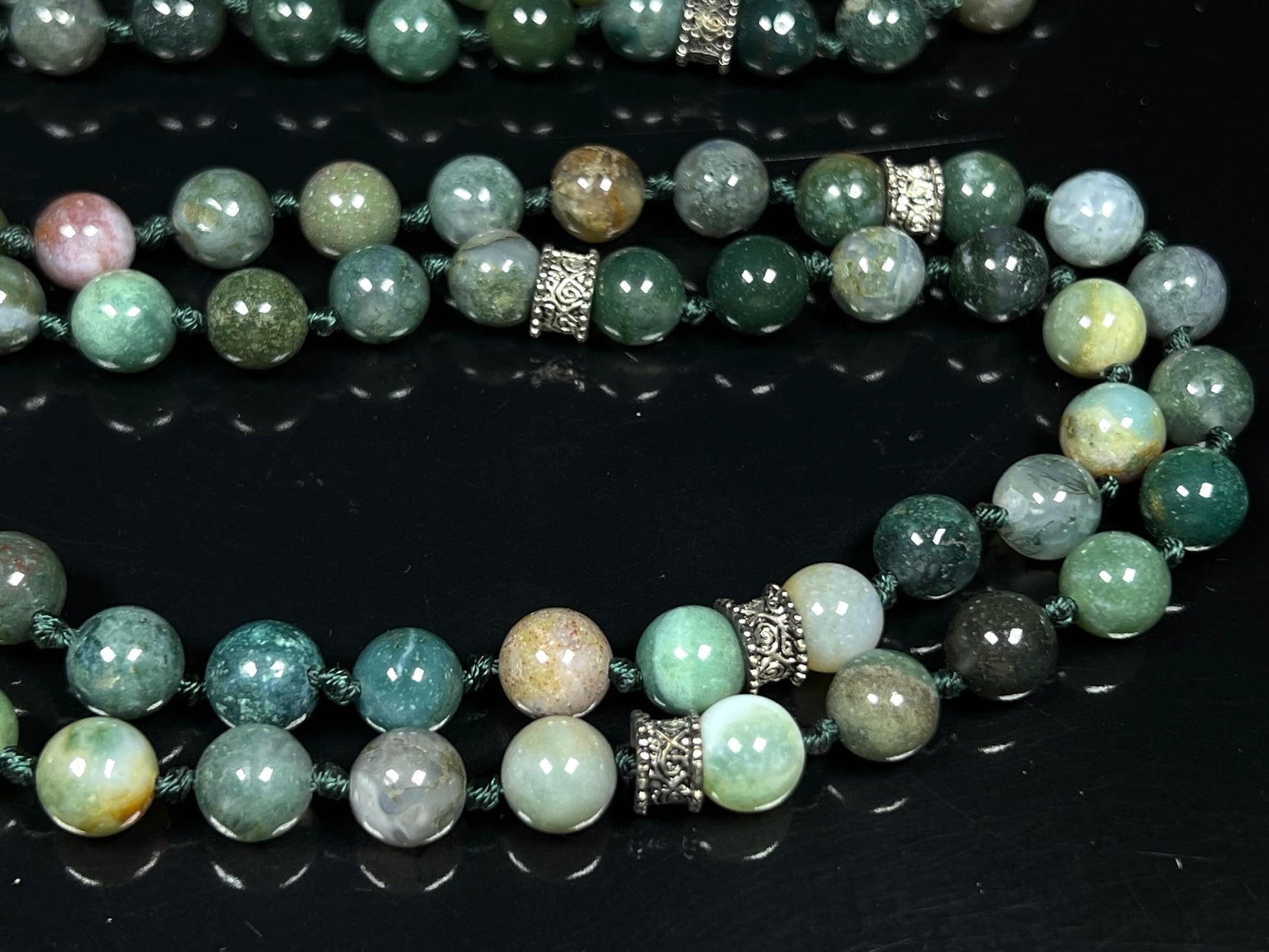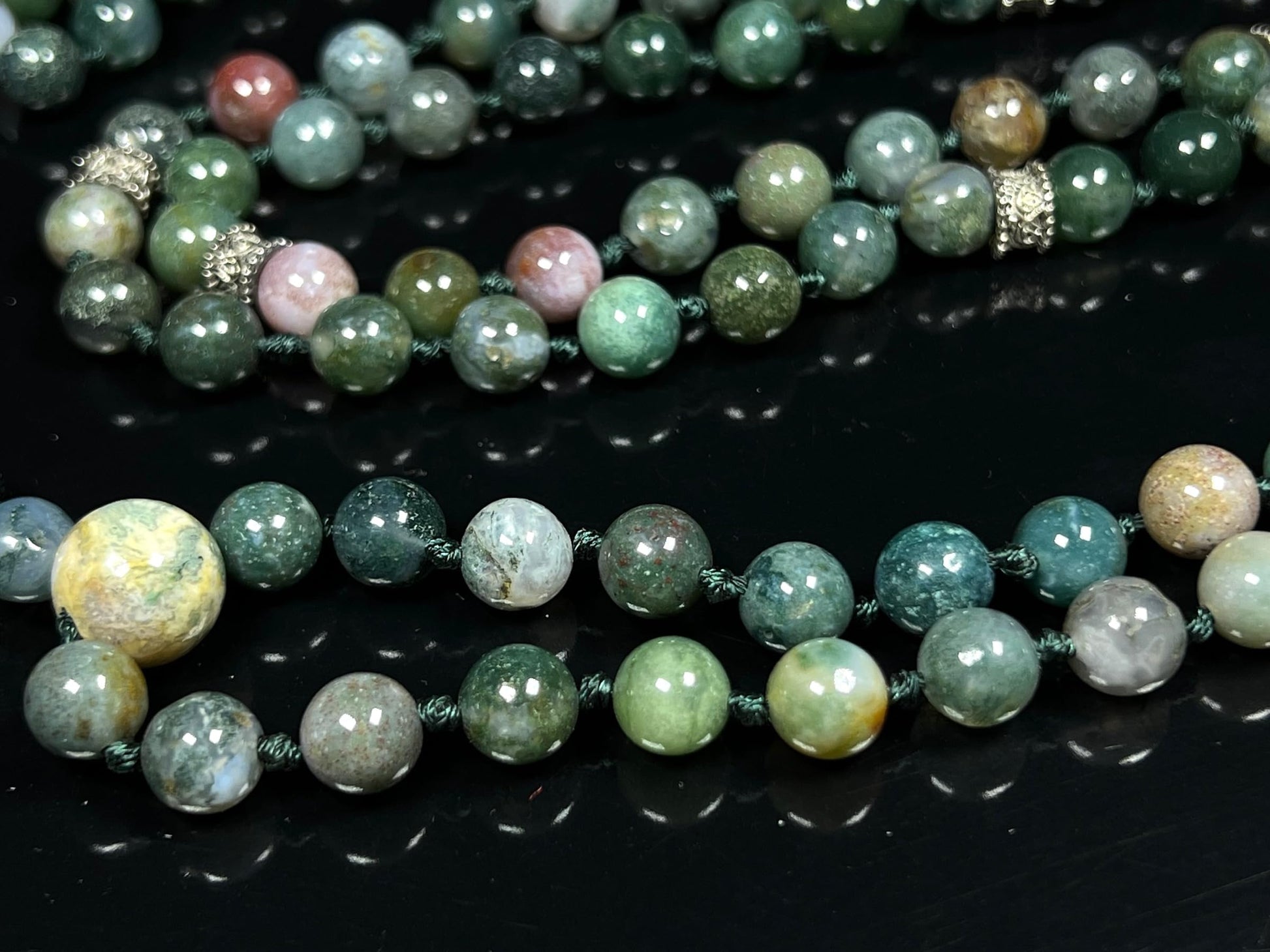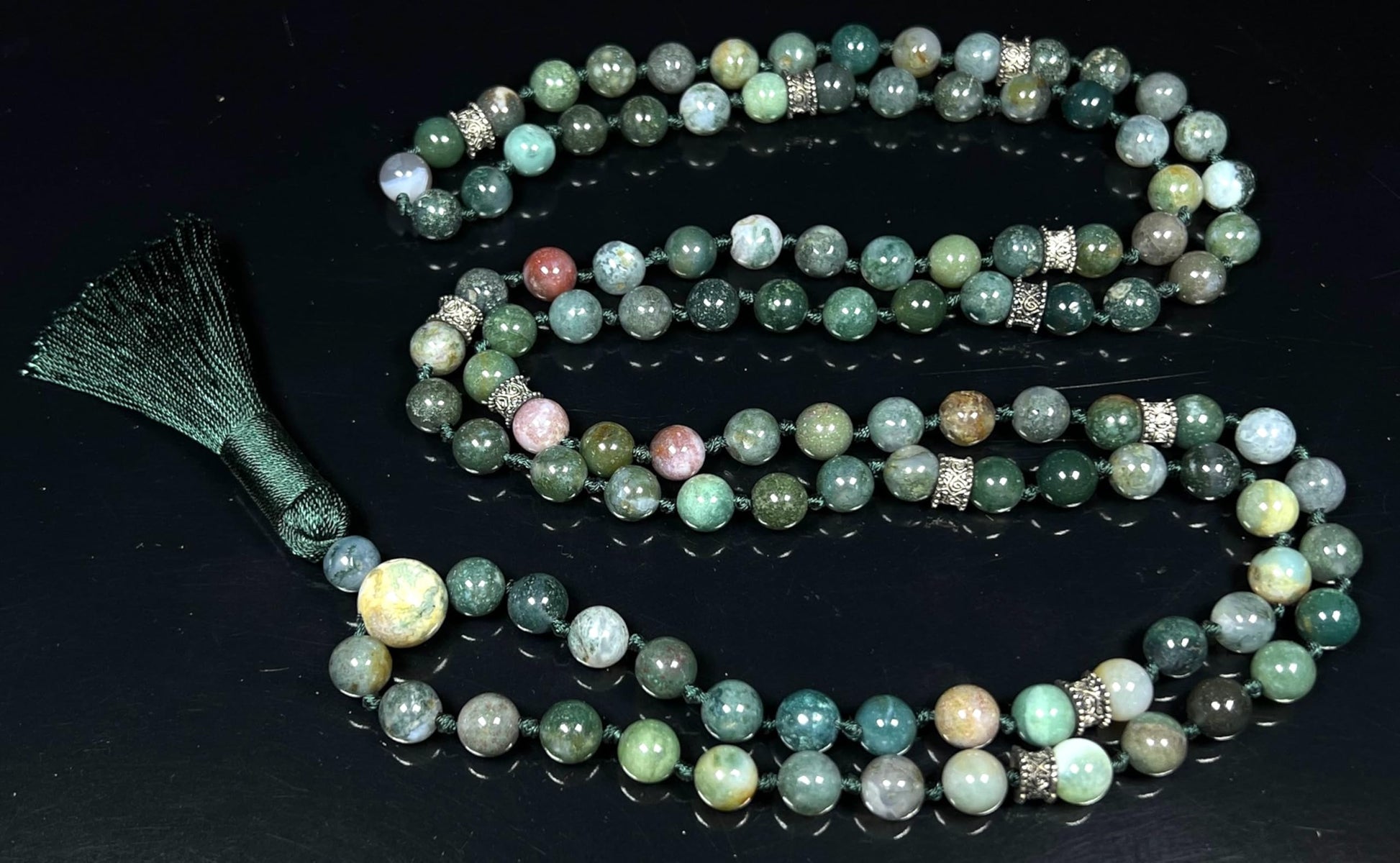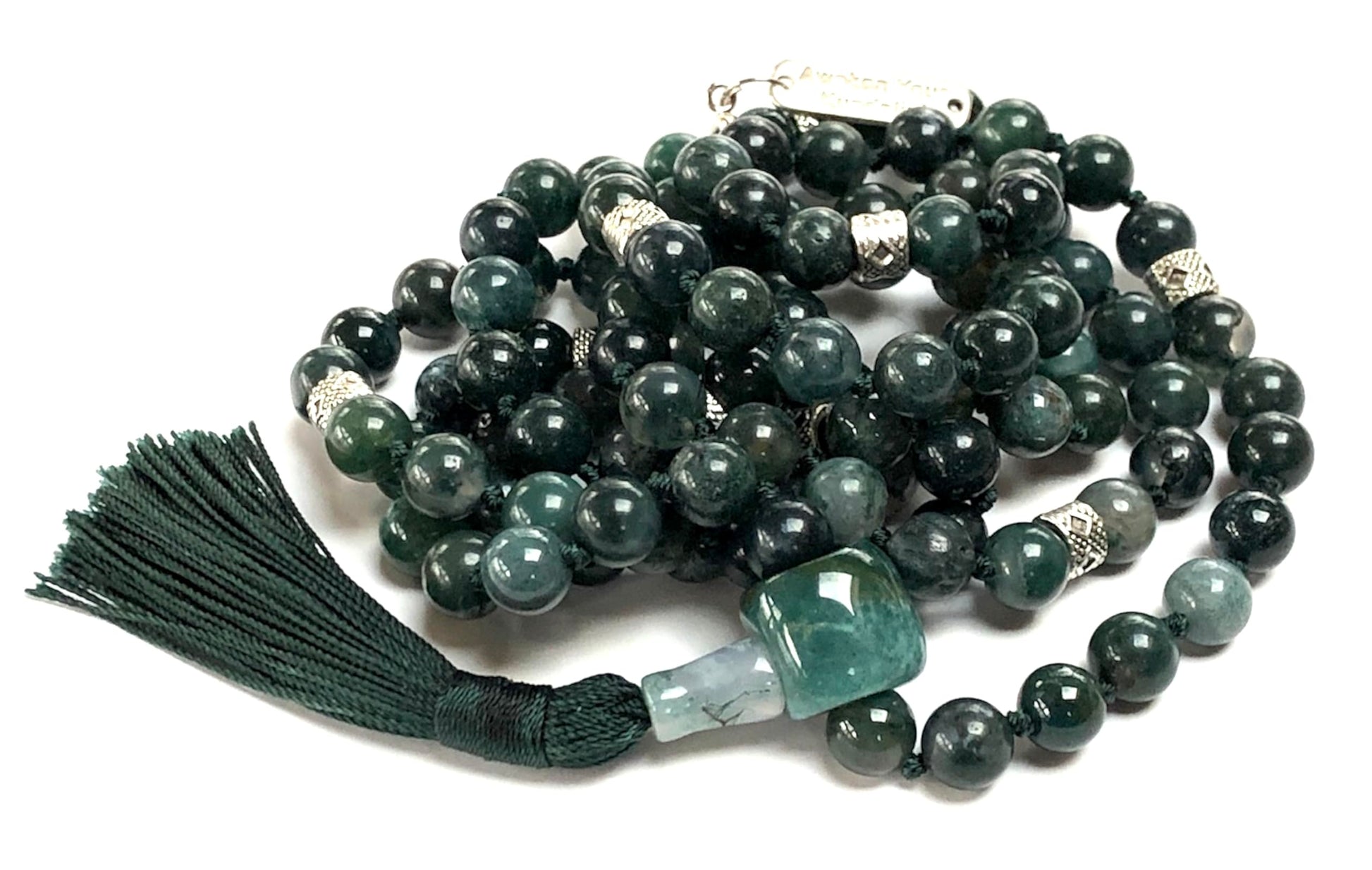 Moss Agate Mala Necklace | 8mm Hand knotted 108 Beads | Grounding & Renewal | ANAHATA Collection