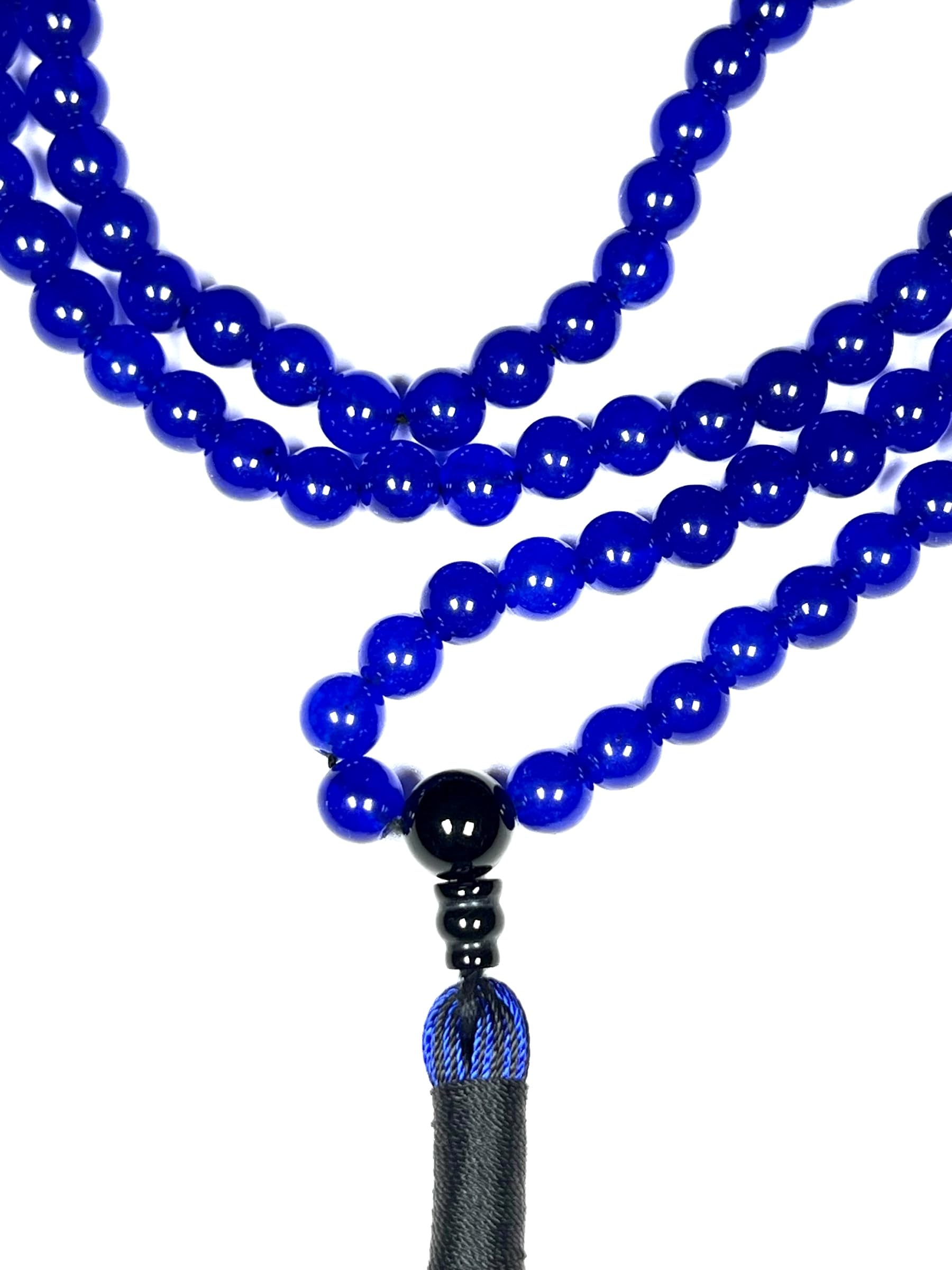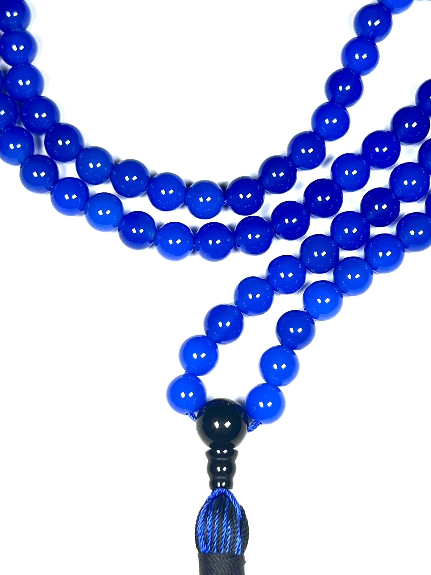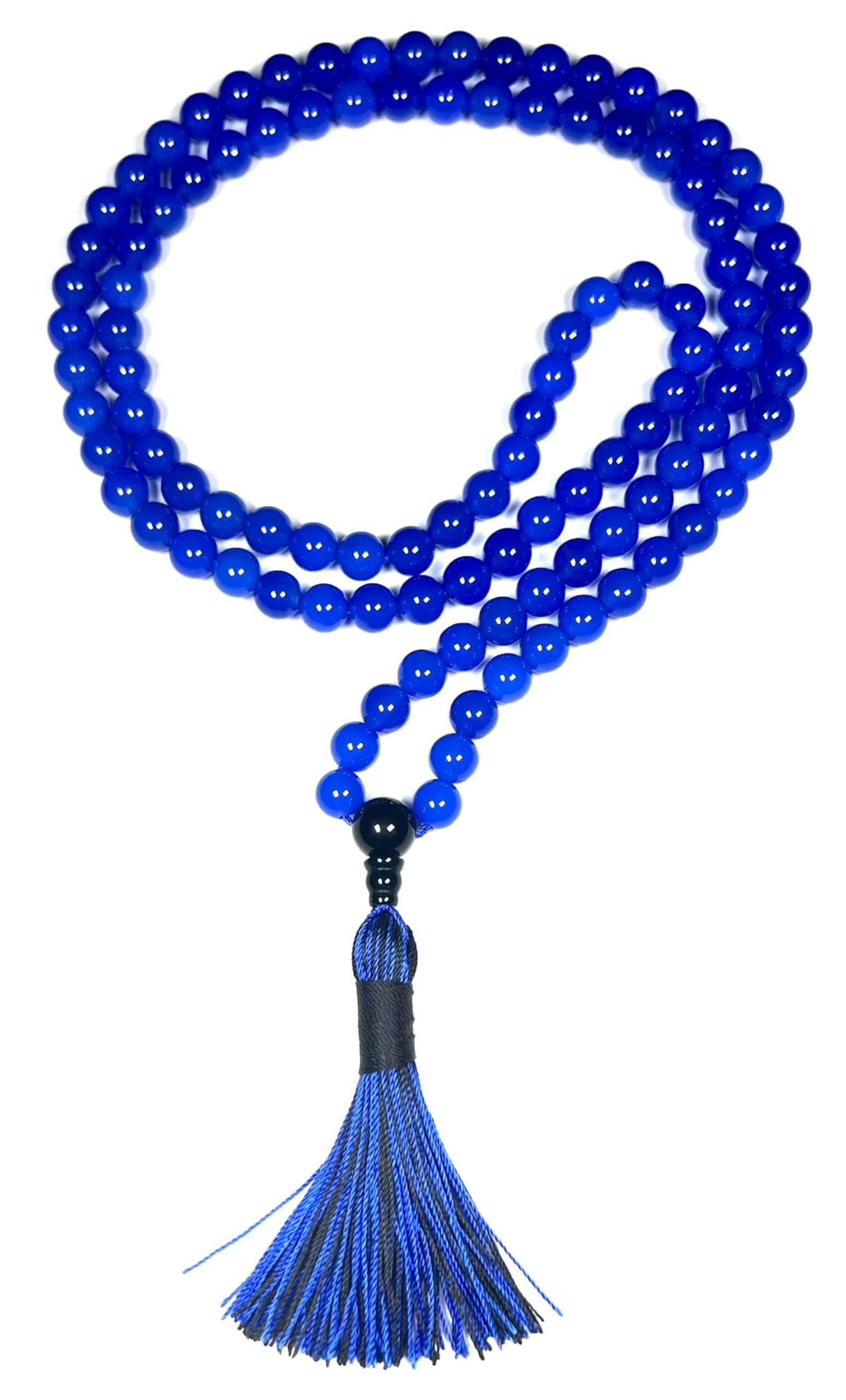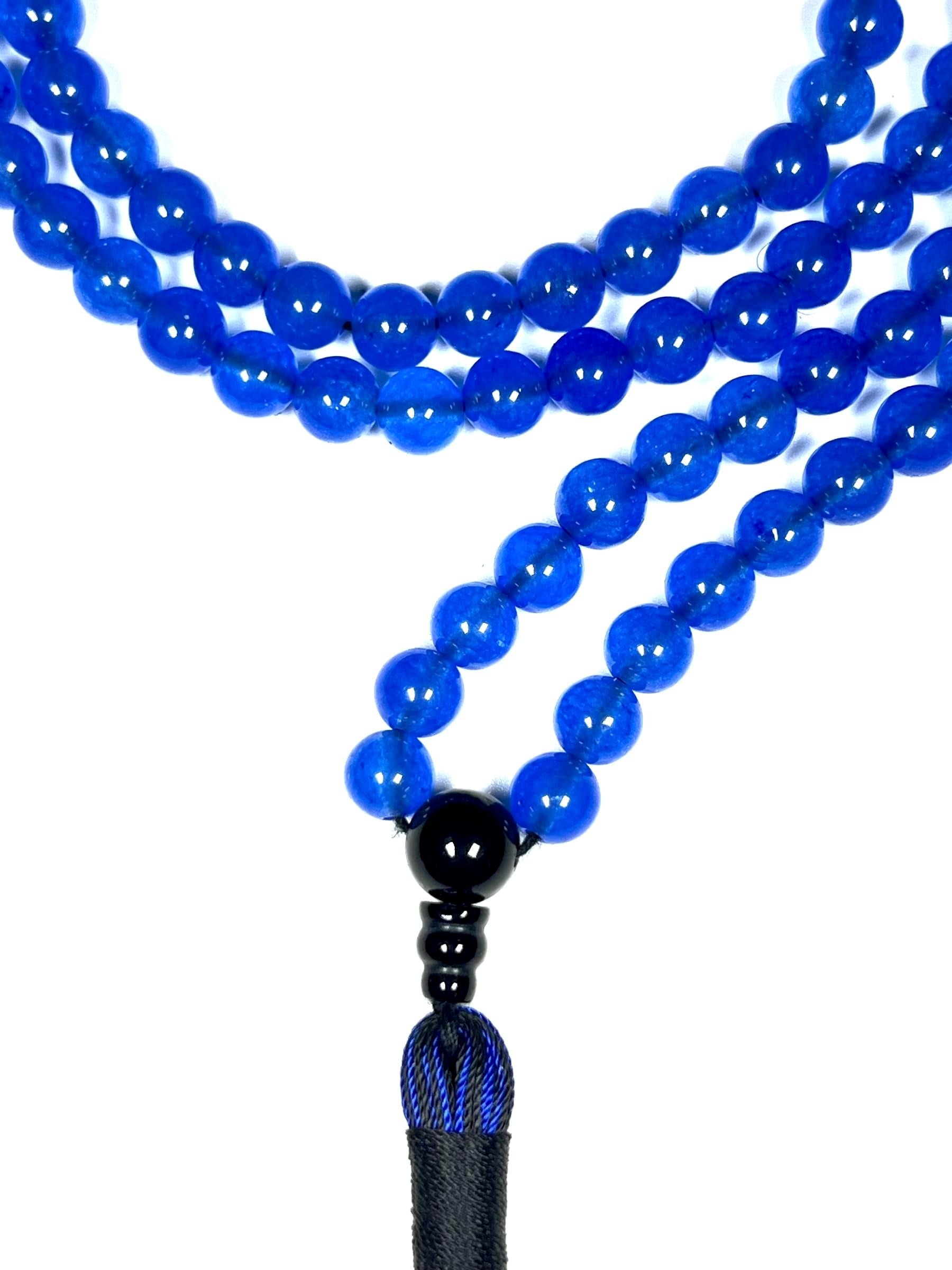 Blue Agate & Black Onyx Mala Necklace | 108 Beads 8mm | AYK