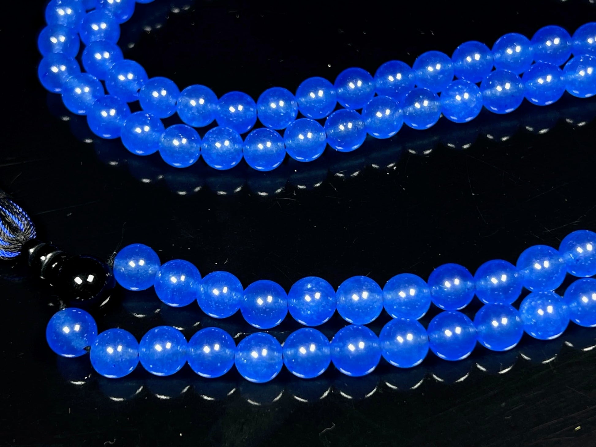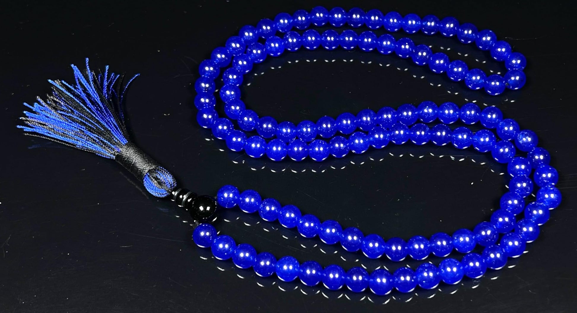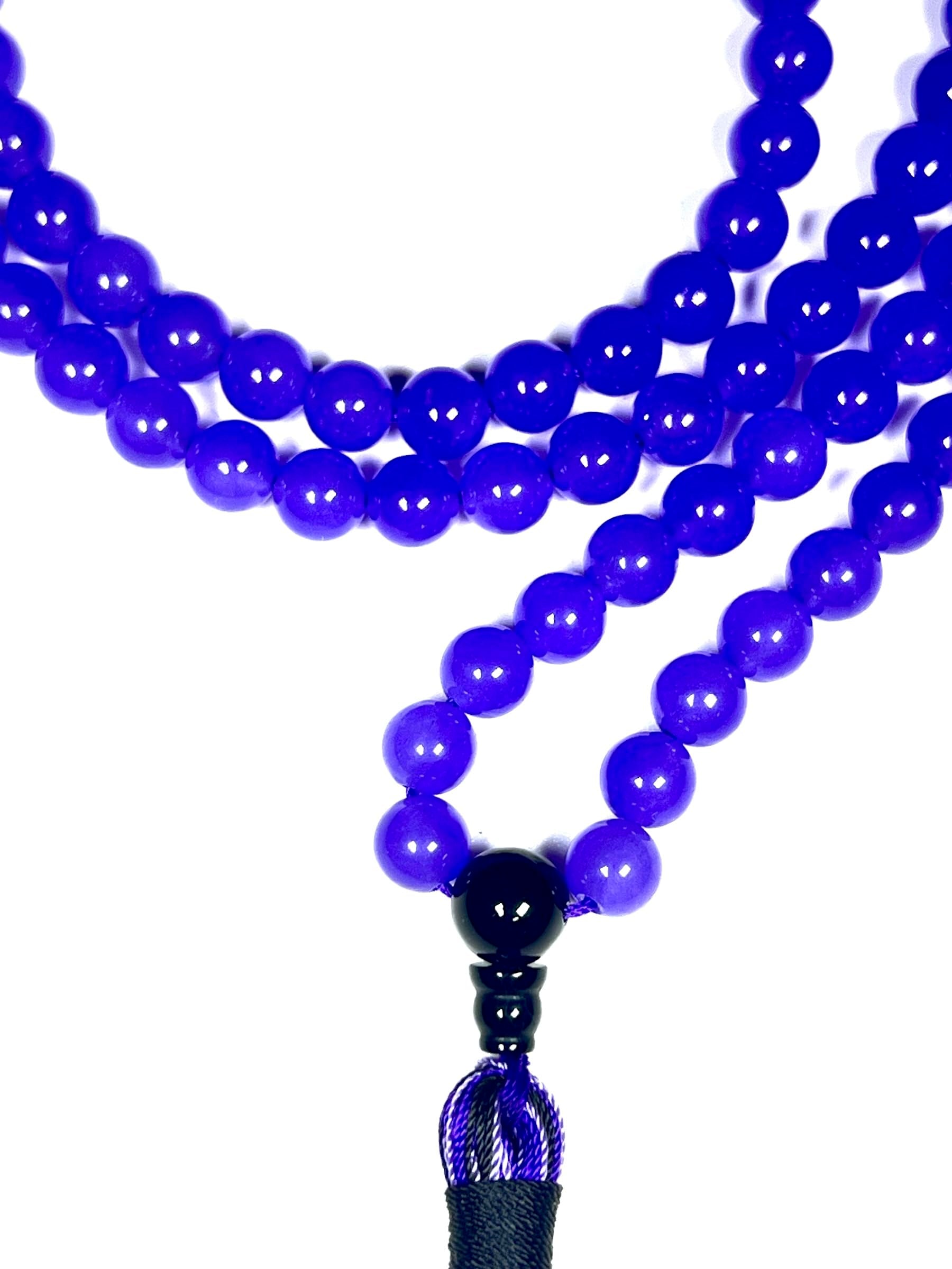 Blue Agate & Black Onyx Mala Necklace | 108 Beads 8mm | AYK