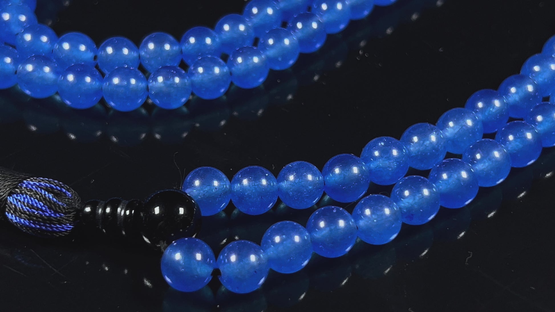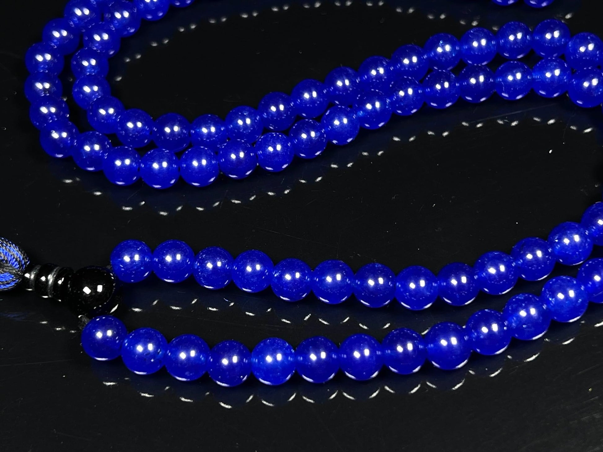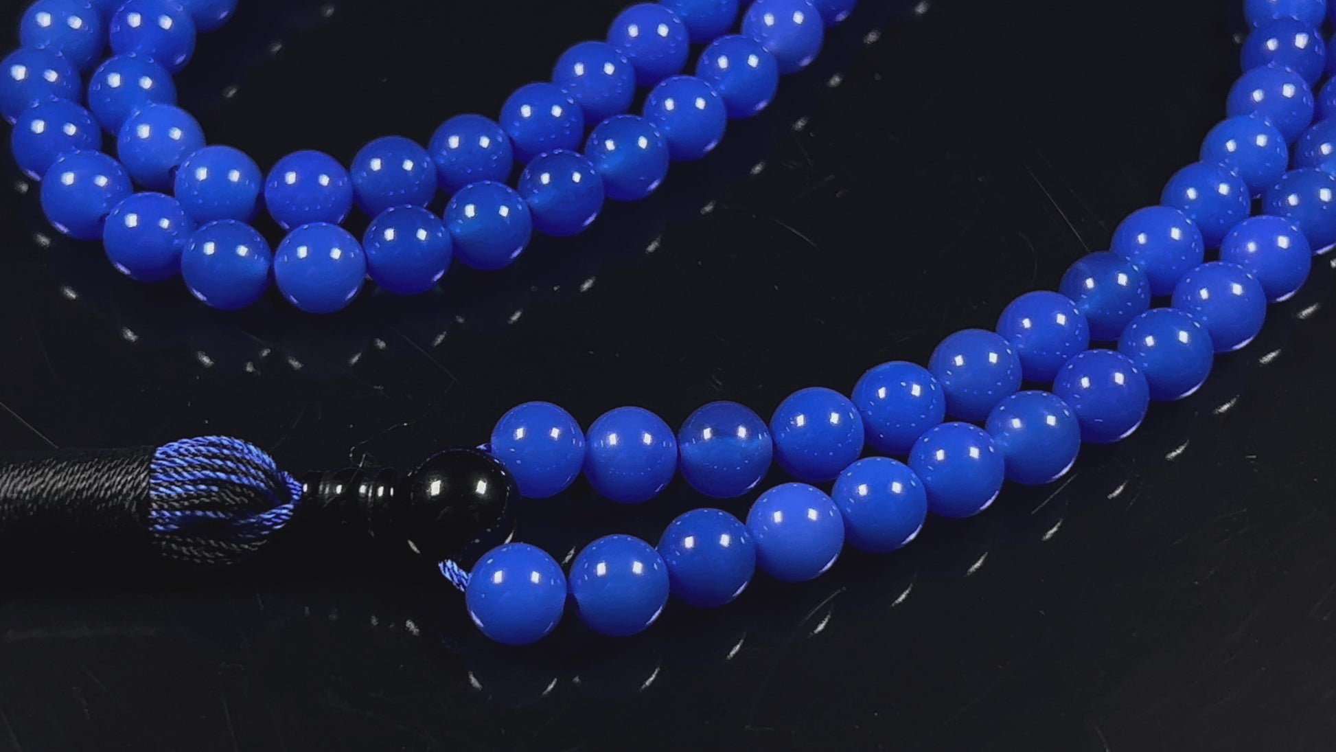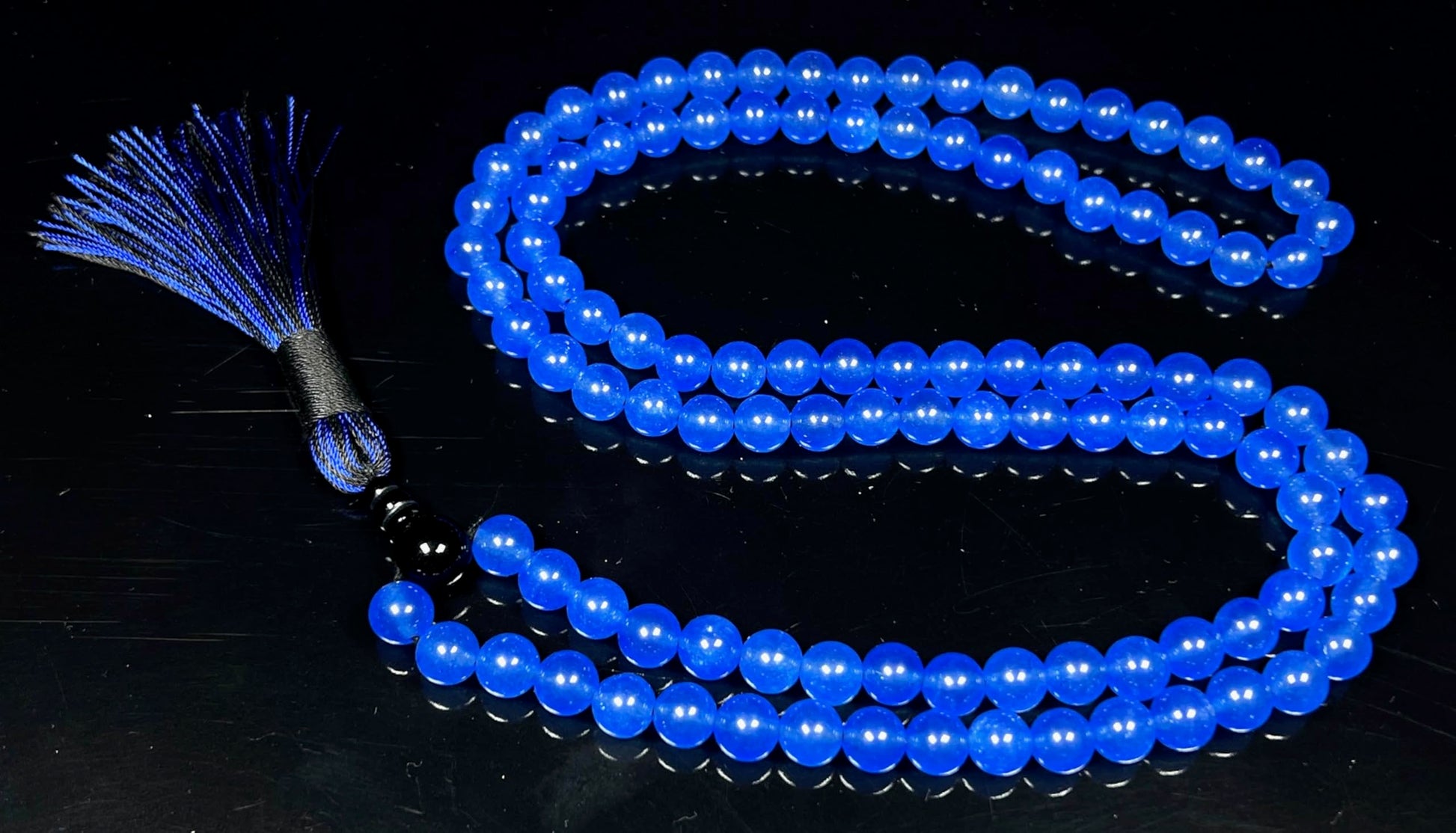 Blue Agate & Black Onyx Mala Necklace | 108 Beads 8mm | AYK