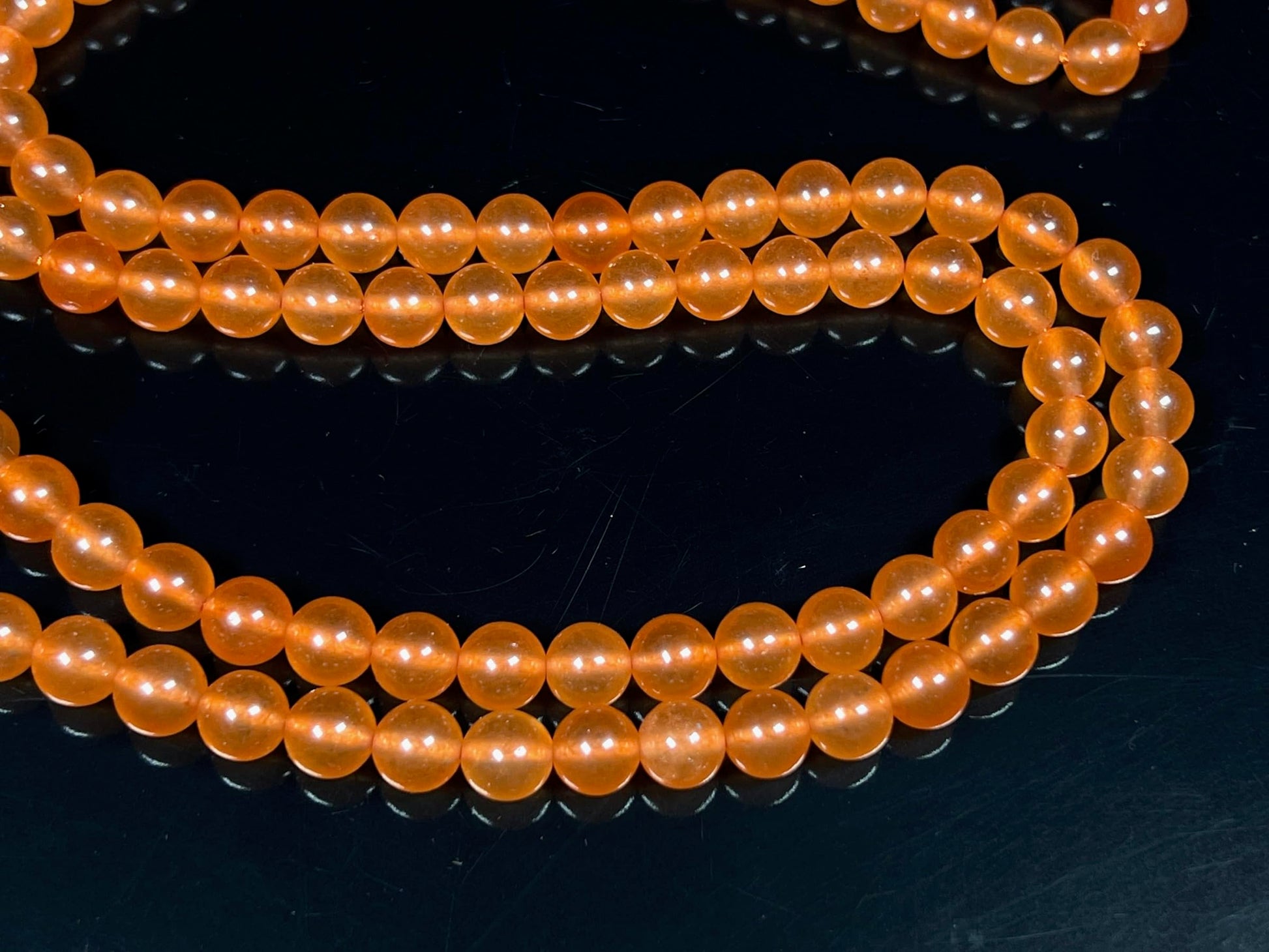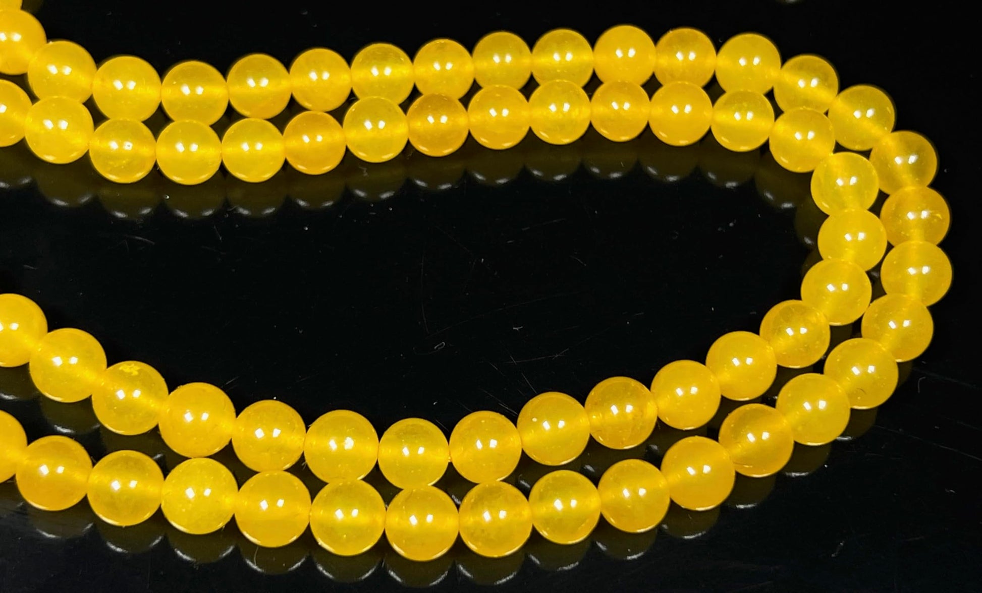 Avoid wearing your bead necklace while swimming, bathing, or during intense workouts. Exposure to water, perfume, lotion, or sweat can weaken the cord and dull the beads’ natural luster.