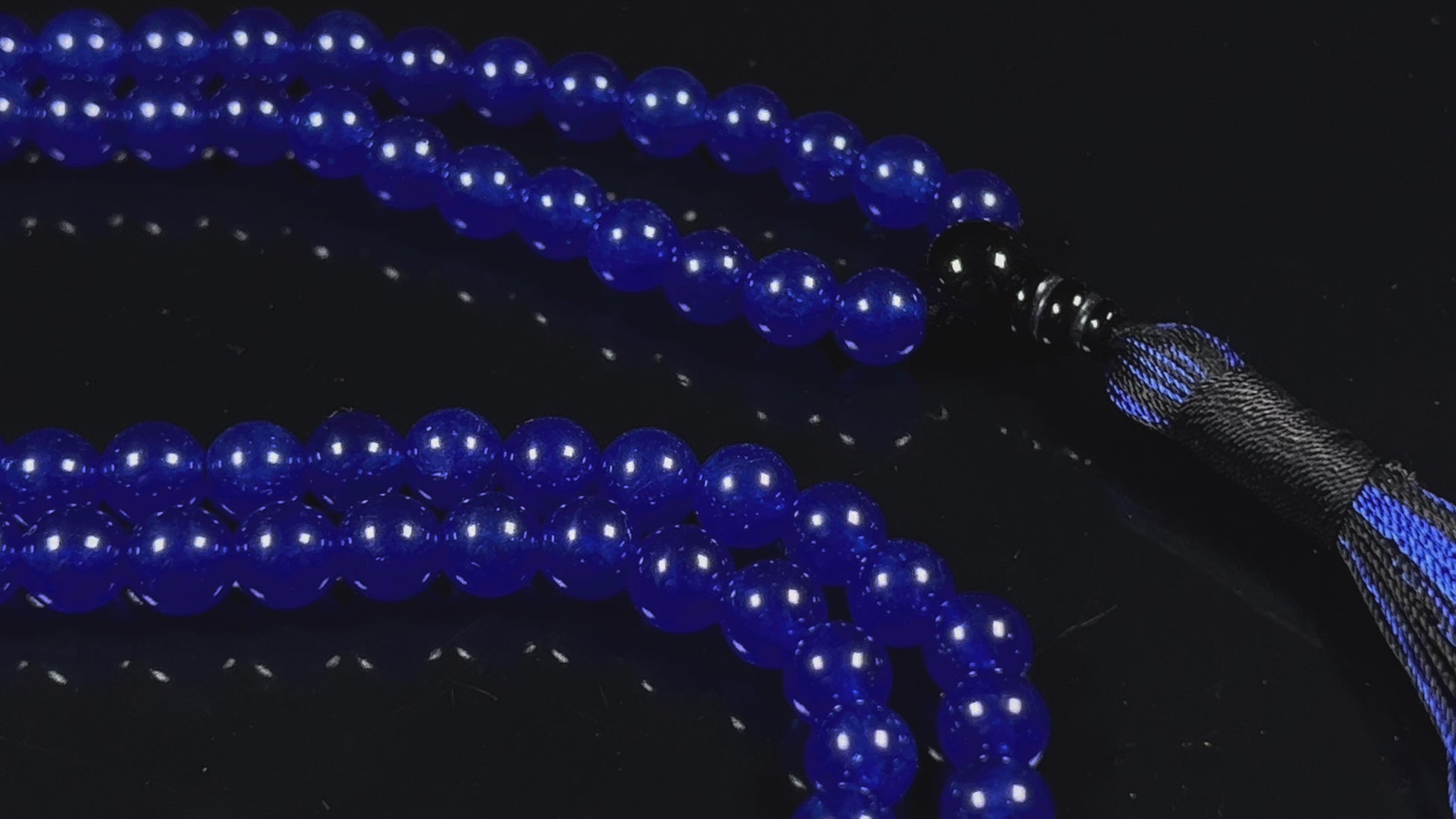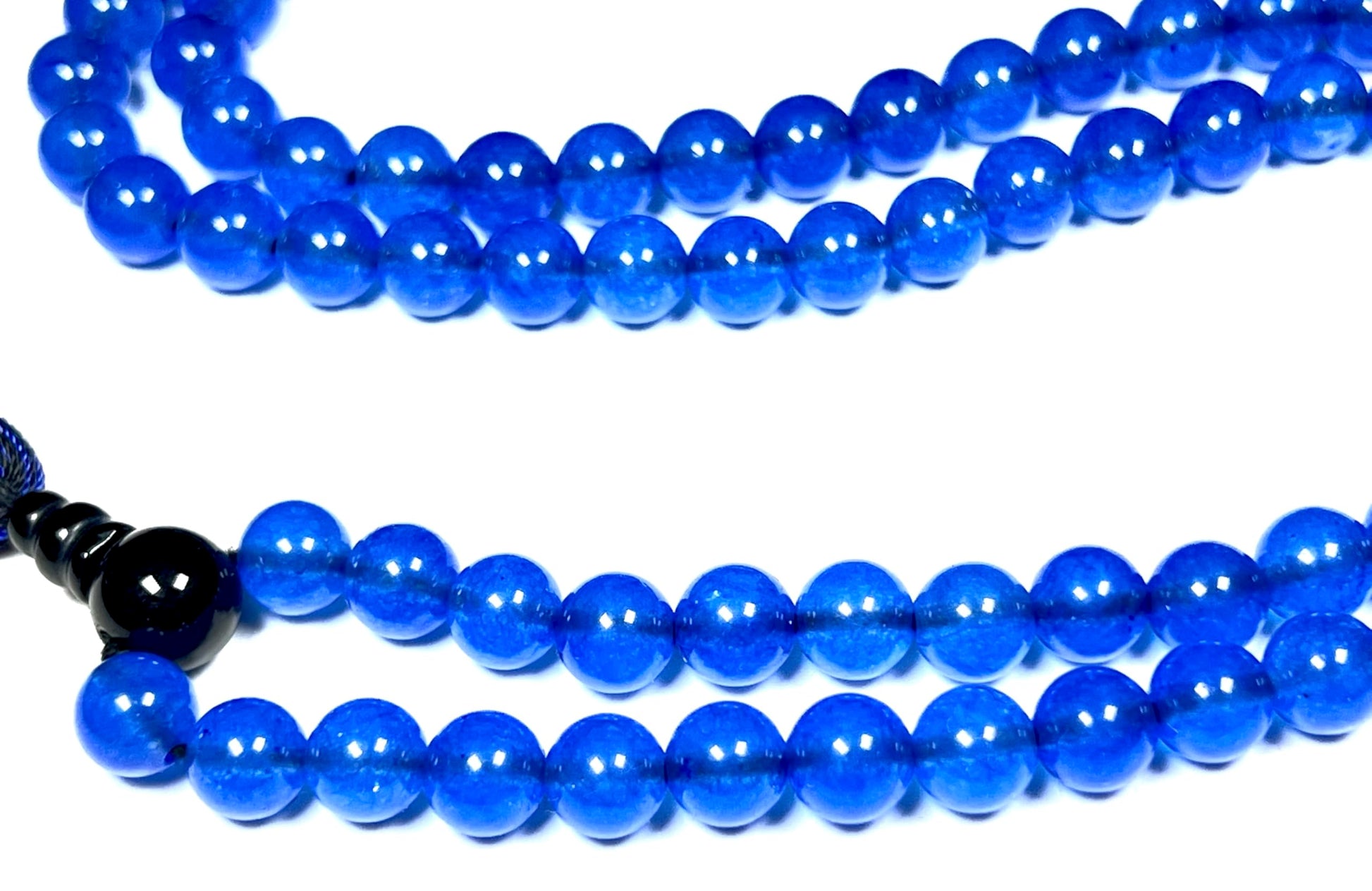Together, the 108 beads of blue agate and black onyx form the Blue Agate & Black Onyx Mala Necklace — a talisman of calm truth and strong protection, helping you flow with serenity while staying deeply grounded.