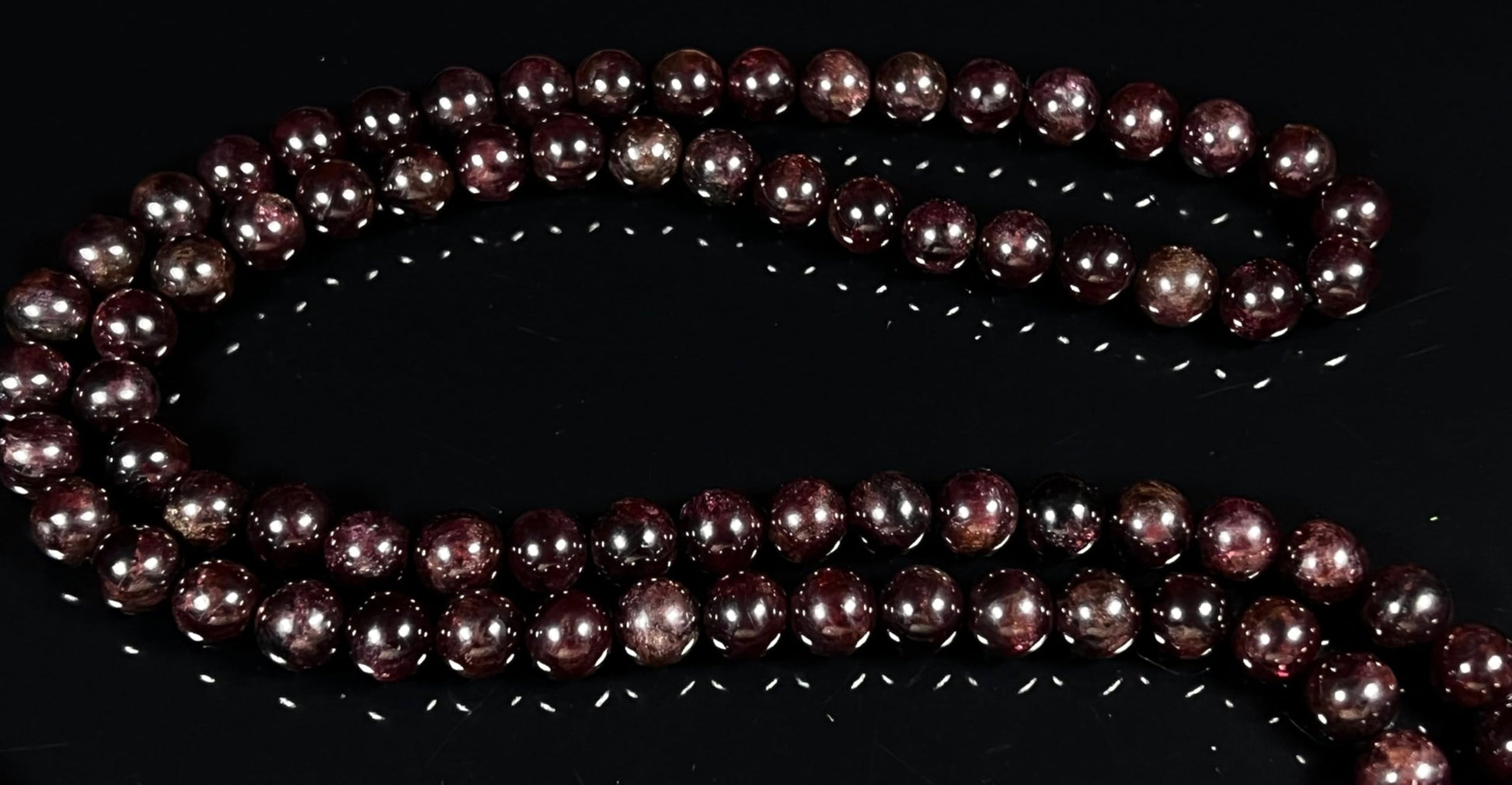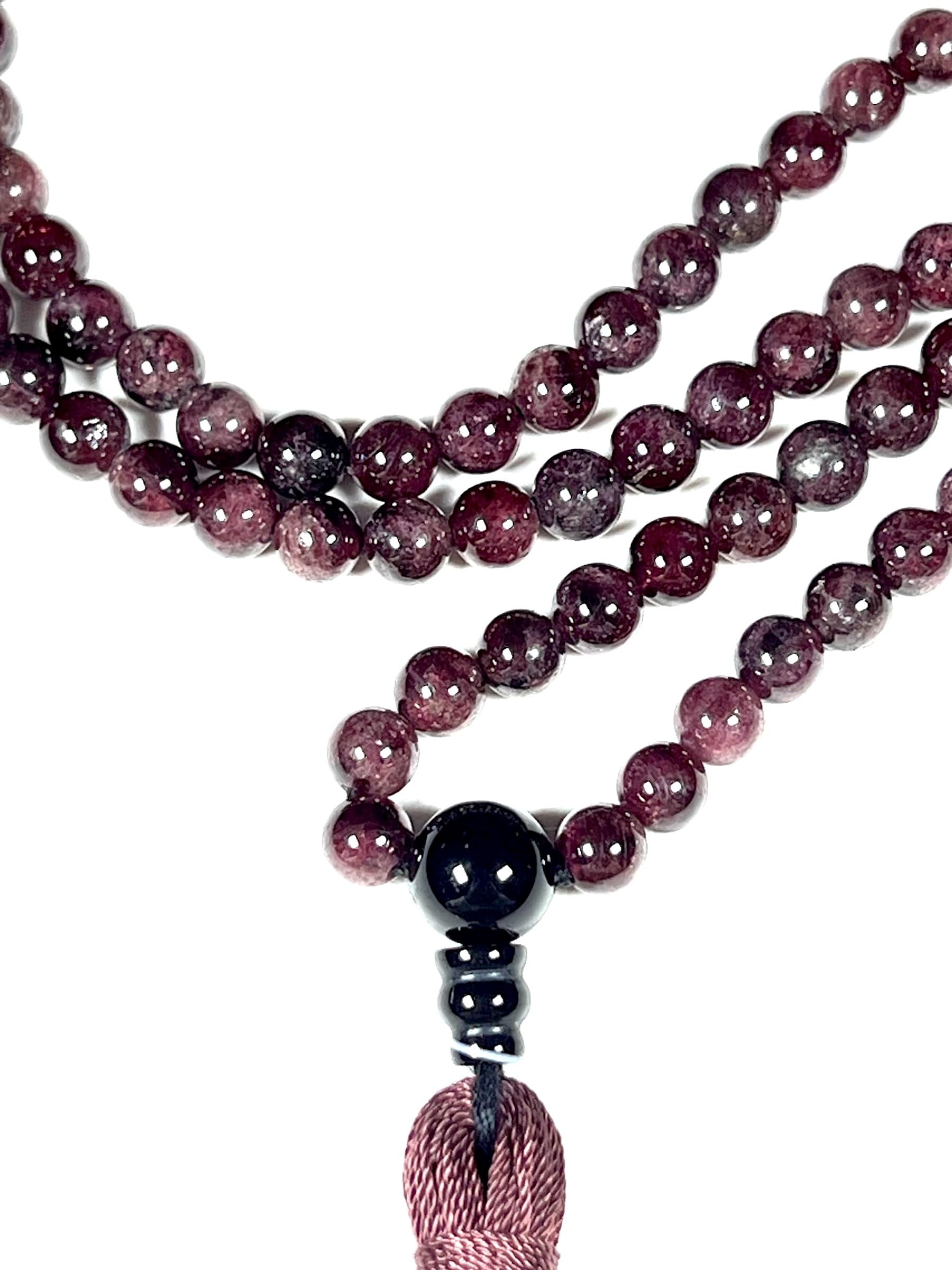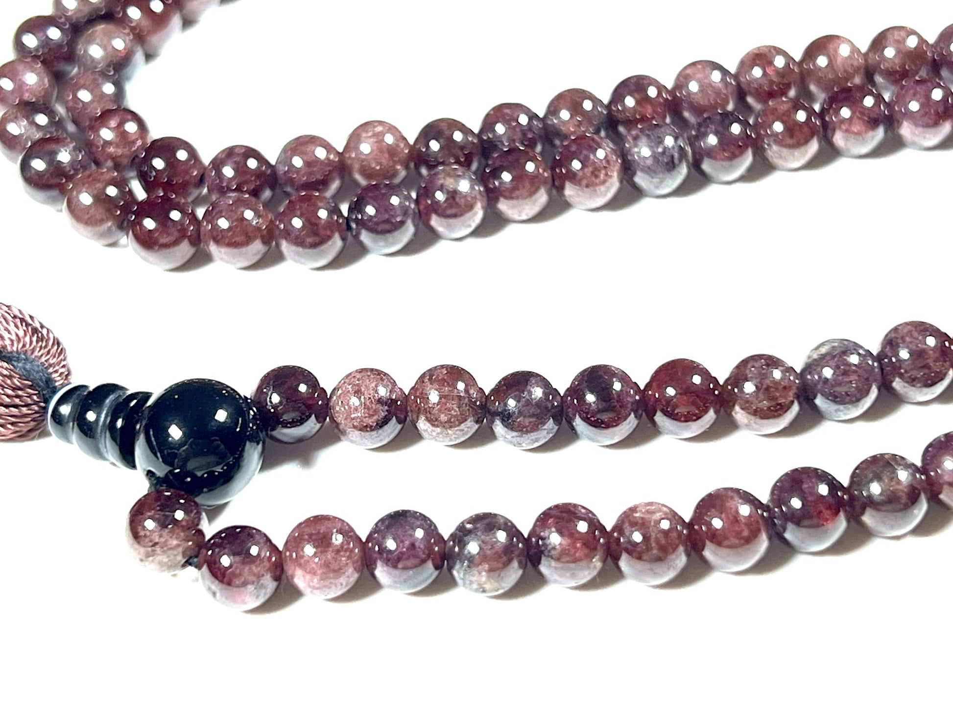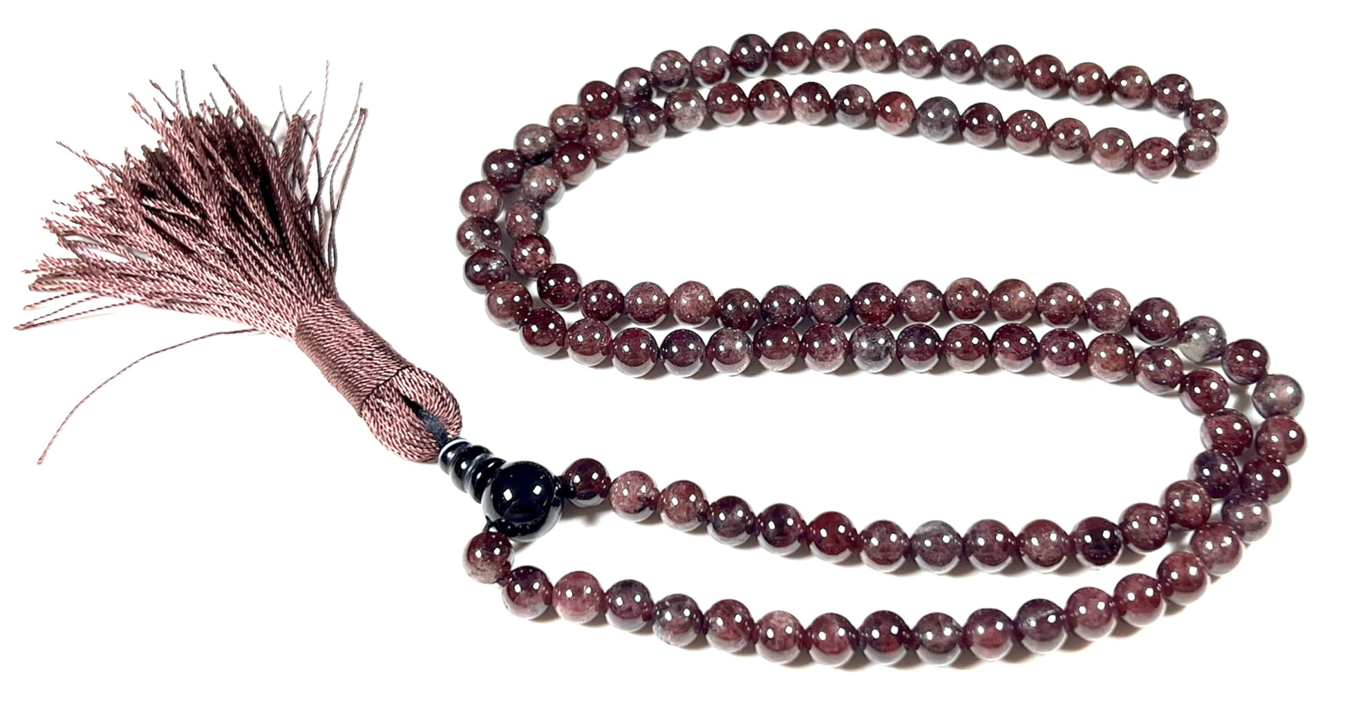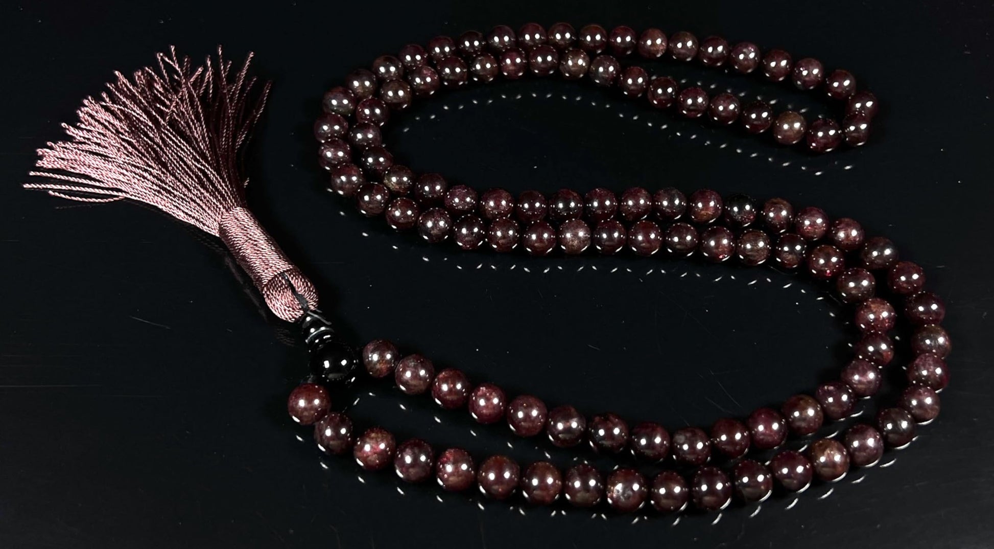108 hand-knotted natural garnet beads in 6mm, 8mm, or 10mm sizes