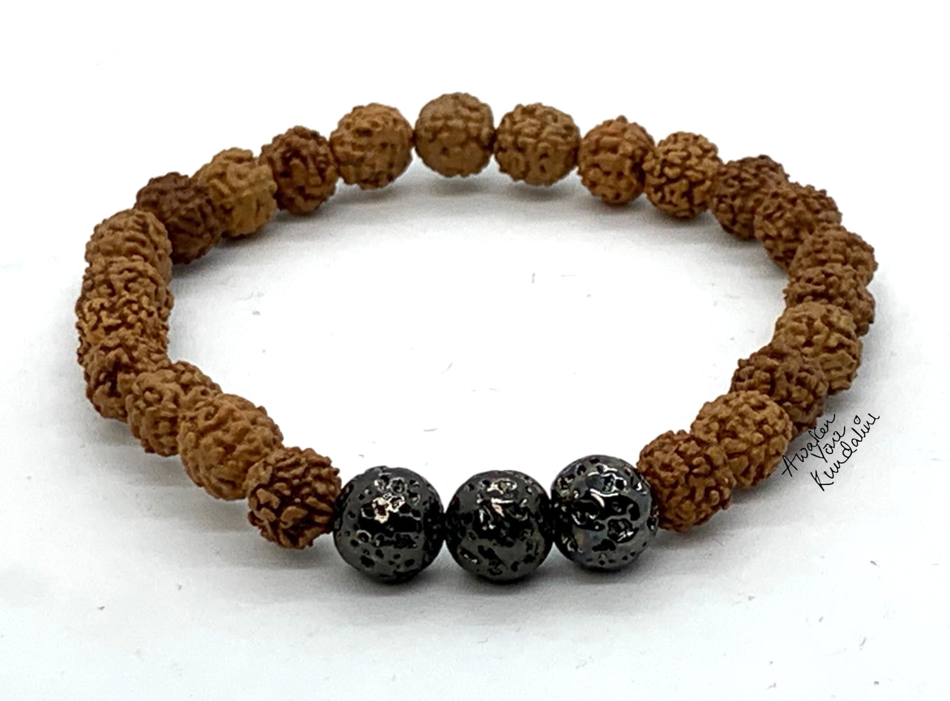 This bracelet is more than jewelry. It is a spiritual tool worn by sages and seekers for centuries to still the mind, deepen meditation, and awaken divine wisdom. The union of Rudraksha and lava harmonizes spiritual discipline with elemental grounding, empowering you to release fear, focus your energy, and walk your path with courage.