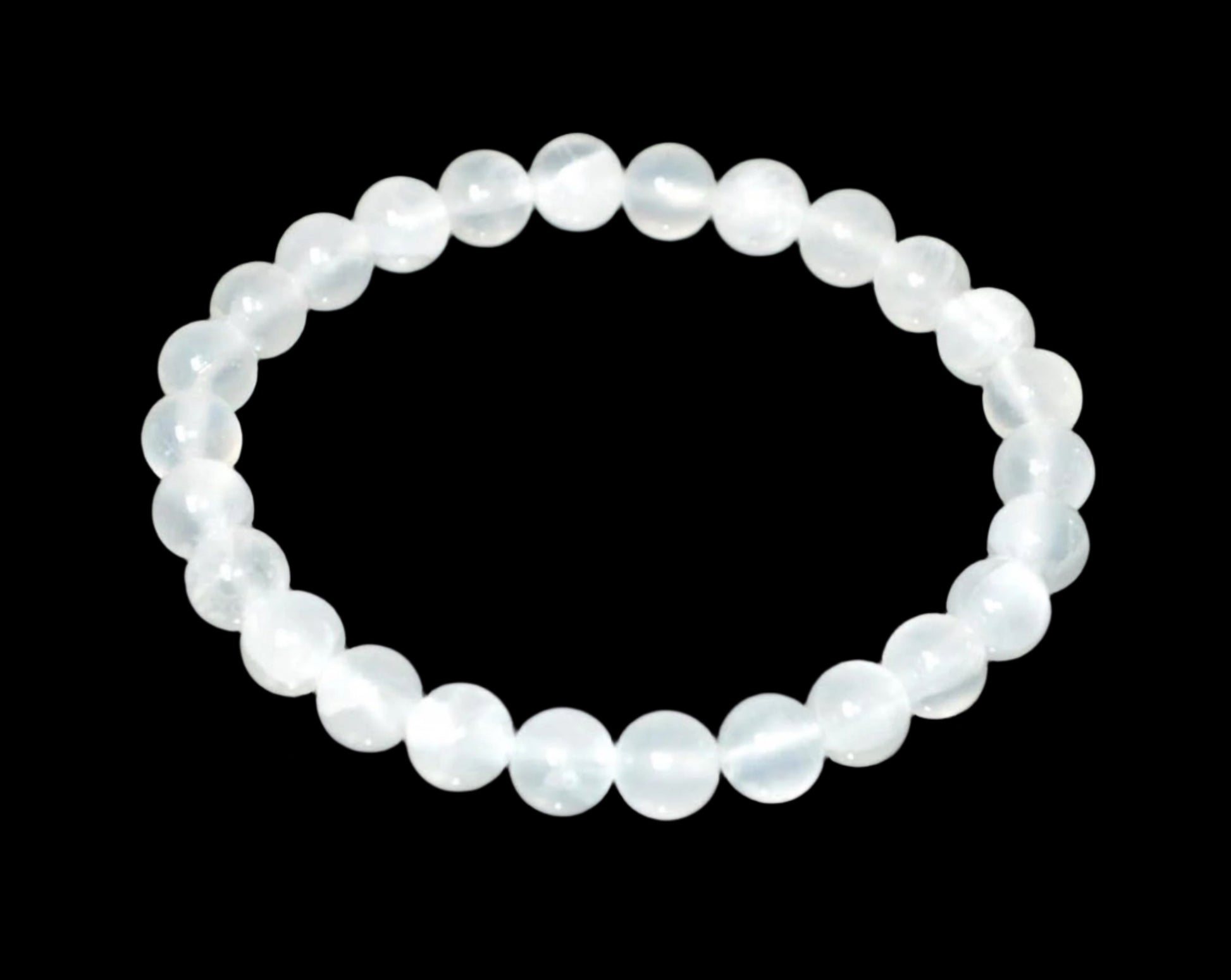 Together, the 8mm beads form the Selenite Stretch Bracelet — a talisman of purity and peace, guiding you to embrace clarity, serenity, and divine wisdom.