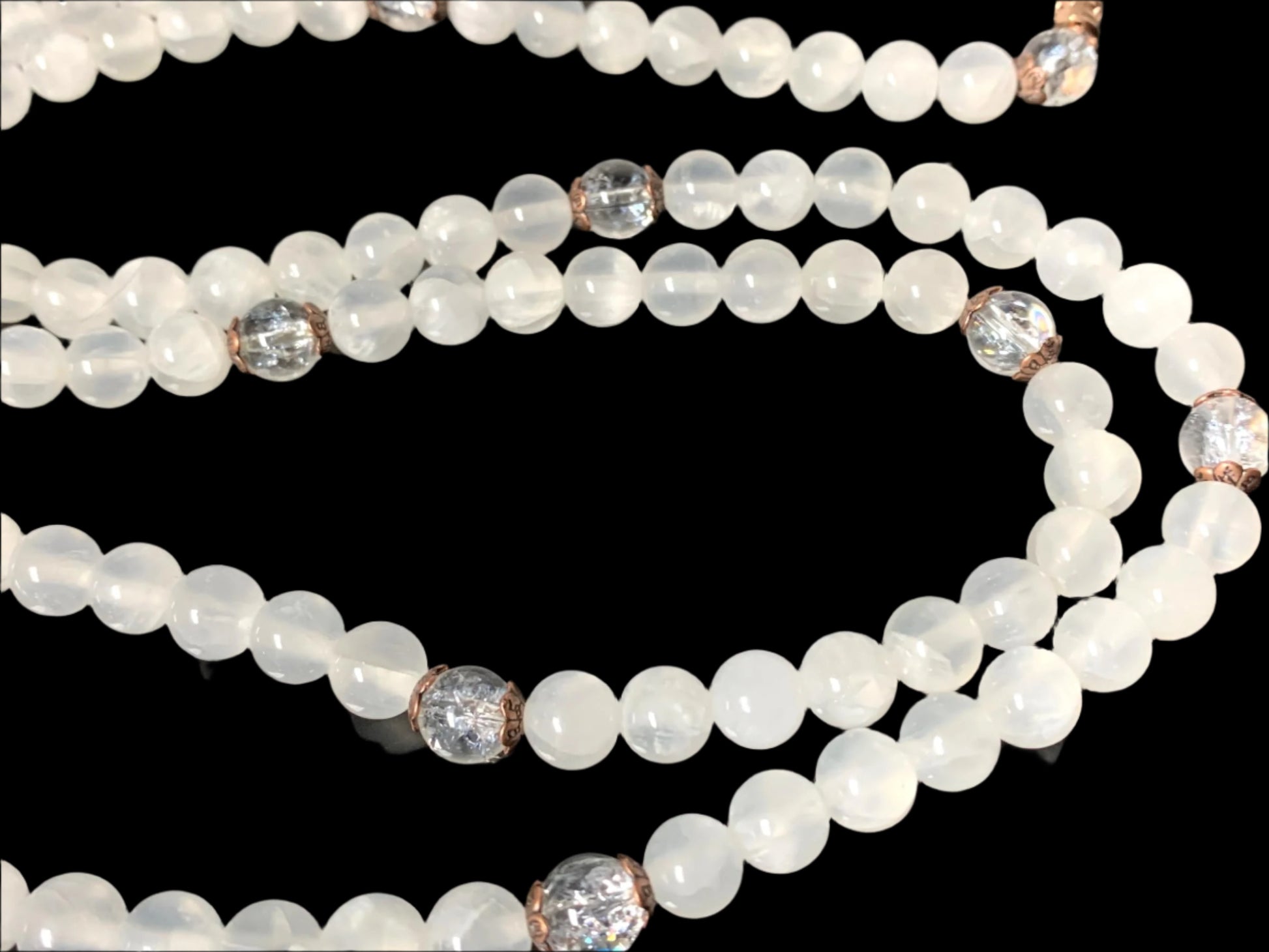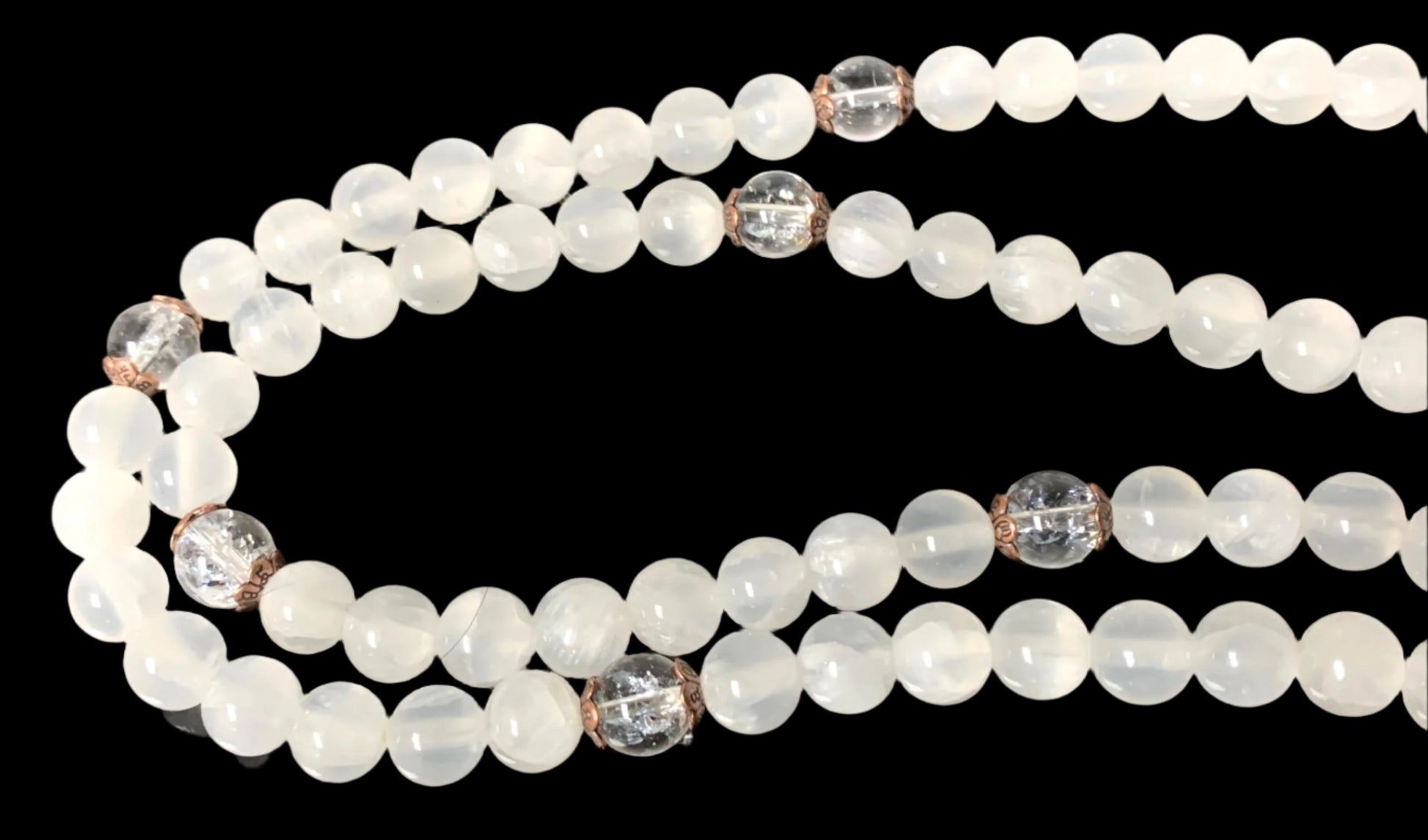 108 hand-strung natural 8mm selenite and crystal quartz beads