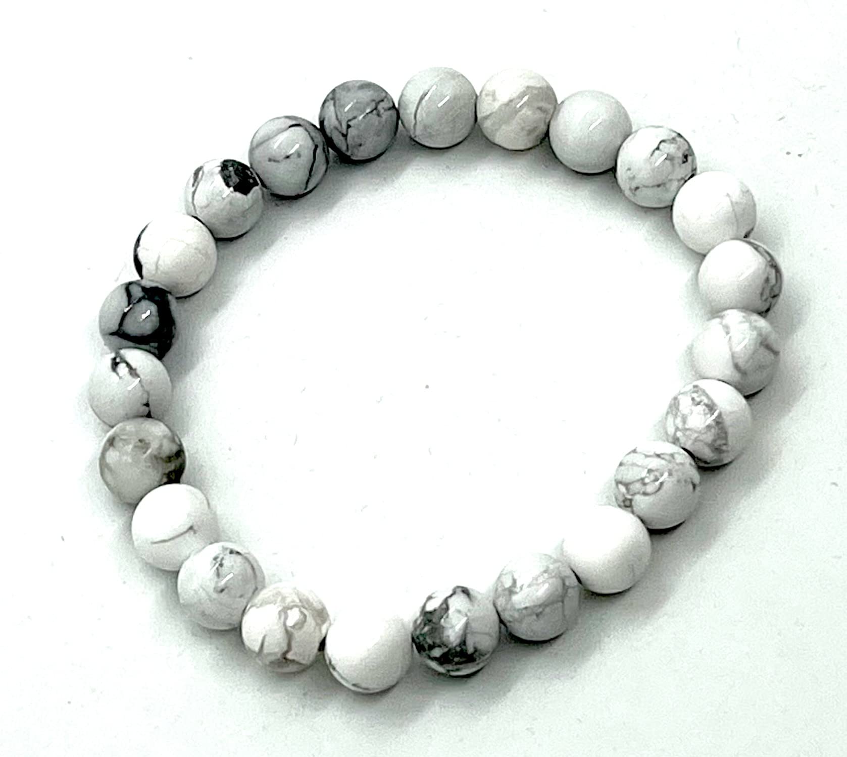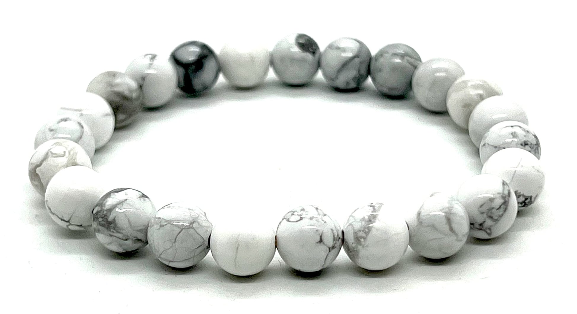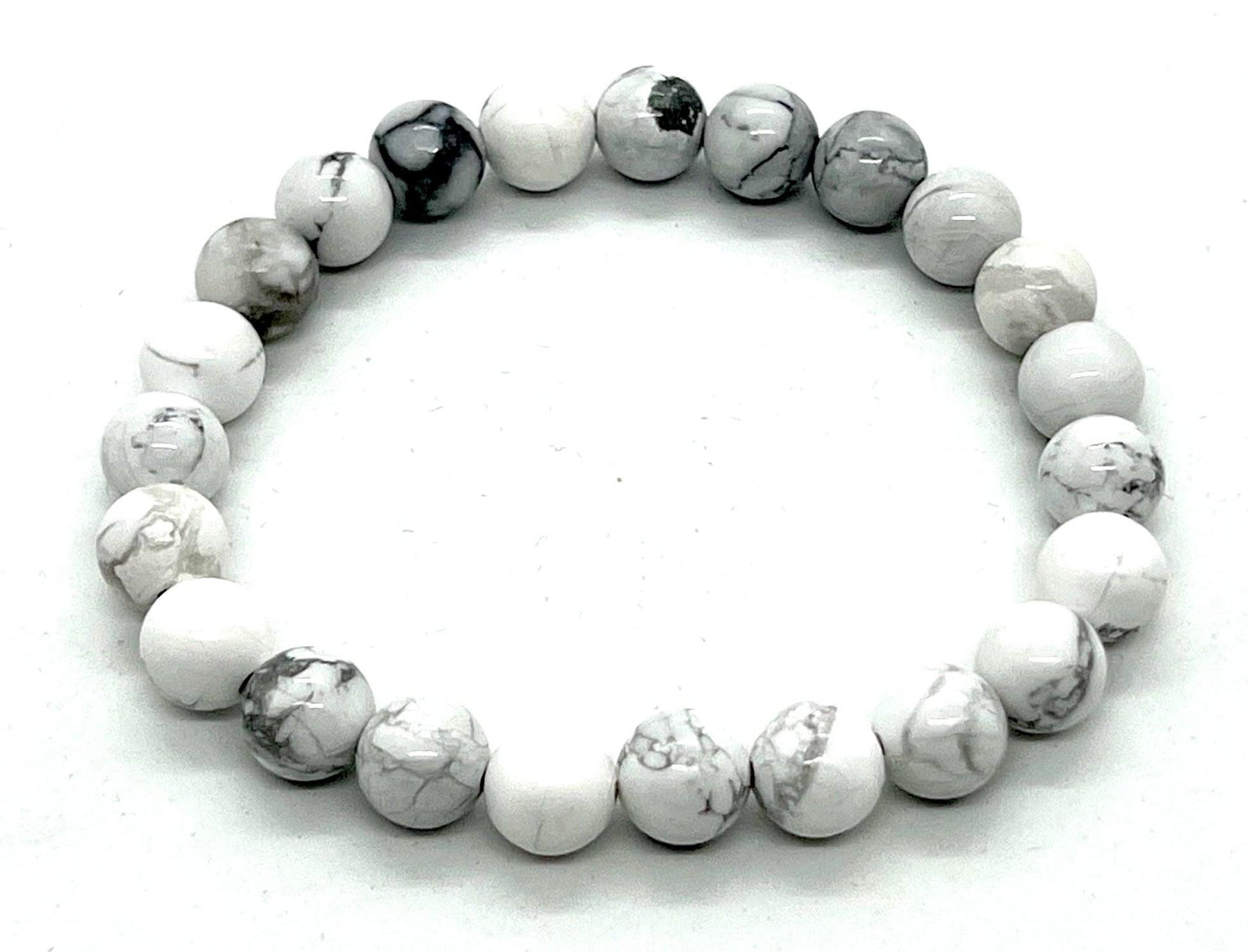Together, the 8mm beads form the White Howlite Stretch Bracelet — a talisman of peace and balance, reminding you to move through life with serenity and grace.