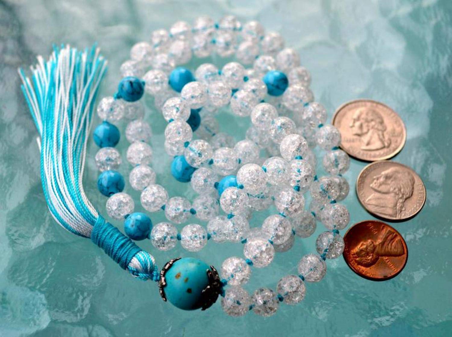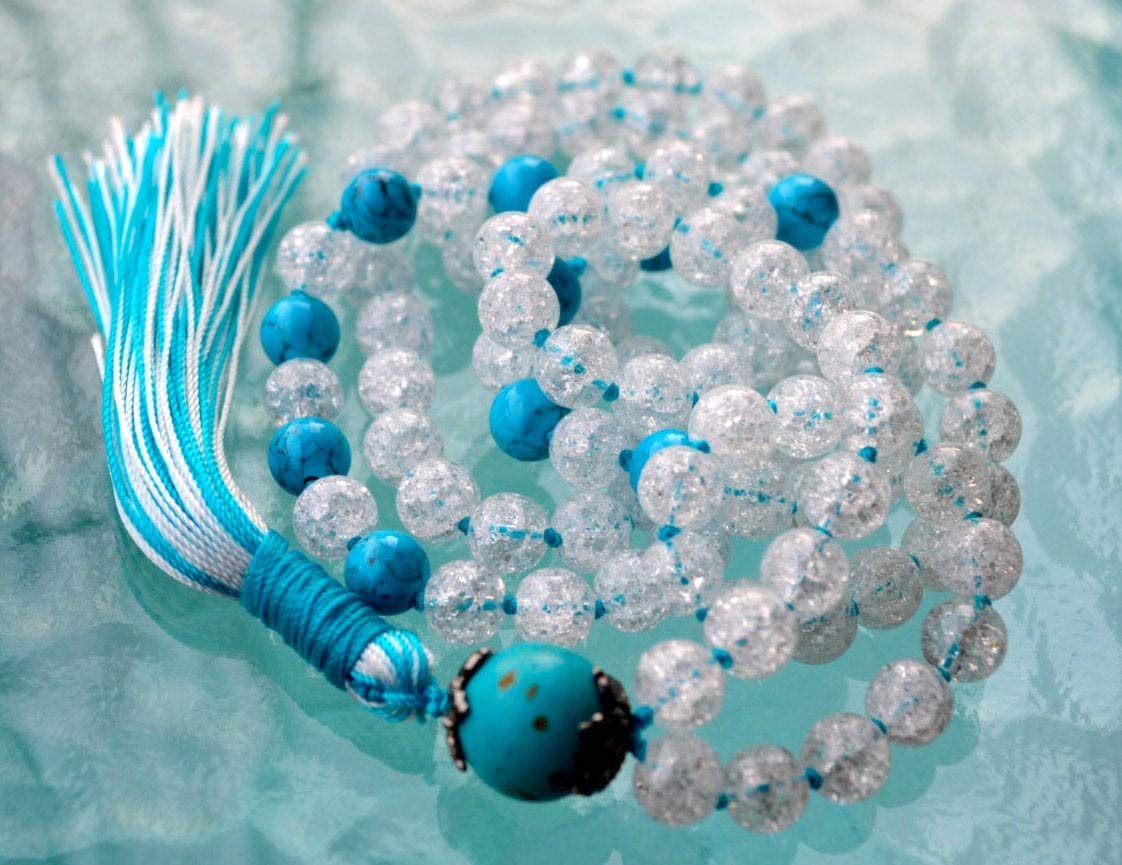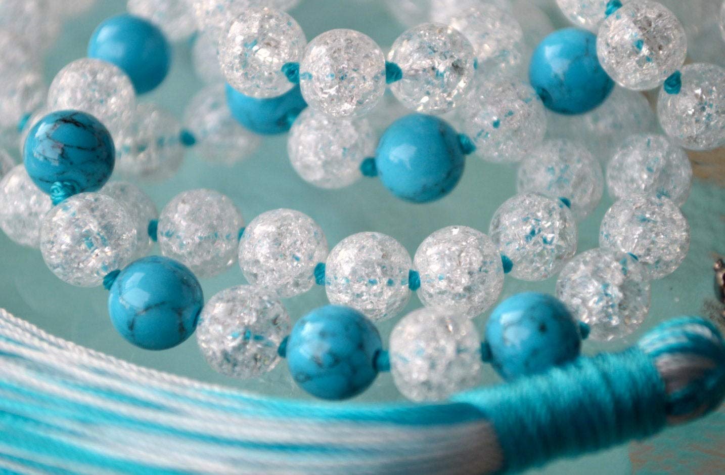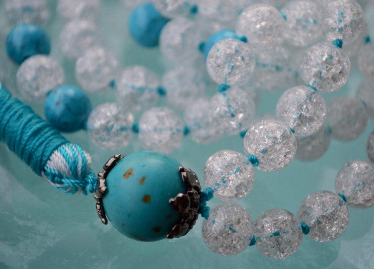 Crackled Quartz & Turquoise Hand-Knotted Mala Necklace | PRABHA Collection