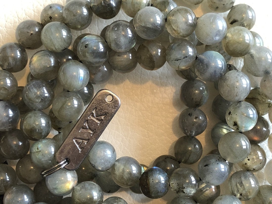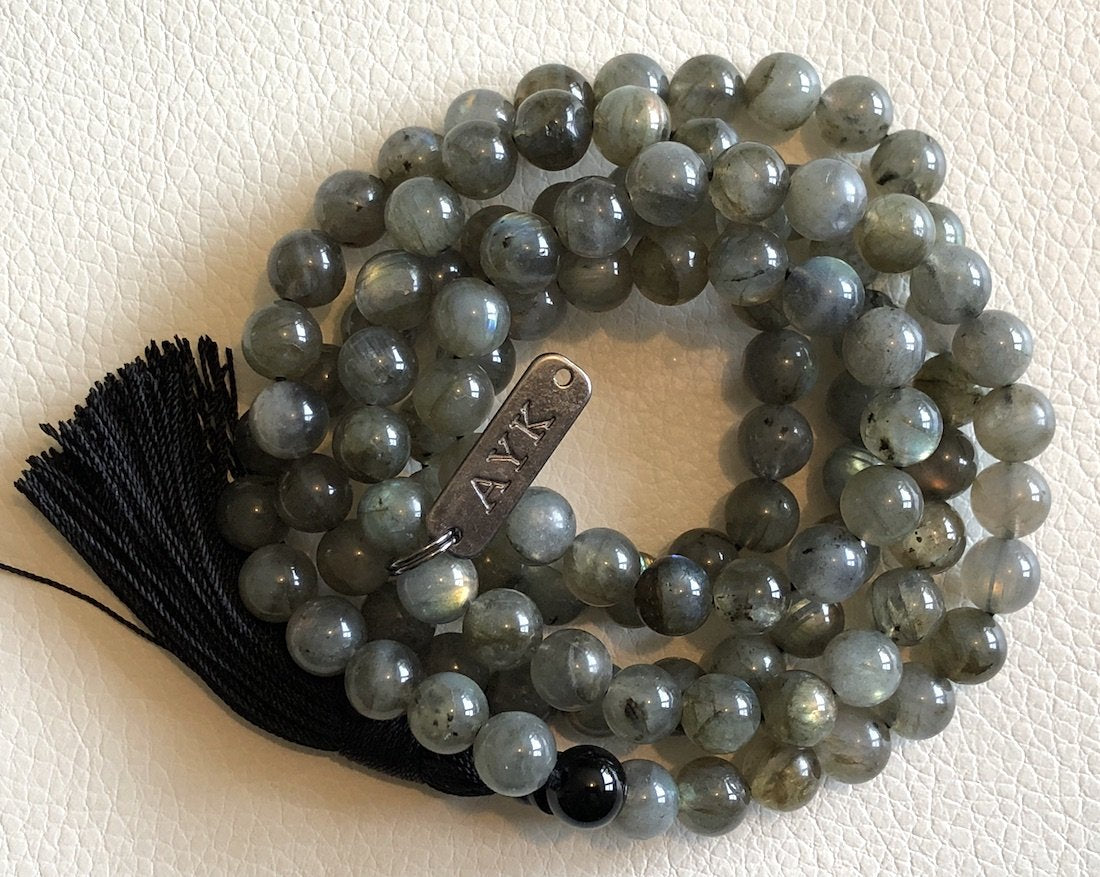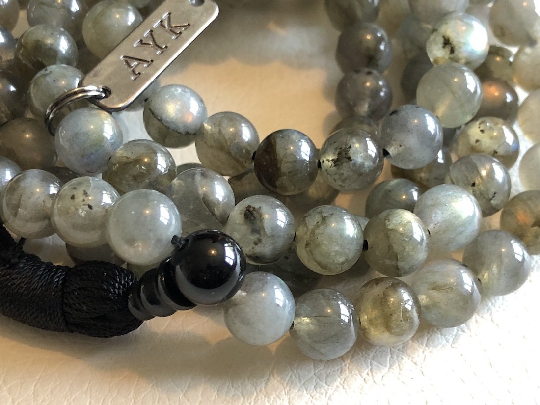 - #LabradoriteMala #BlackOnyxJewelry #ThroatChakra #LeoBirthstone #HandcraftedMala #MeditationBeads