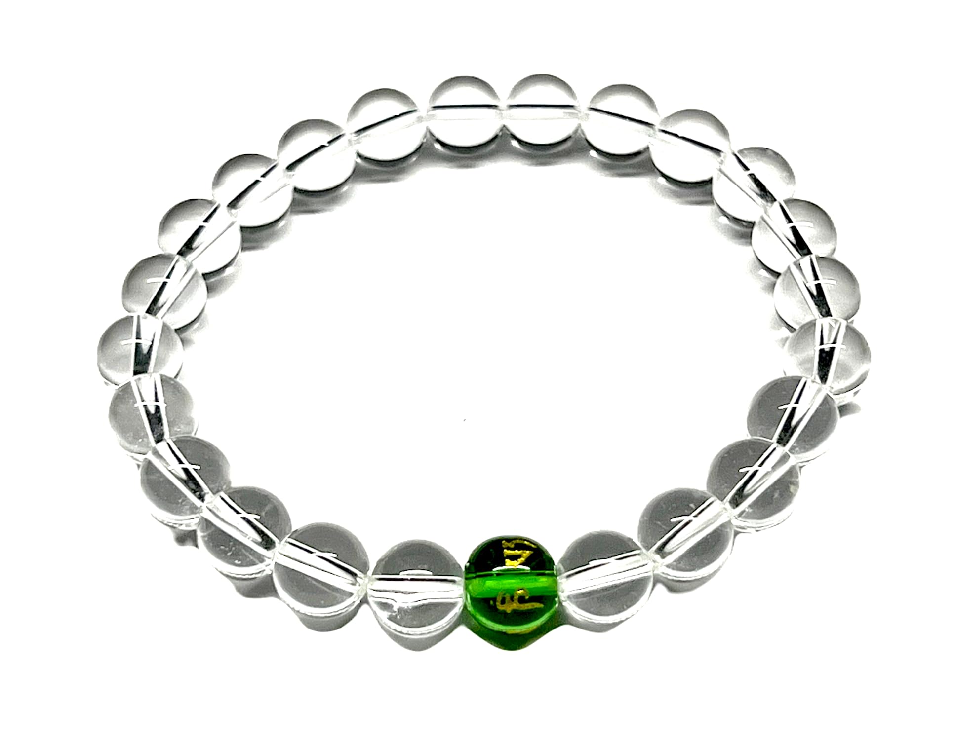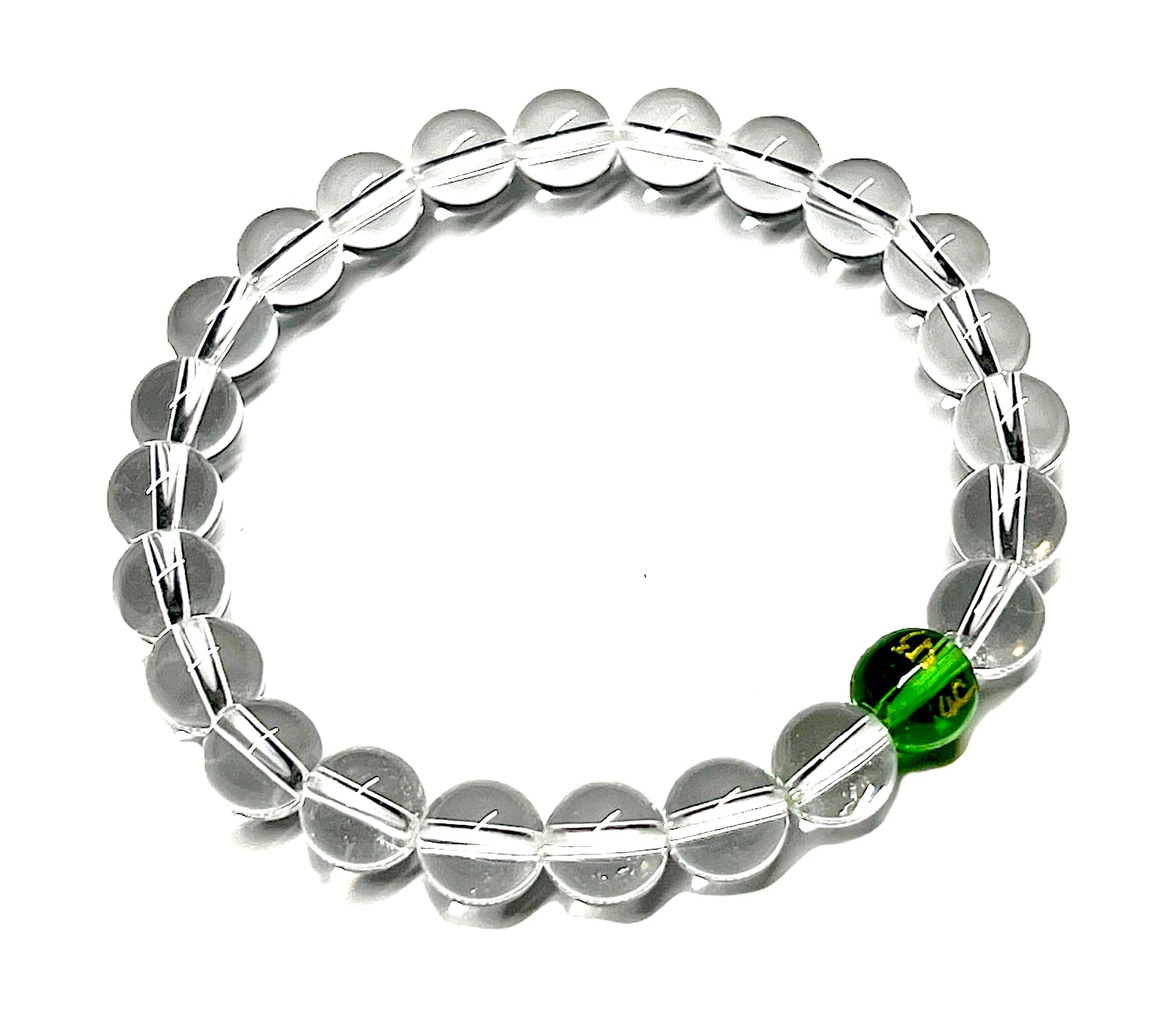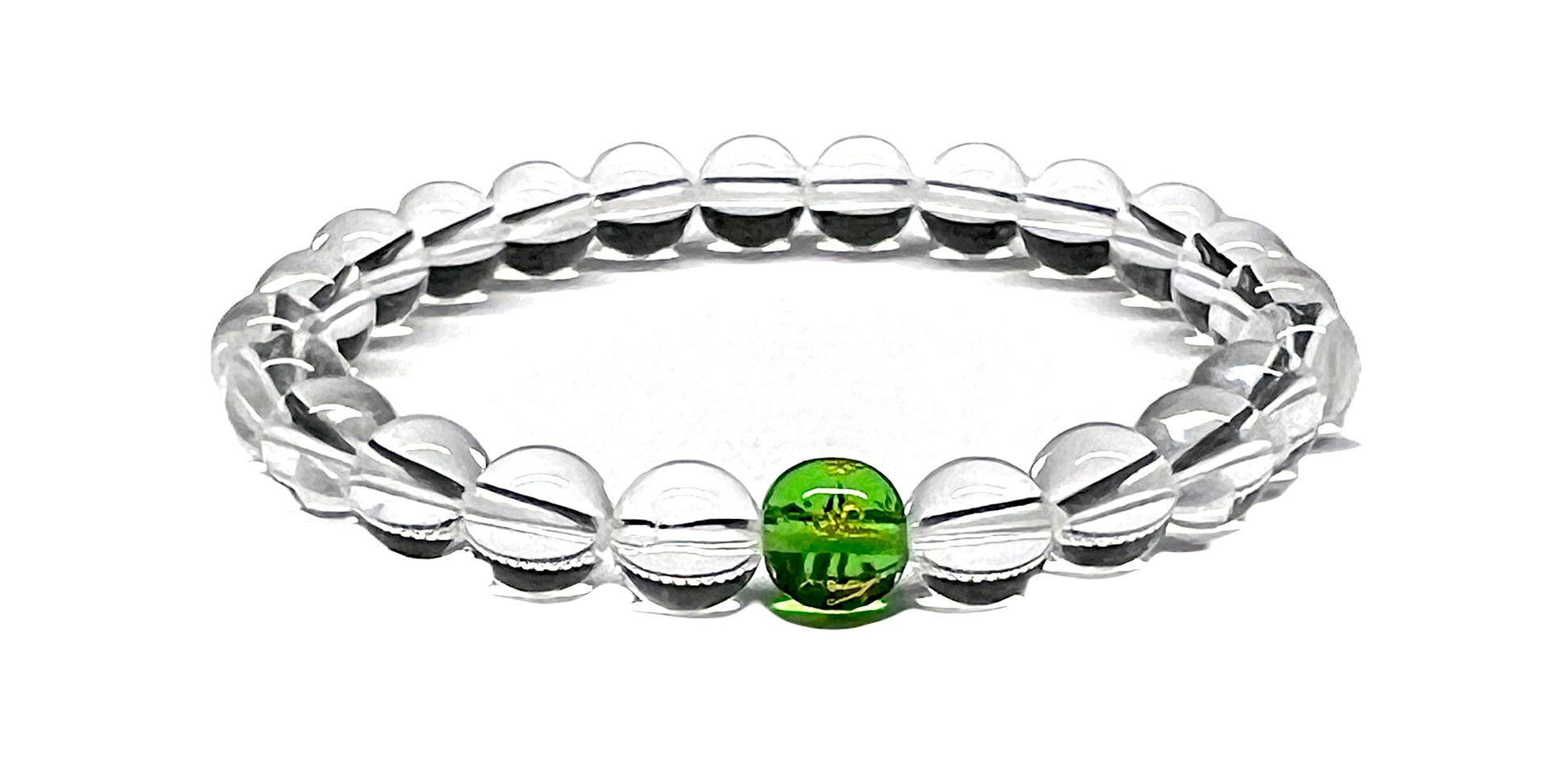 - This elegant Clear Crystal Quartz and Peridot Centerpiece Stretch Bracelet combines the brilliance of clear quartz and the vibrant green hue of peridot, offering a refined accessory suitable for any occasion. The 8mm clear quartz beads are known for their pure, timeless beauty, while the peridot centerpiece brings a pop of color and symbolism as the birthstone for August, associated with the signs of Leo and Virgo.